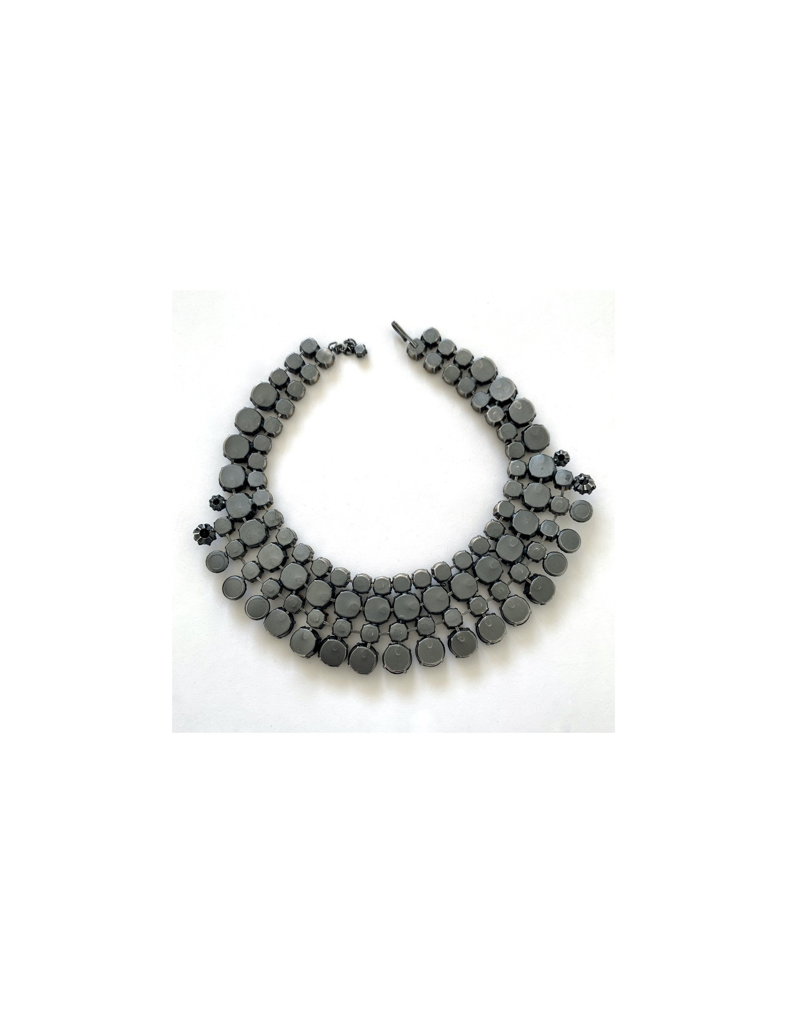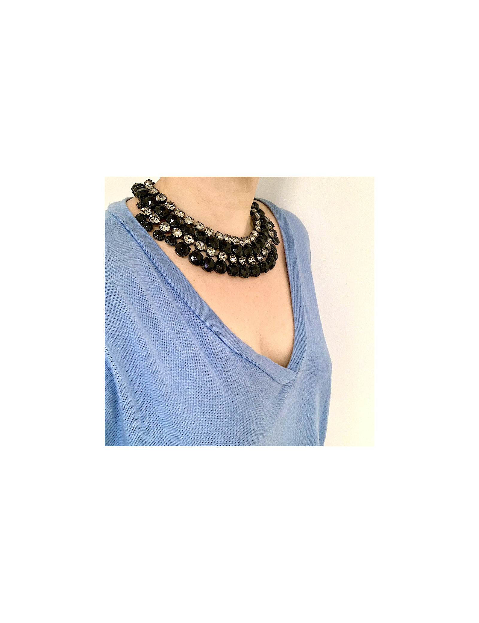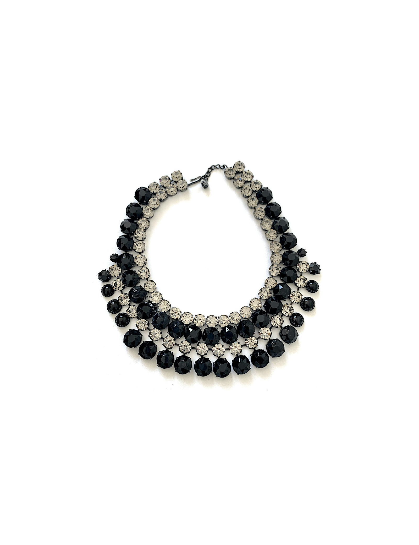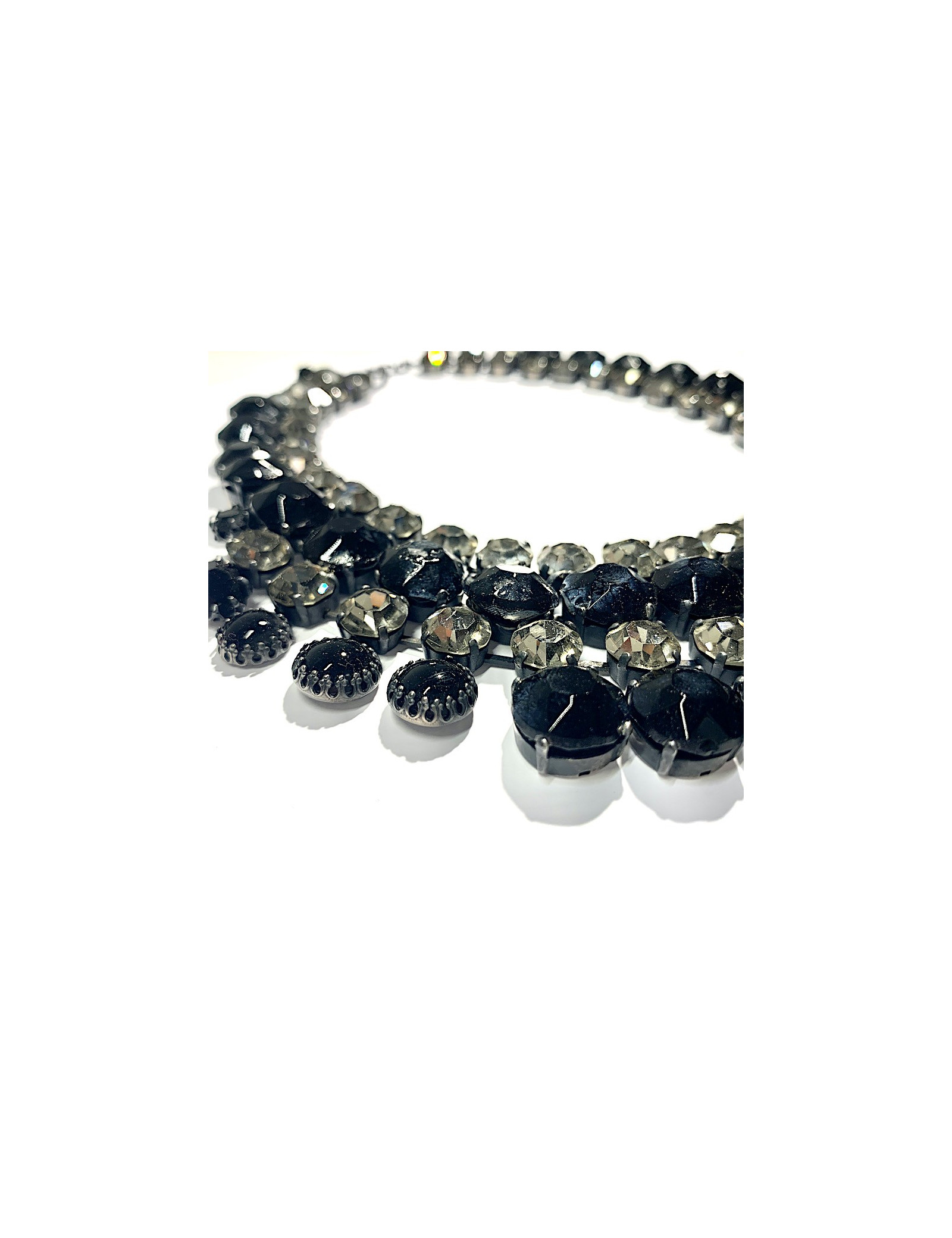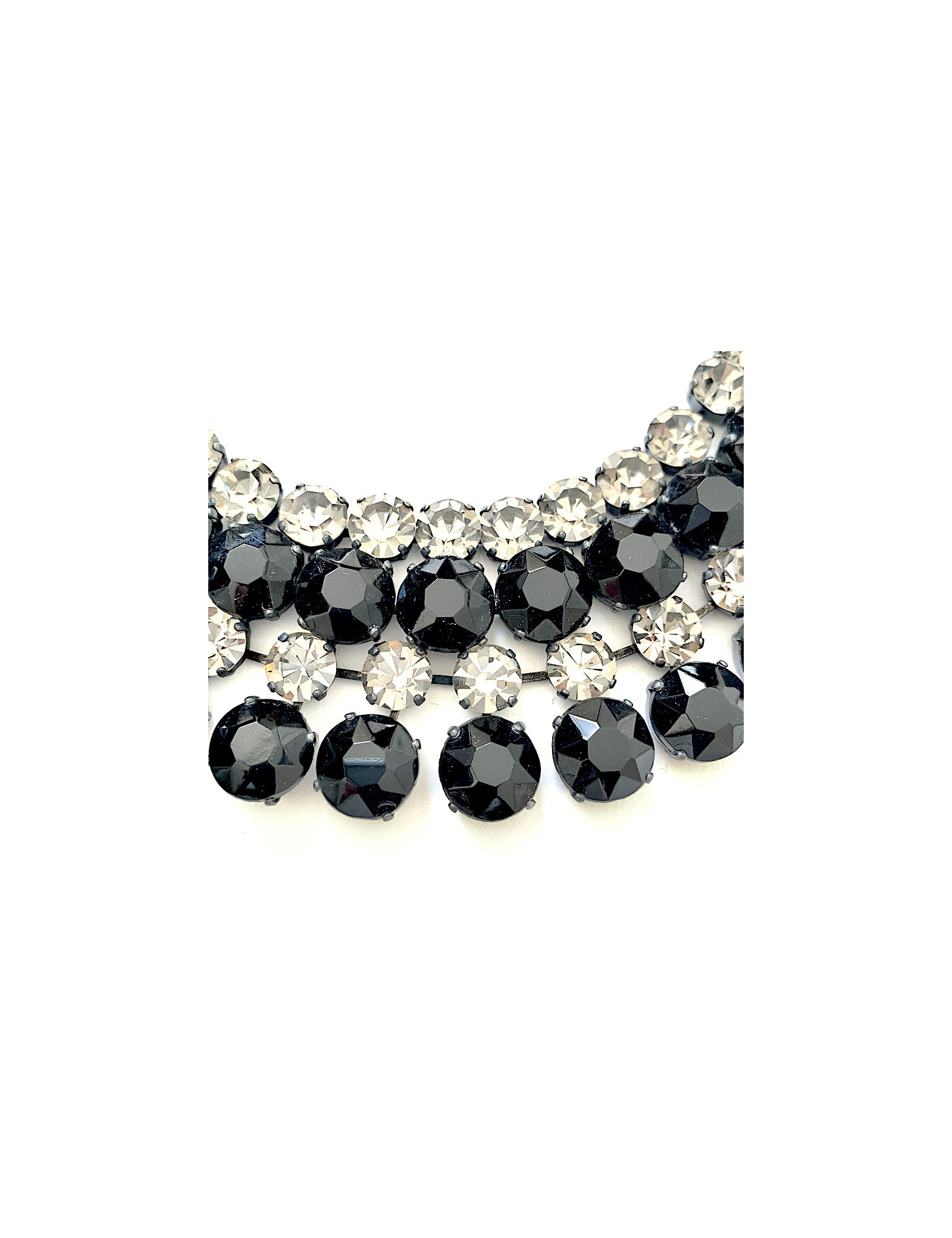 Plastron CHRISTIAN DIOR composé de 4 rangées de cristaux. Deux rangées de cristaux facettés blancs et deux rangées de cristaux facettés noirs de plus grande taille. Quelques pierres rondes terminent le plastron sur les extrémités.