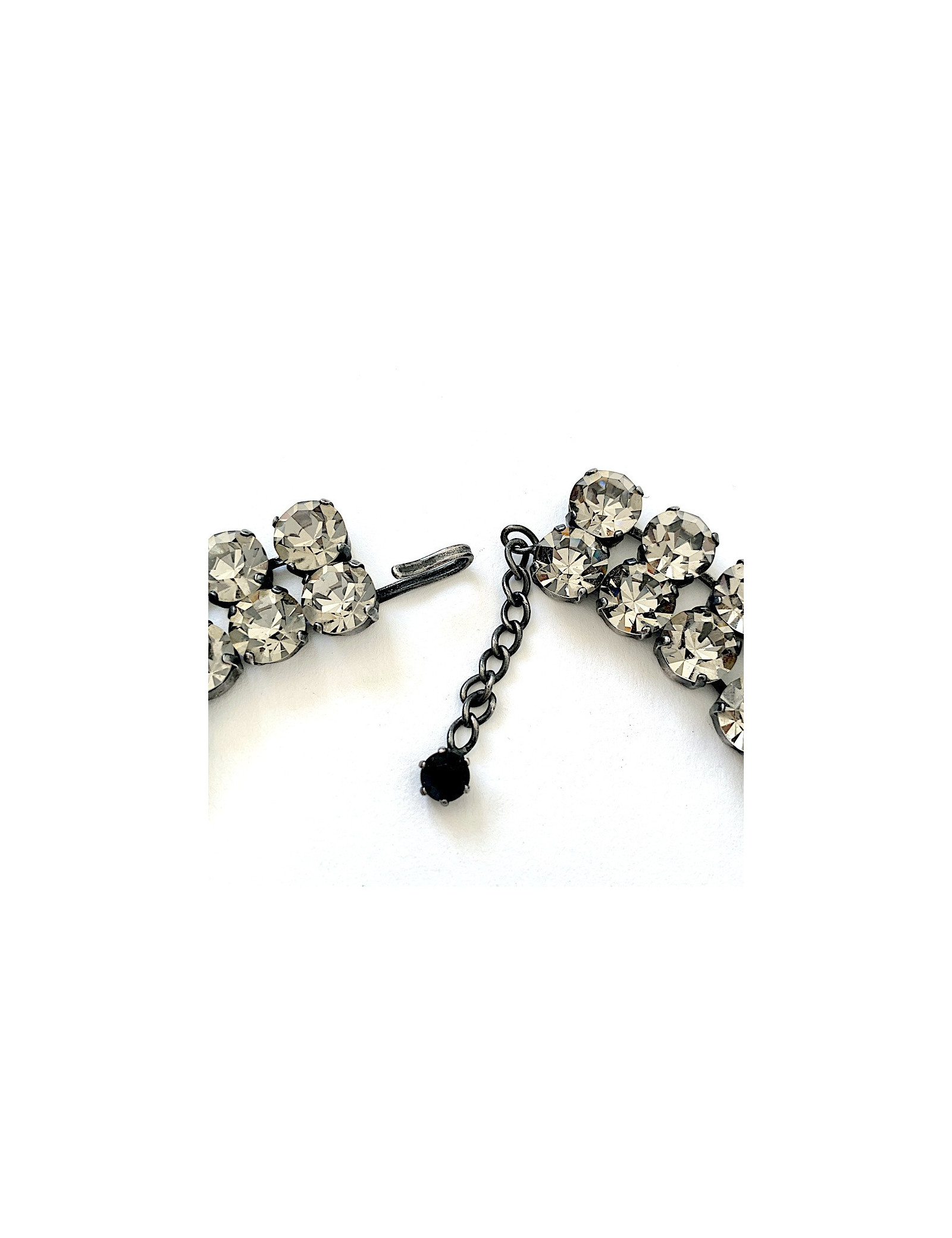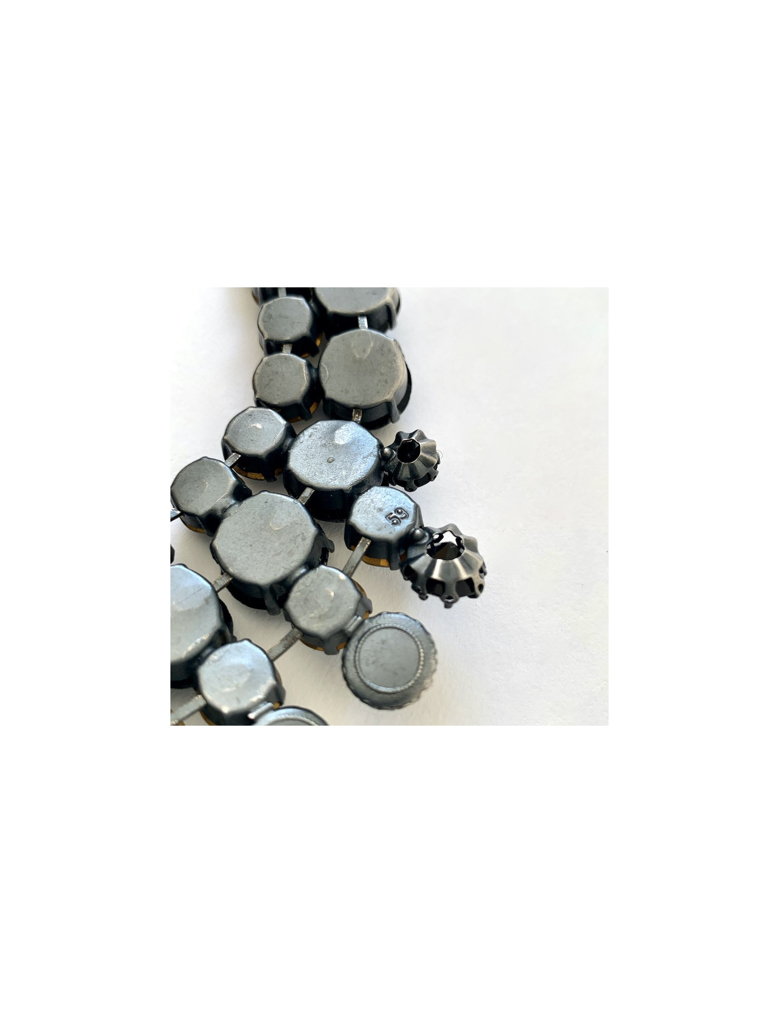 Ces cristaux sont montés sur du métal ruthénium. Fermoir crochet. La chaînette du fermoir se termine par un petit strass.