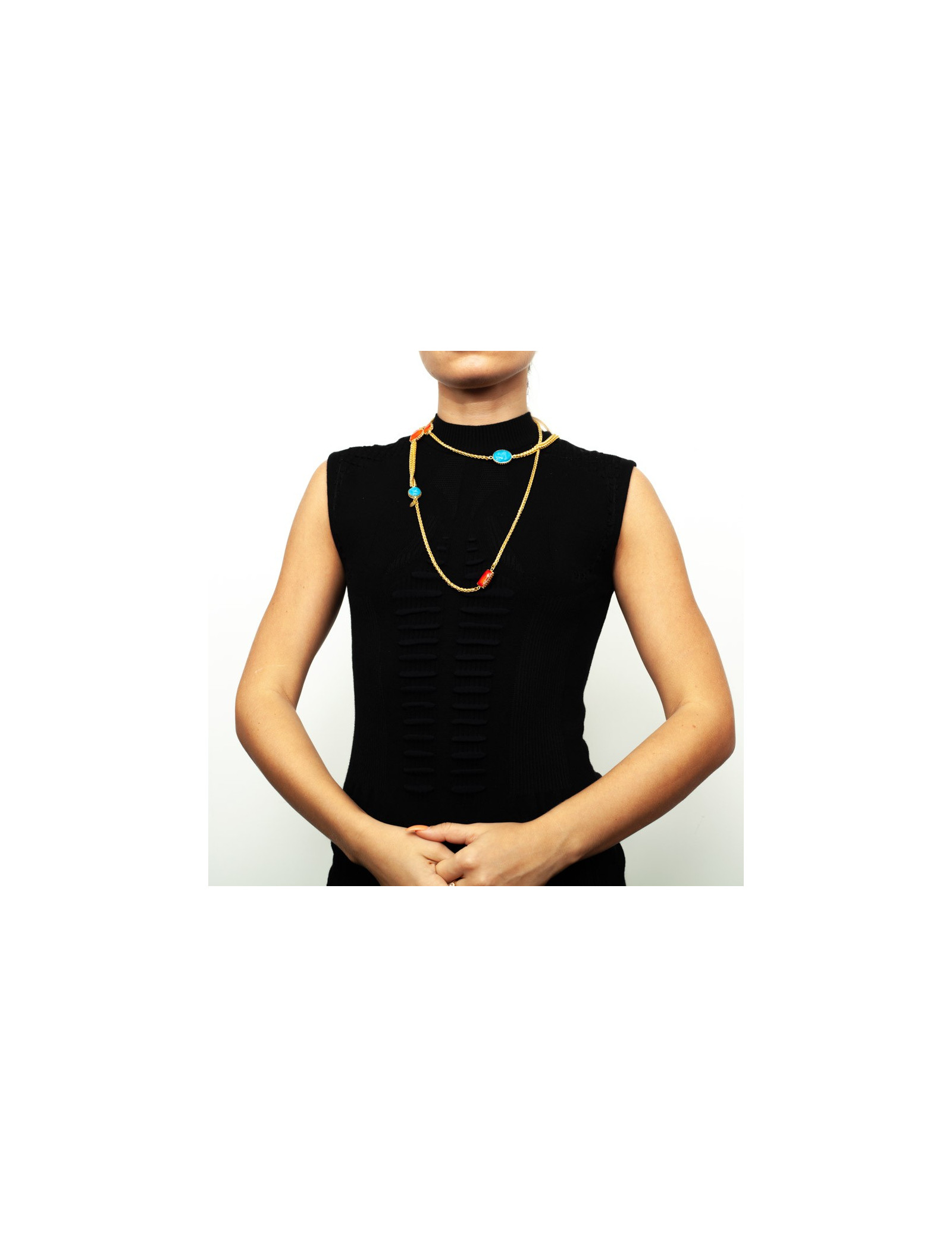 Sautoir MARGUERITE DE VALOIS turquoise et corail