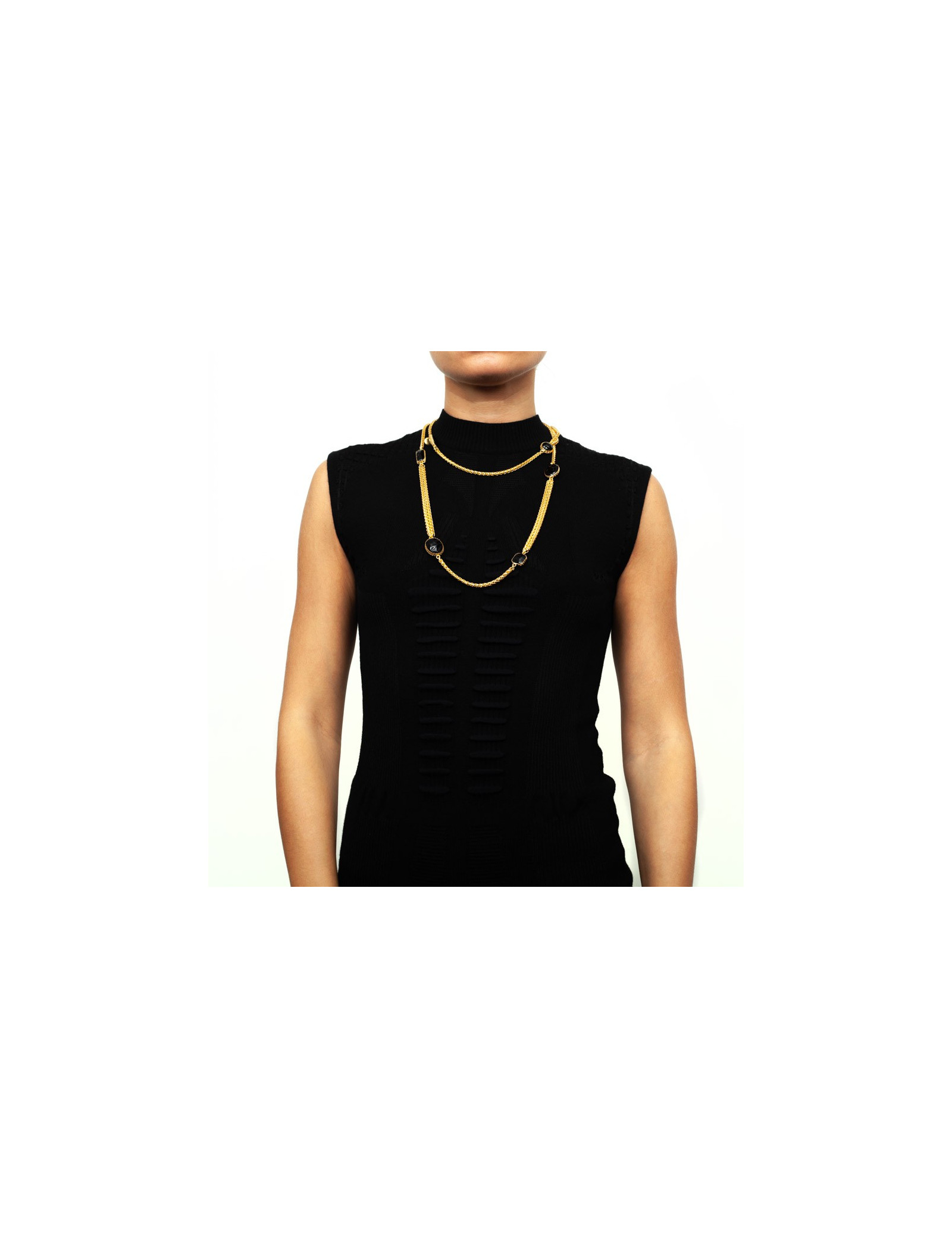 Un sautoir facile à porter sur n'importe quelle tenue. Il apportera une touche élégante qui terminera de vous rendre sublime. Chaque pièce est fabriquée à la main, coulée dans l'or fin et agrémentée par la pâte de verre. Travail français. Exclusivité Valois Vintage Paris.