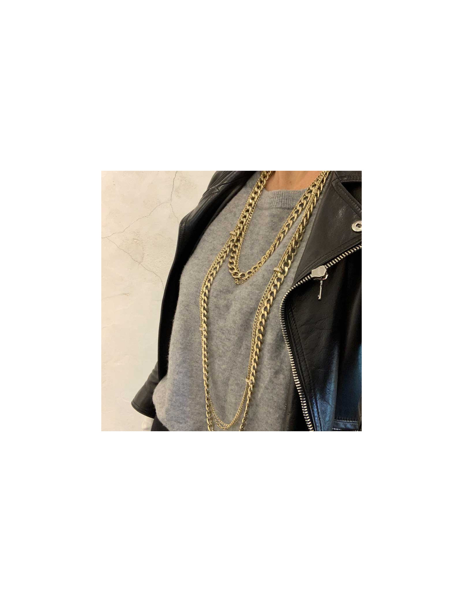 Magnifique pièce de chez CHANEL. Long sautoir composé d'un double rang de multi-chaînes de taille variées en métal doré à l'or fin et rassemblées par des anneaux sertis de strass.