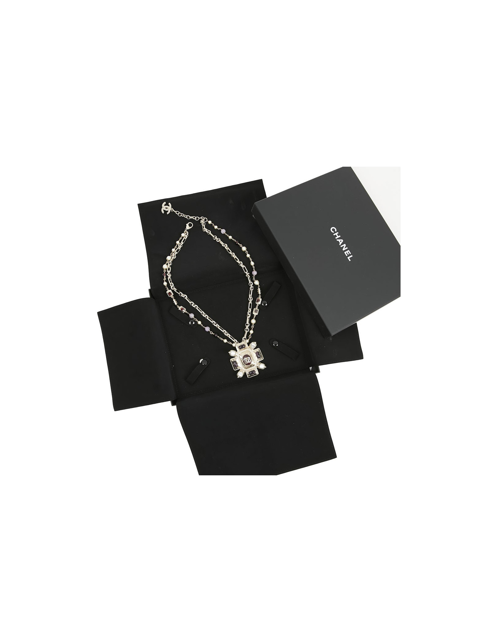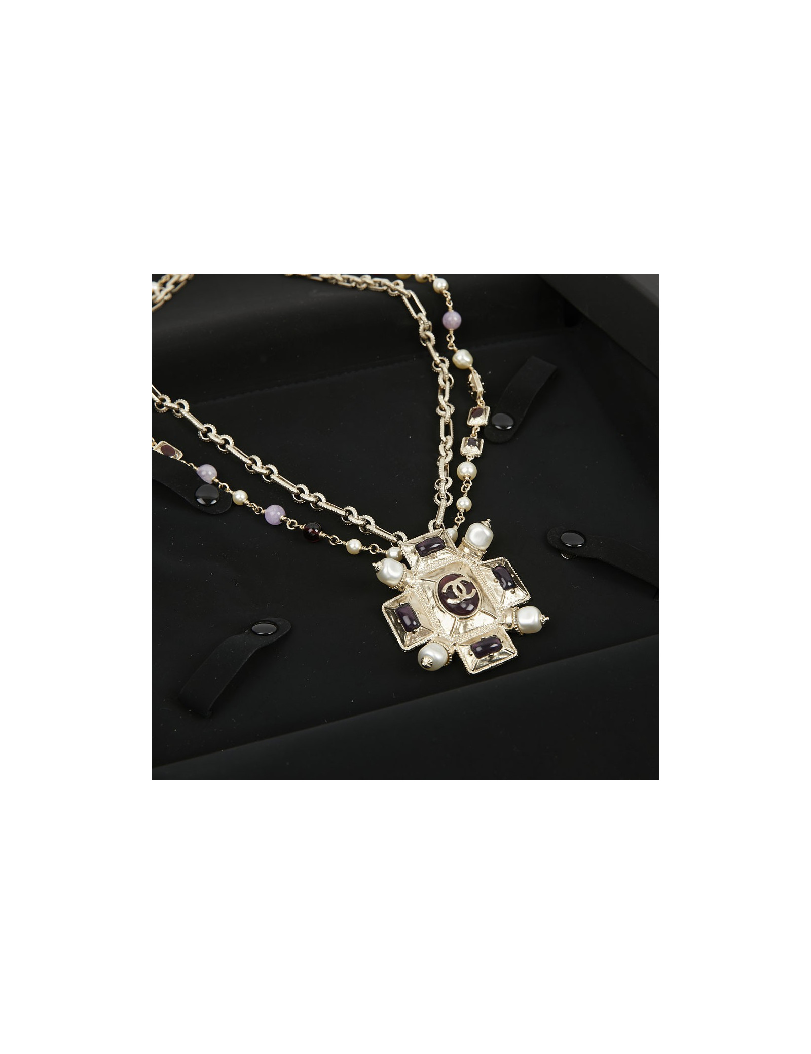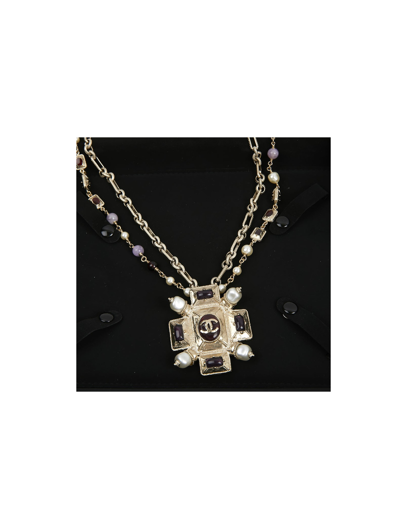 Sautoir CHANEL croix et perles, détails