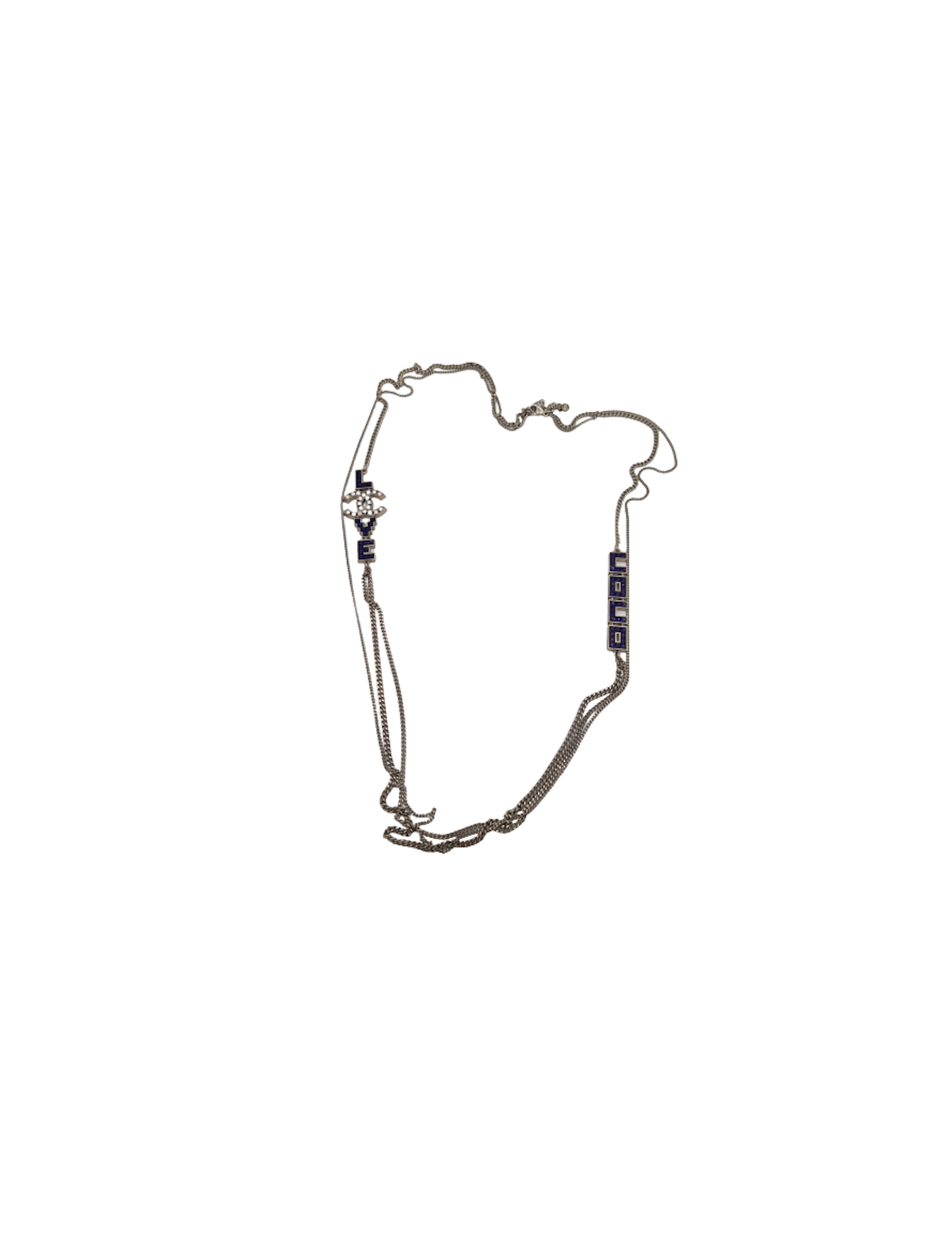 Ce sautoir Coco Love est en métal argent. Il mesure 95 cm de long. Les dimensions du Love : Longueur 6.2 x largeur 3 cm et Coco : 6 x 3.1 cm. Il est possible d'ajuster la longueur du collier sur 5 cm, fermeture par un fermoir mousqueton.