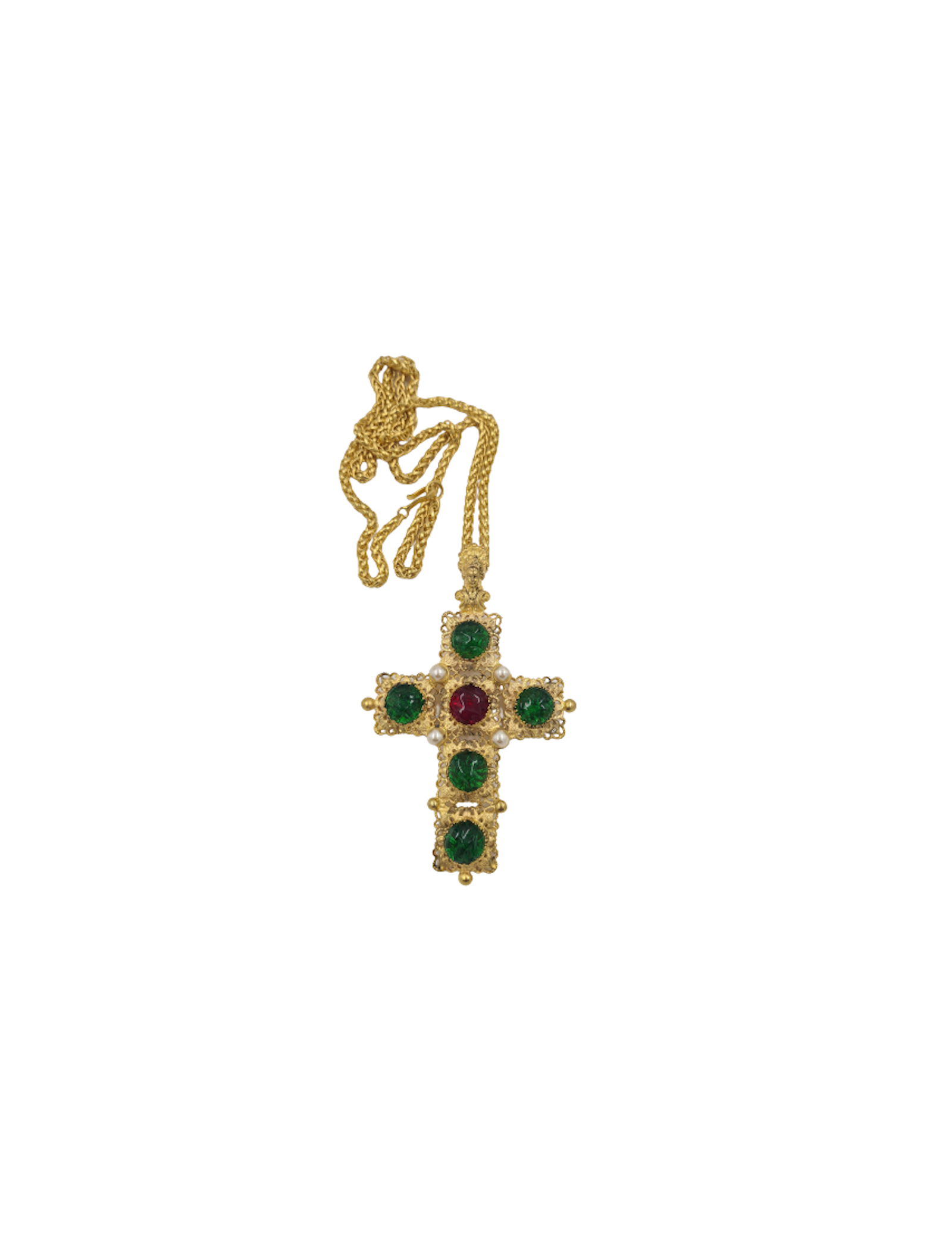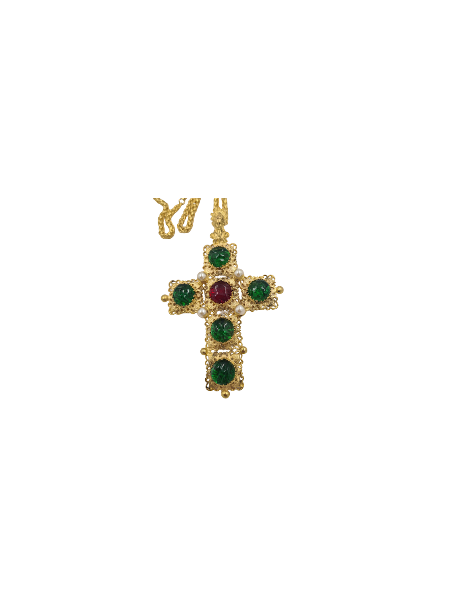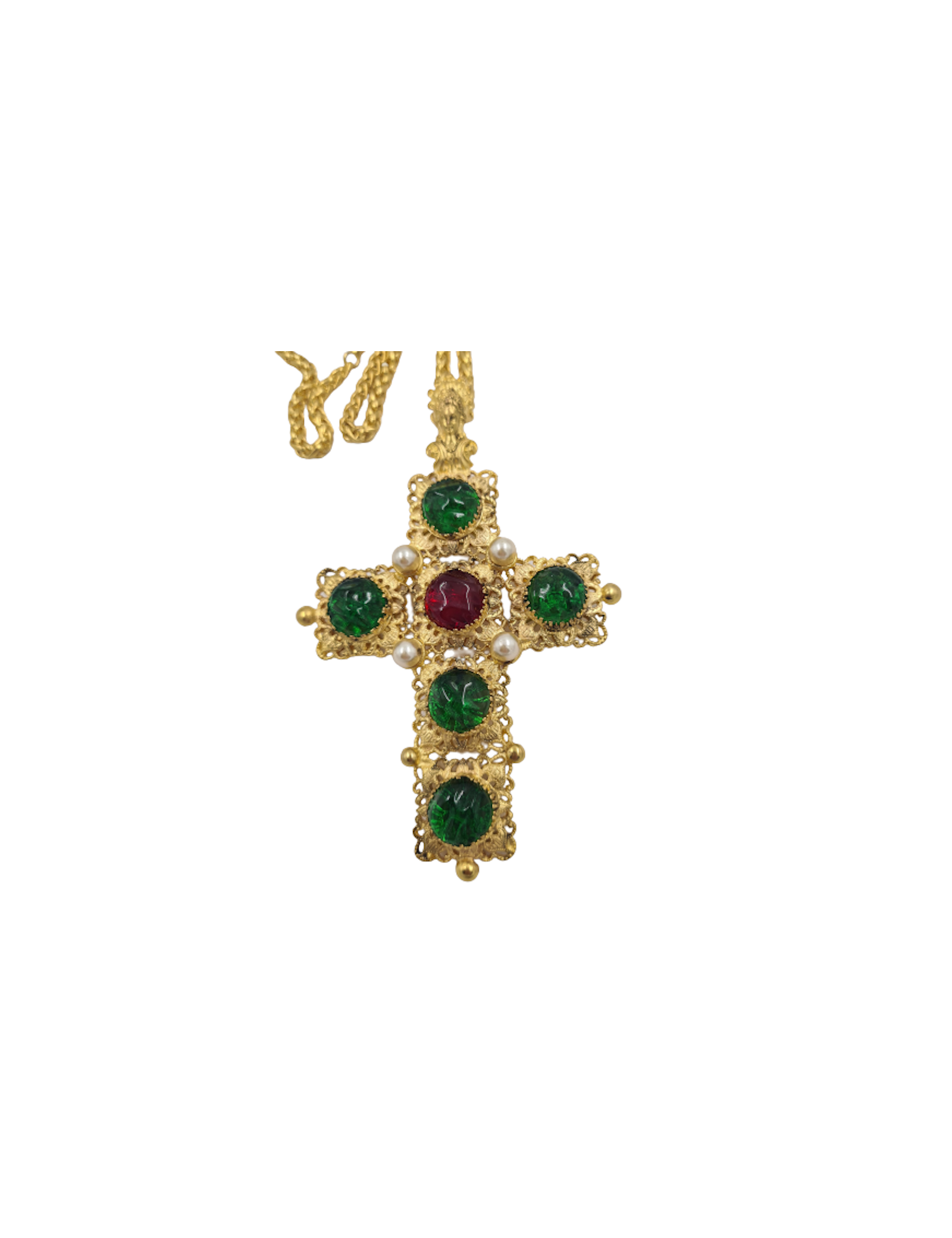 Sautoir croix Marguerite de Valois couture emeurode rubis