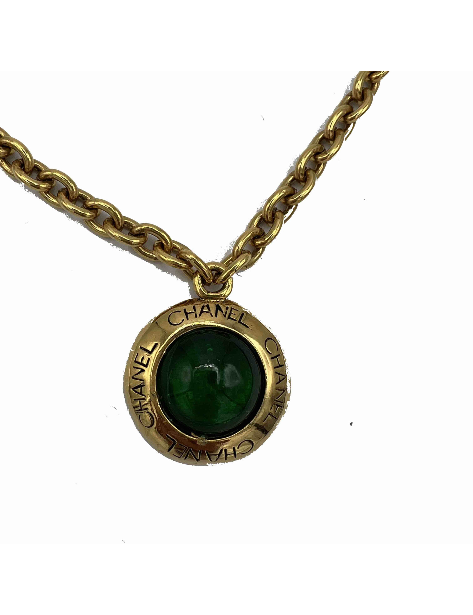 Collier CHANEL pâte de verre emeraude