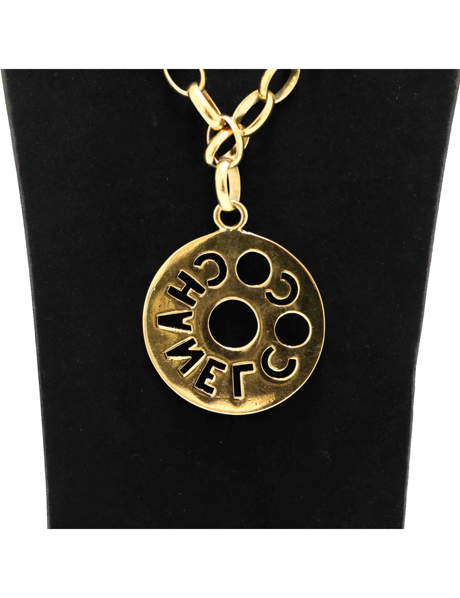 Détails : médaillon rond avec inscription COCO CHANEL