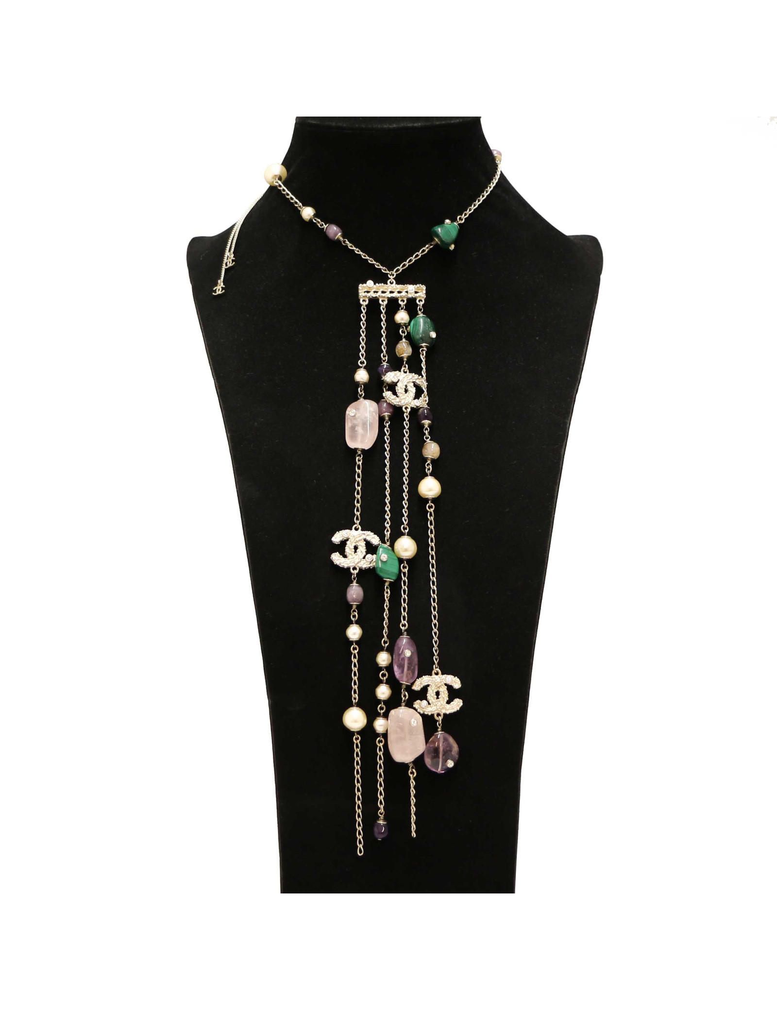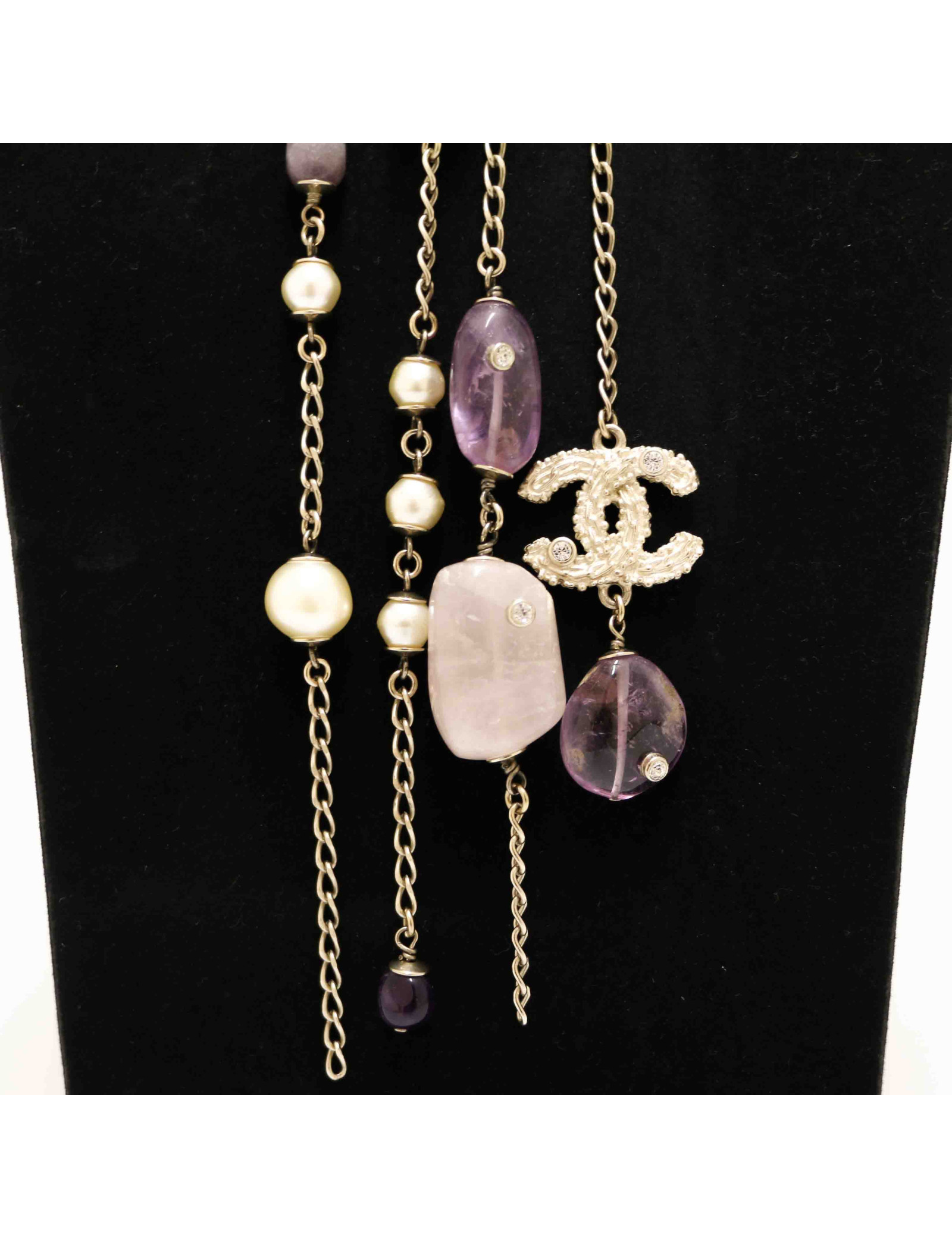 Matière : pierres quartz rose, malachite, améthyste, métal, strass, perles nacrées