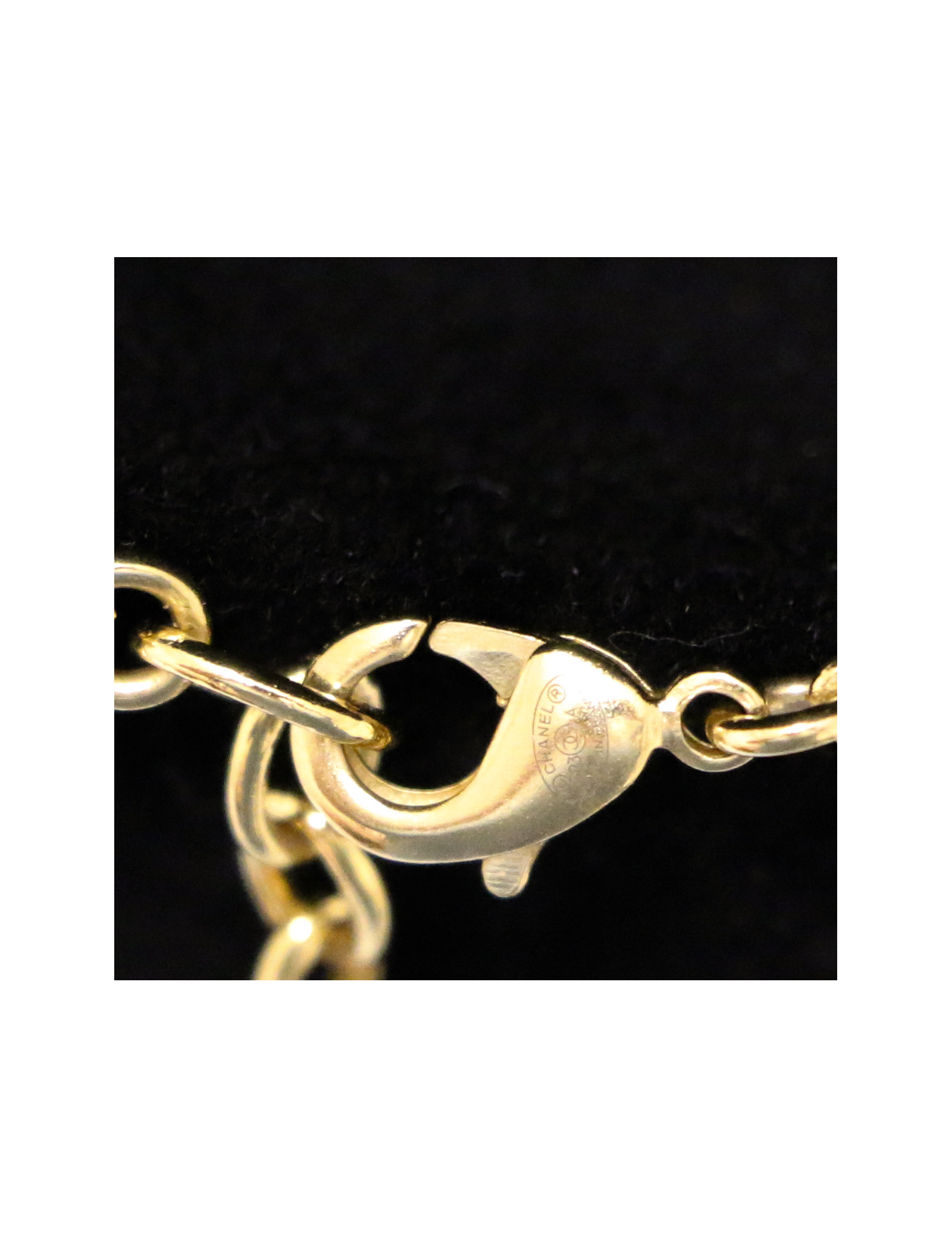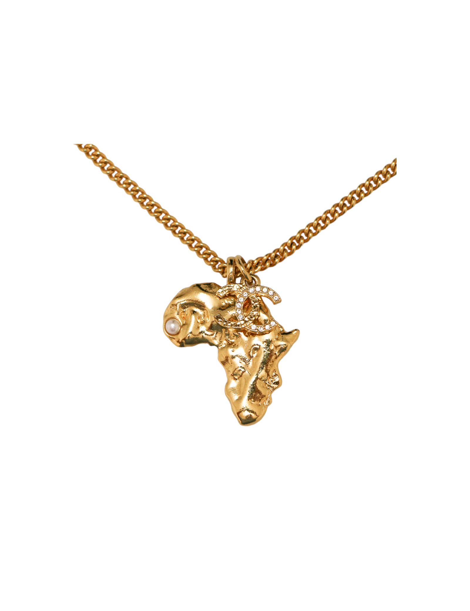 Détails : pendentif du continent africain avec une perle nacrée et petit pendentif CC avec brillants, bijou CC sur le fermoir. Fourni avec son livret d'utilisation.