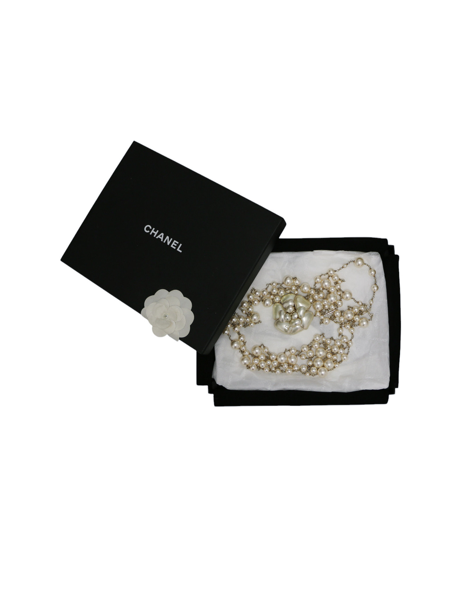 Sautoir CHANEL perles nacrées camélia