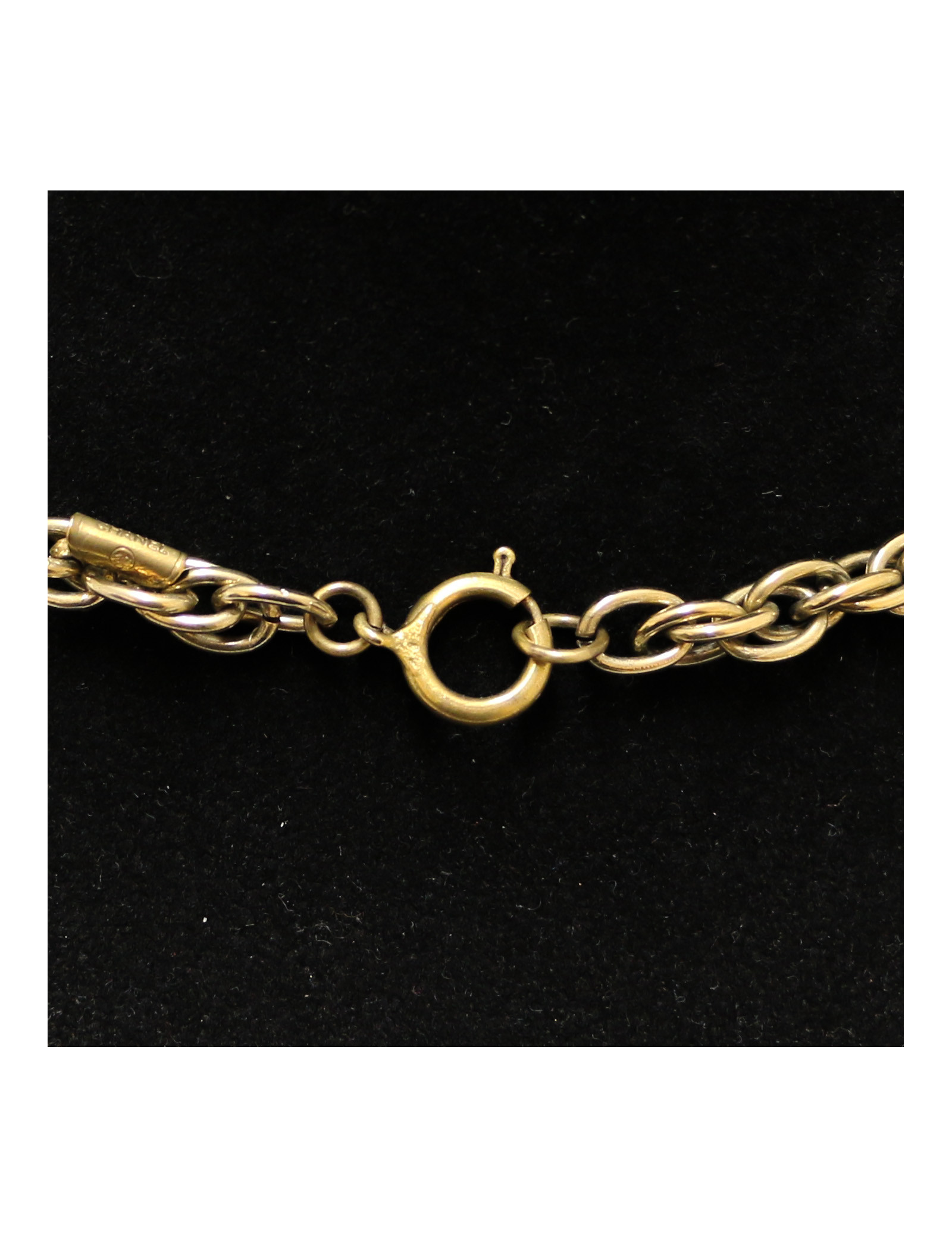 Détails : longue chaîne en maille avec deux breloques non amovibles. La pastille de la marque se trouve sur la chaîne soudée.
