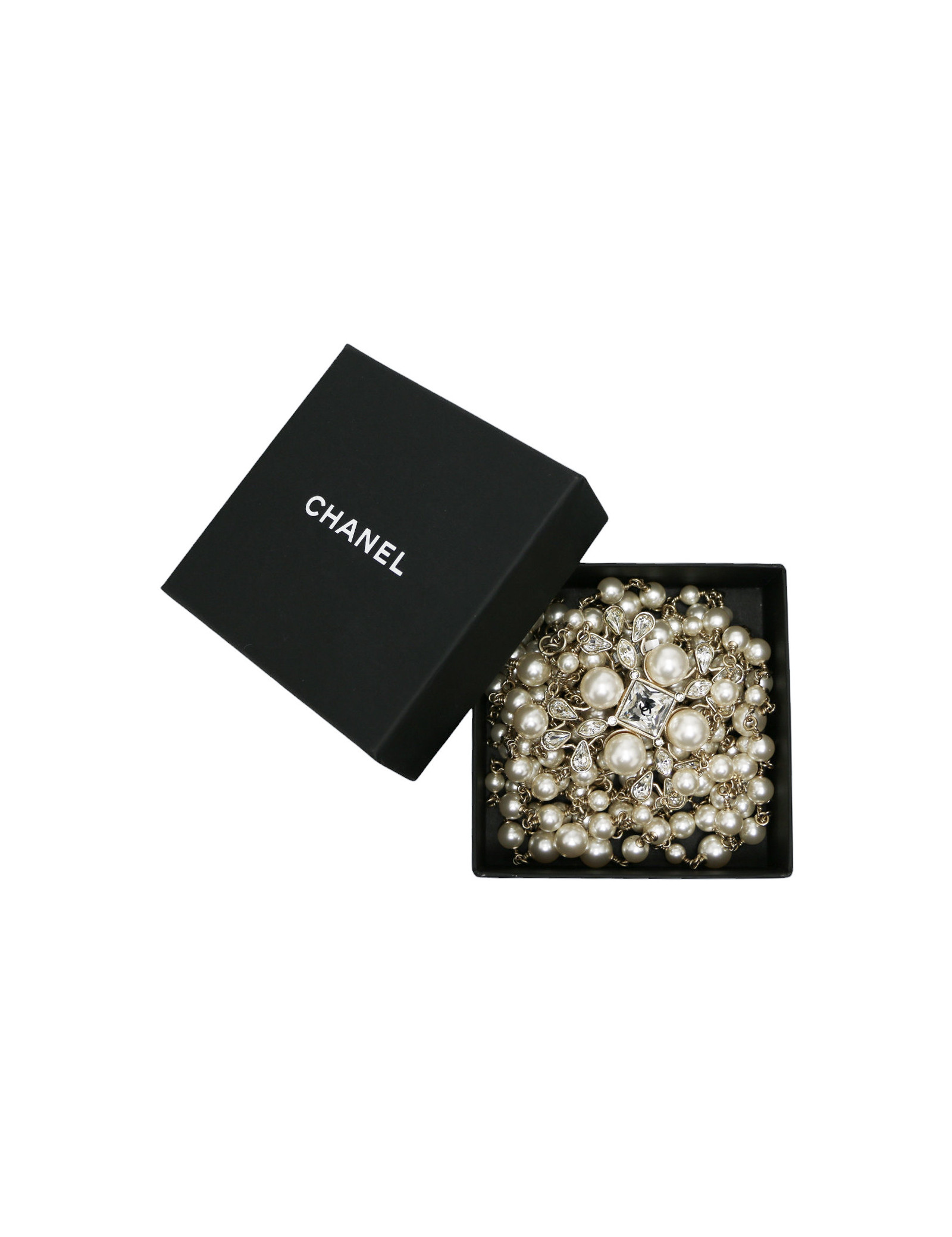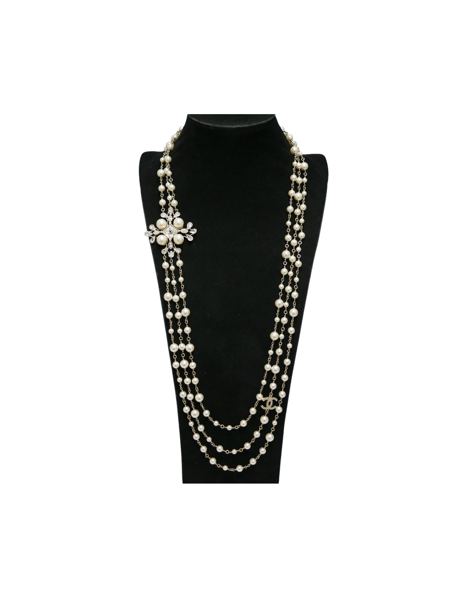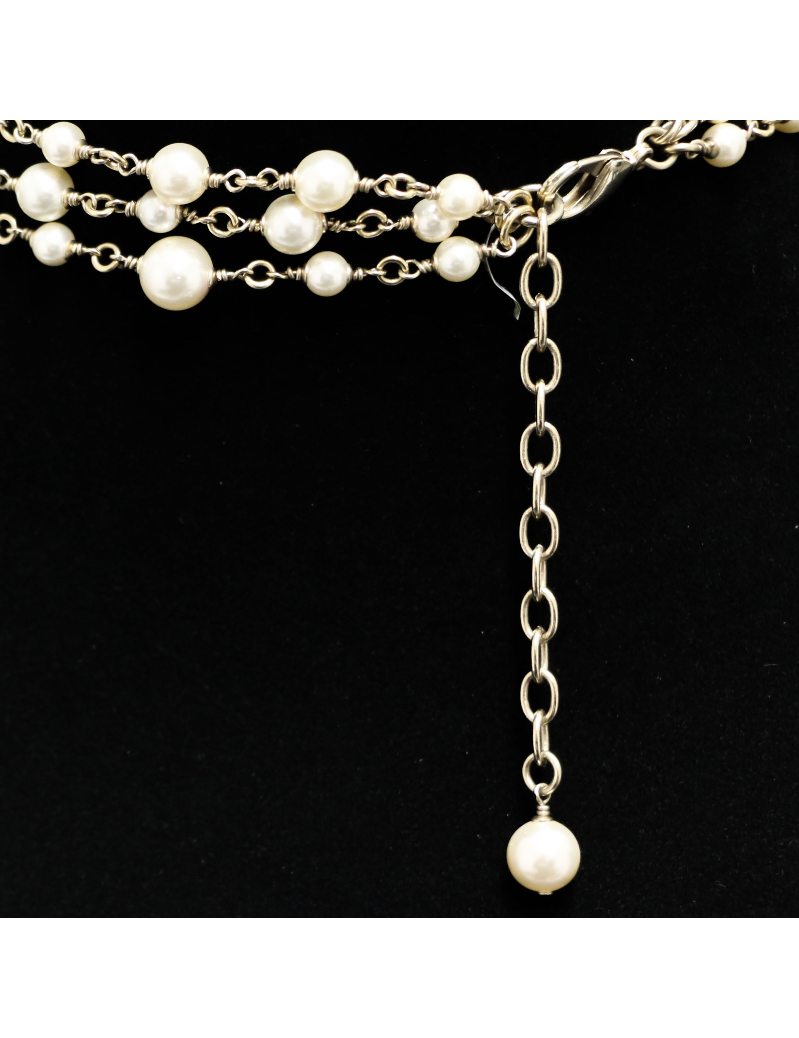 Détails : trois rangs, un bijou CC et un bijou en forme de losange avec des gros cristaux Swarovski et quatre grosses perles