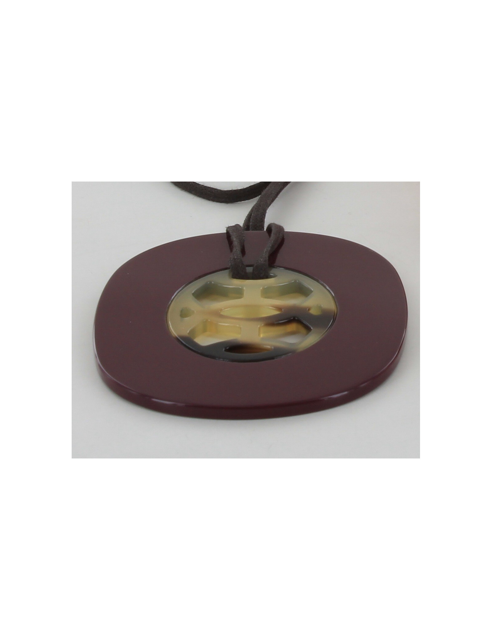 Collier en corne et laque HERMES, de couleur prune foncé et façon écaille de tortue au centre. quelques micro rayures -