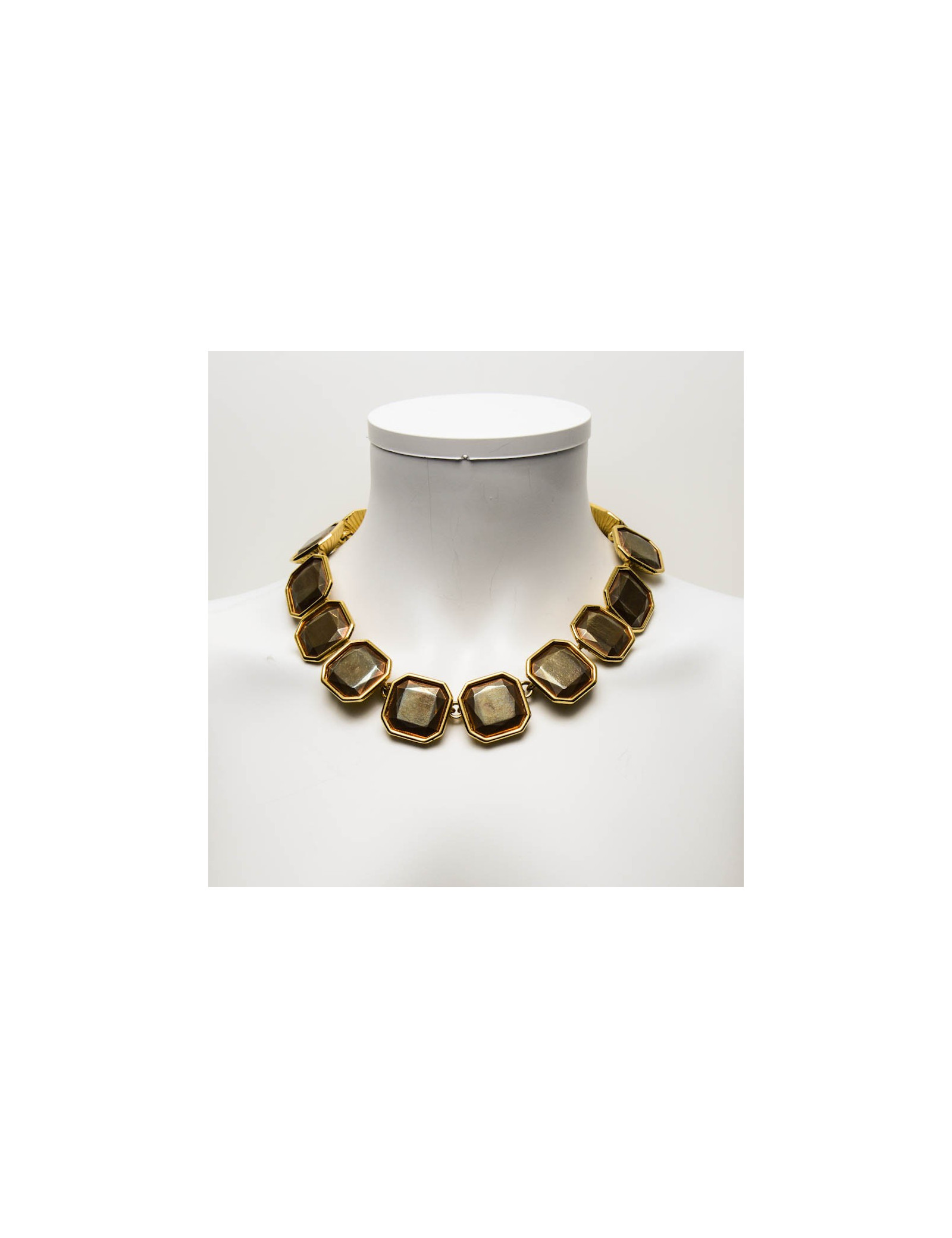Imposant Collier YSL, en métal doré YVES SAINT LAURENT, vintage. Les pièces sont en métal massif. L'avant est cuivré et le dos est doré à l'or 18 carats.