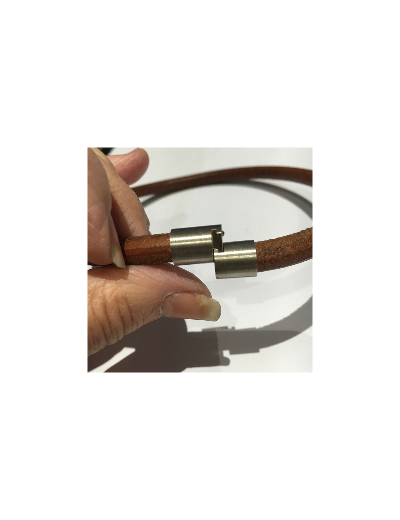 Le fermoir : Il faut tirer vers soi de la main droite et de la main gauche tirer vers l'arrière (voir photos)