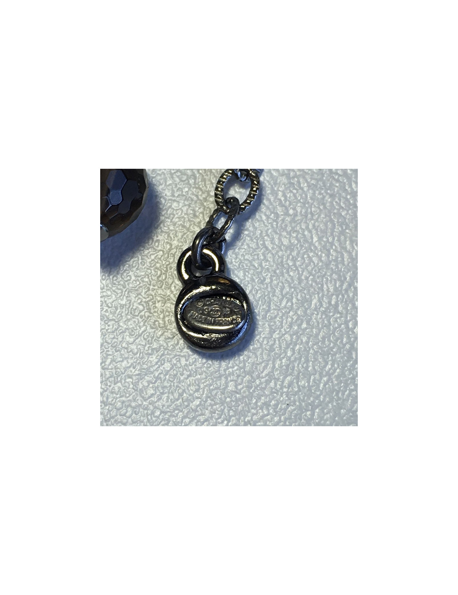 Sautoir Chanel doré perles noires et nacrées