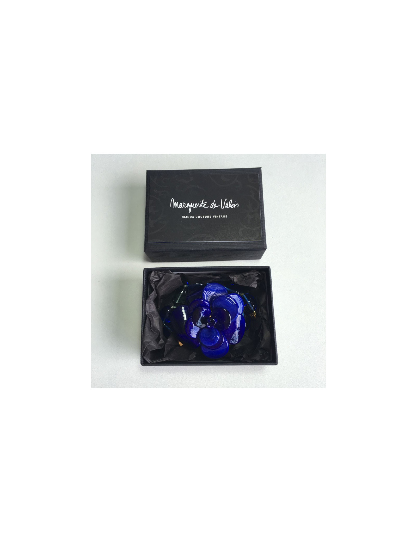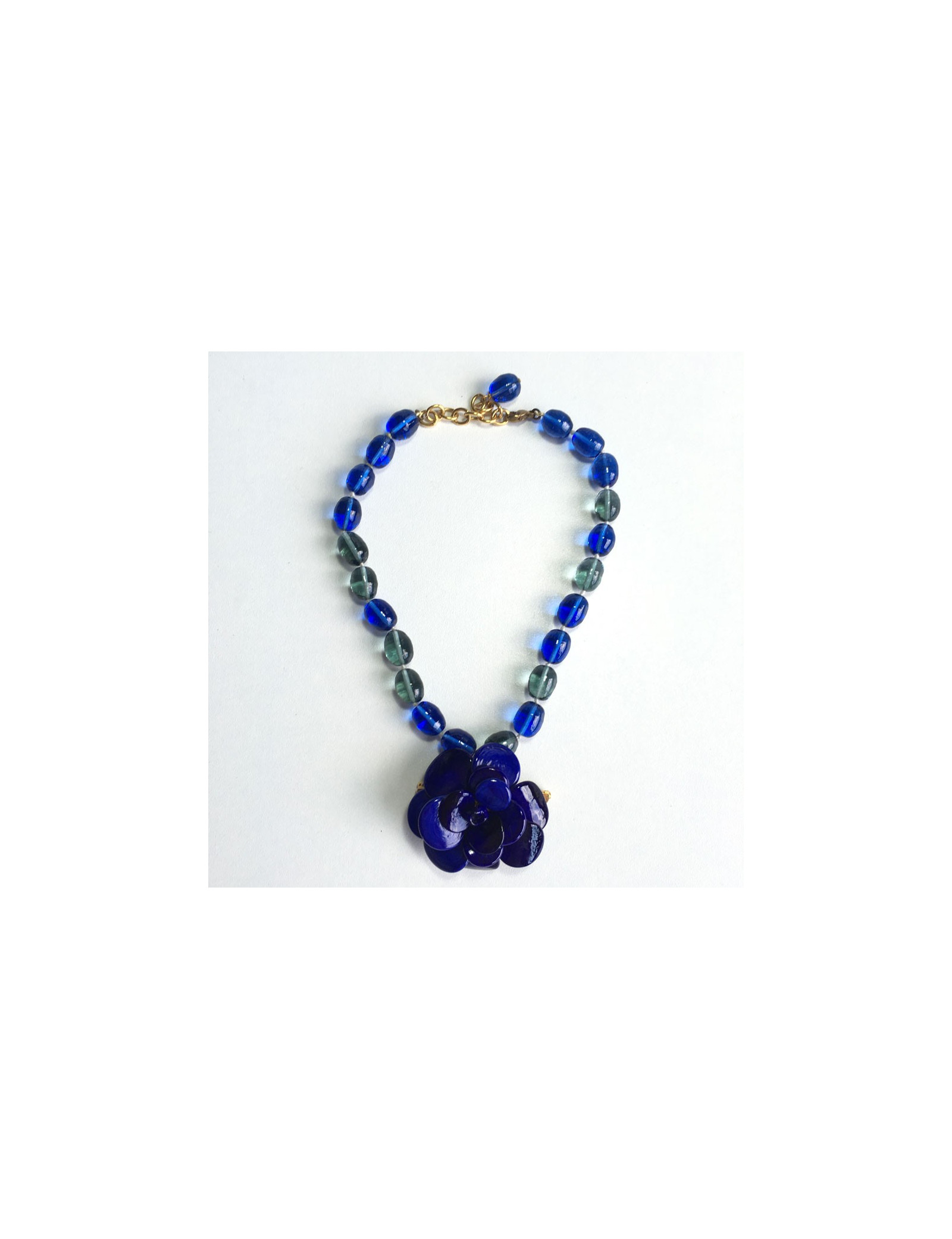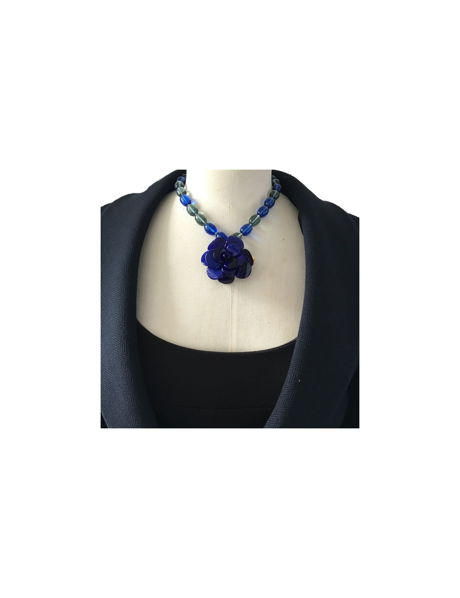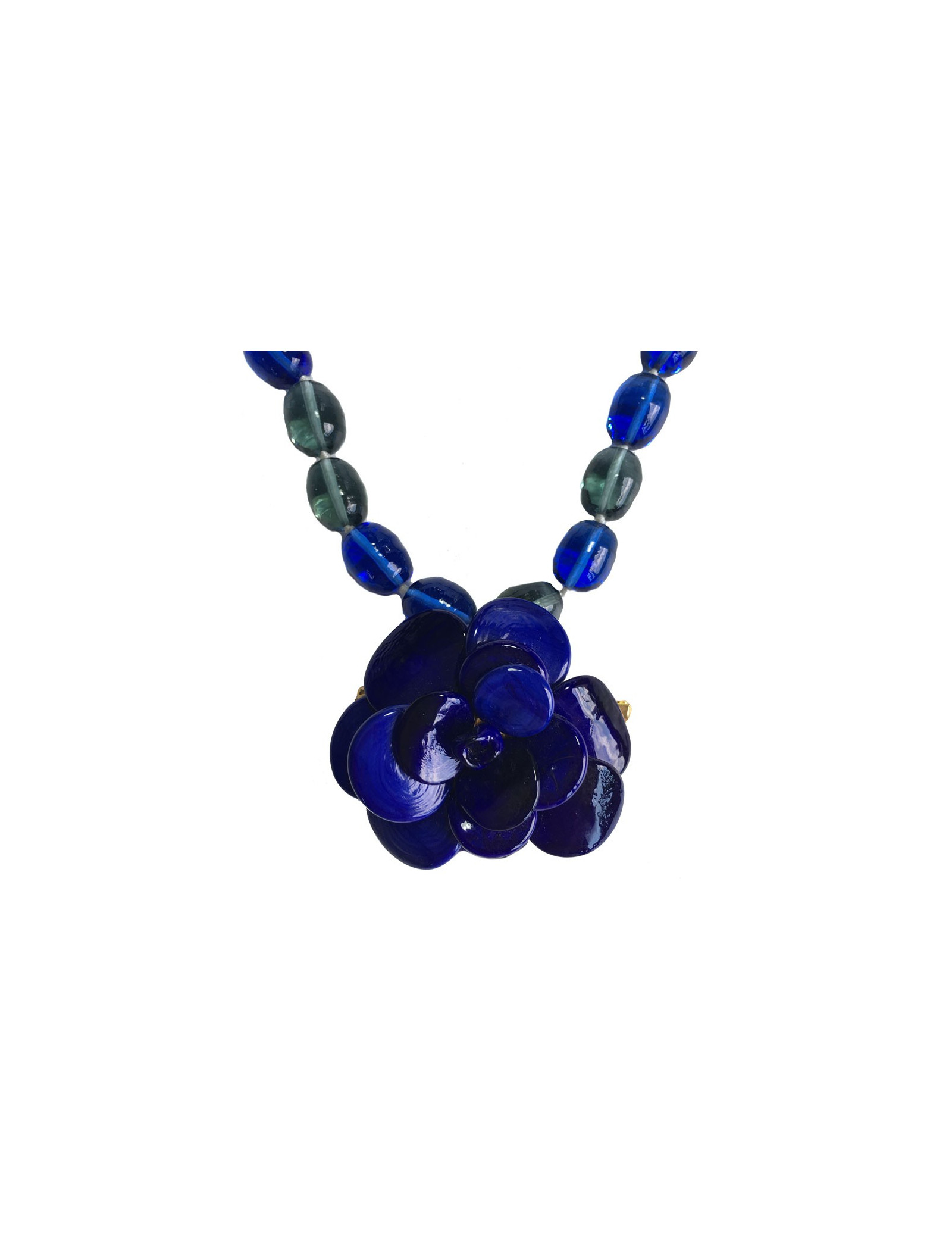 Collier MARGUERITE de VALOIS camélia en pâte de verre bleu