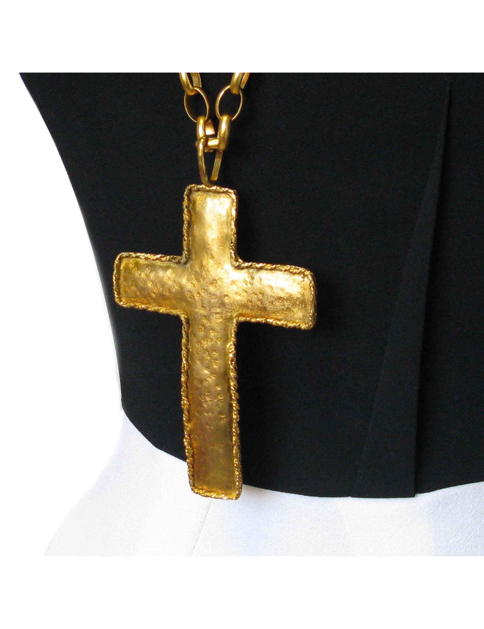 Très beau sautoir croix Marguerite de Valois entièrement réalisé en métal doré à l'or fin. Chaîne à anneau. Etat neuf.