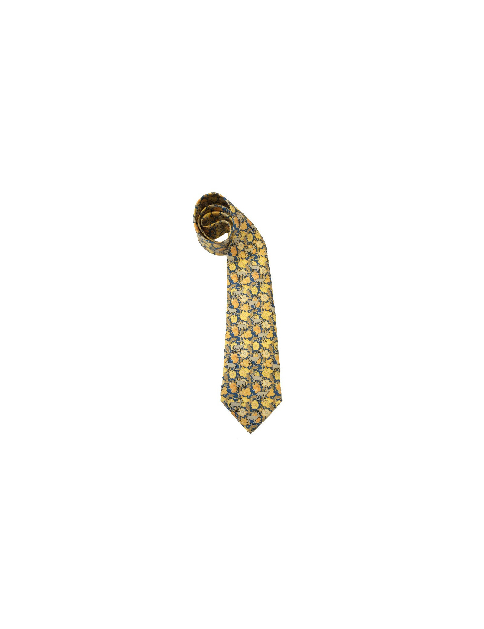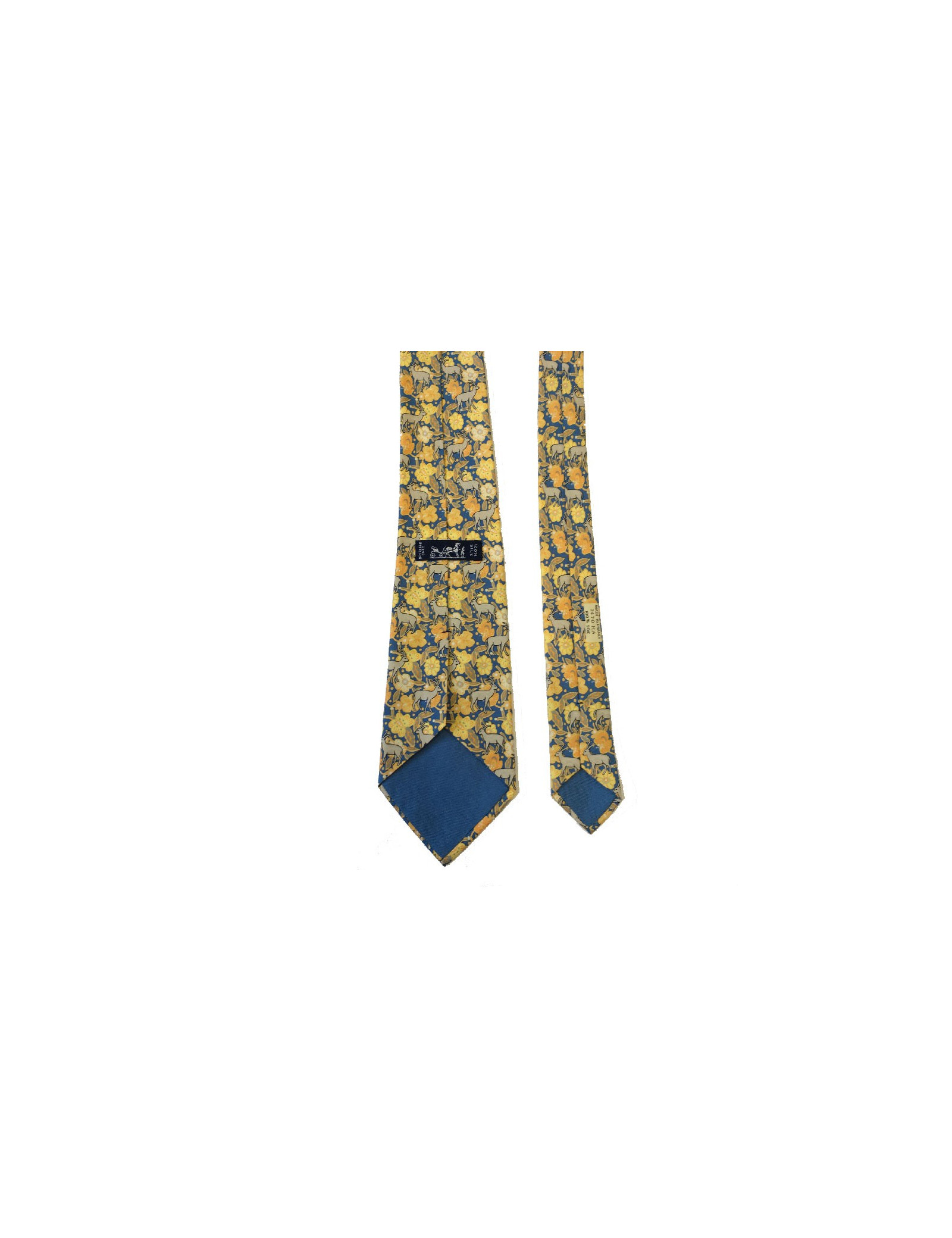 Cravate HERMÈS vintage en soie imprimée jaune, orange et bleu
