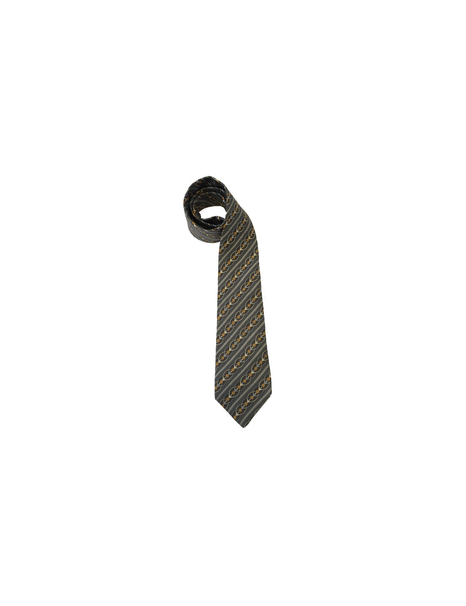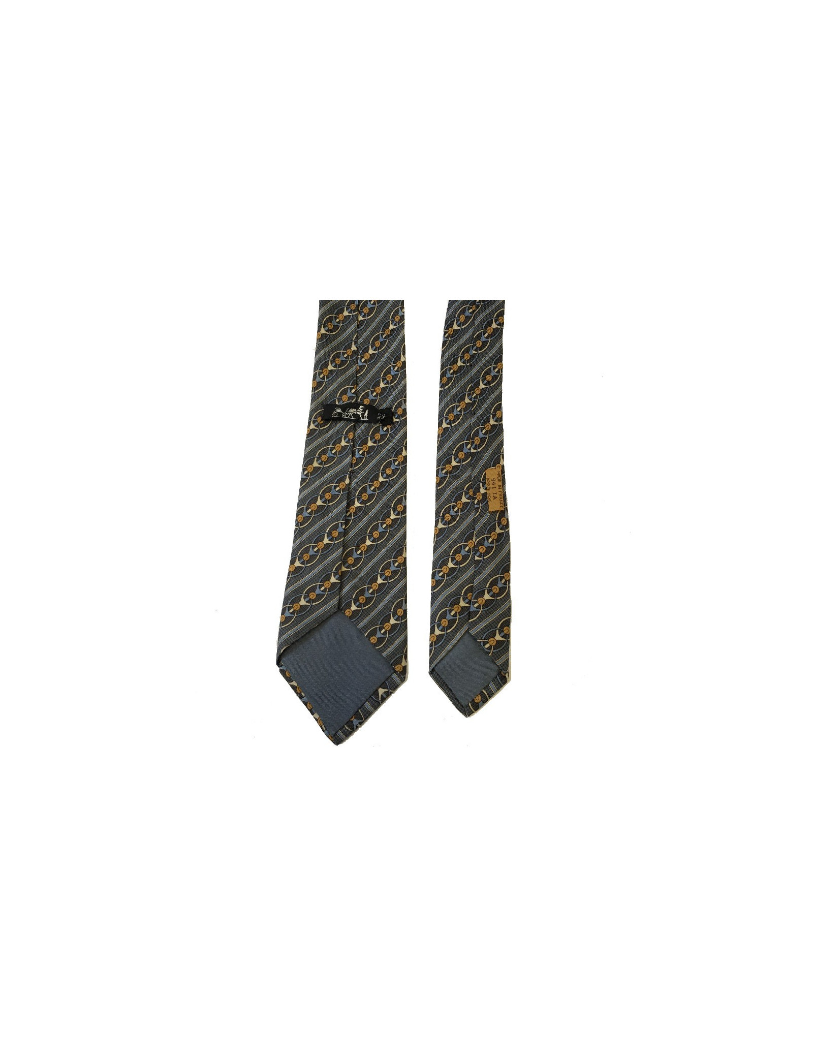 Cravate HERMÈS vintage en soie imprimée gris anthracite
