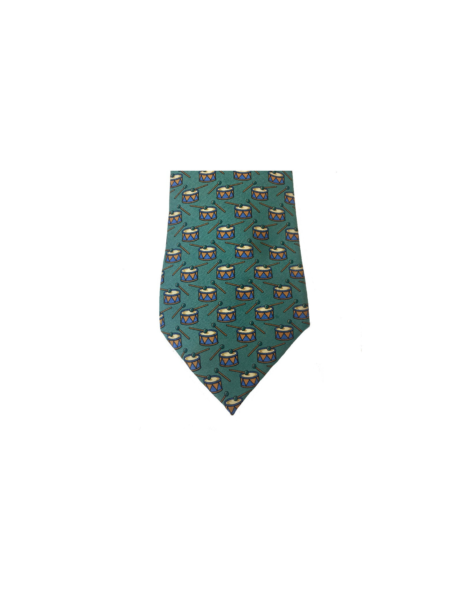 Cette Cravate HERMES est en soie. Elle a un motif tambourin. Elle est en très bon état. On retrouve un camaïeu bleu, beige et ocre.