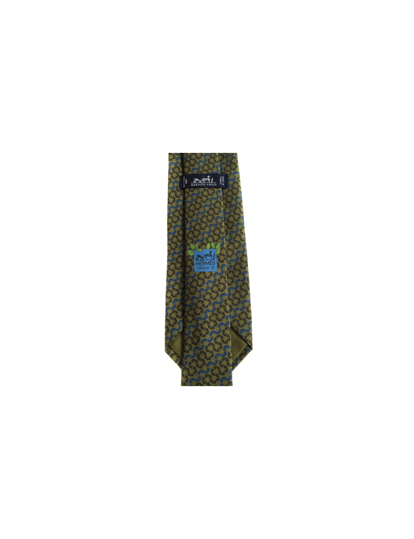Cravate HERMES en soie Kaki motifs flèches - détails :