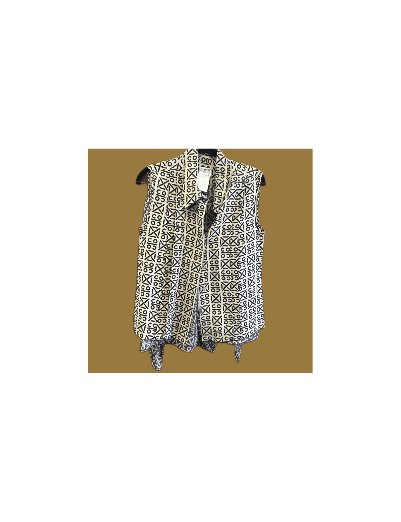 Nouveau Derniers articles en stock ENSEMBLE Ensemble CHANEL soie blouse short Automne 2000 CHANEL 40380 1 200,00 € Ensemble CHANEL soie vintage Condition : très bon étatPays de fabrication : FranceMatière : 100% soieCouleur : noir, beigeTaille : 38fr Dimensions à plat : Blouse : largeur sous les aisselles 45 cm, hauteur totale 62 cmShort : largeur taille 44 cm, hauteur totale 50 cmAnnée : Automne hiver 2000Détails : ensemble vintage aux motifs graphiques reprenant le... Ajouter au panier