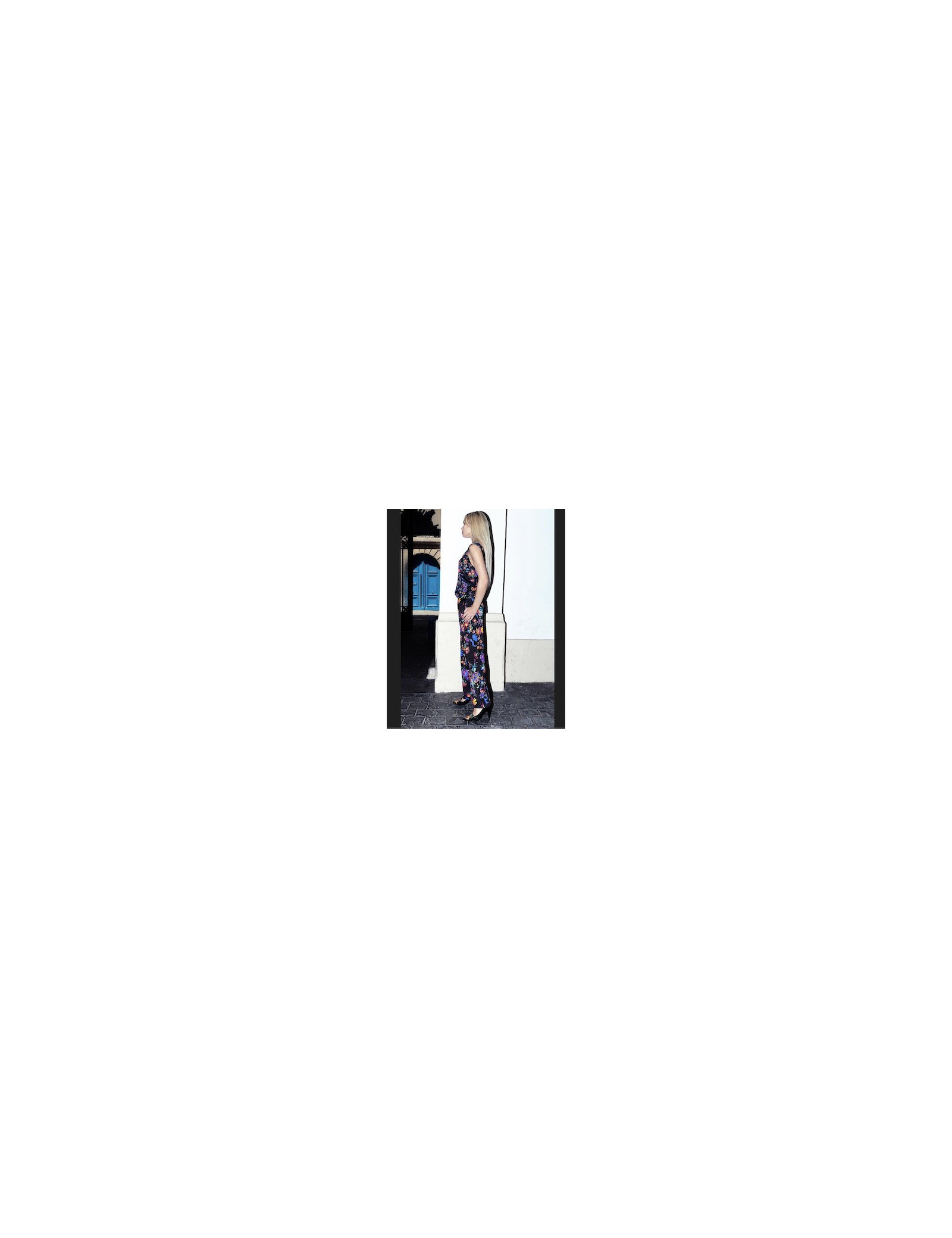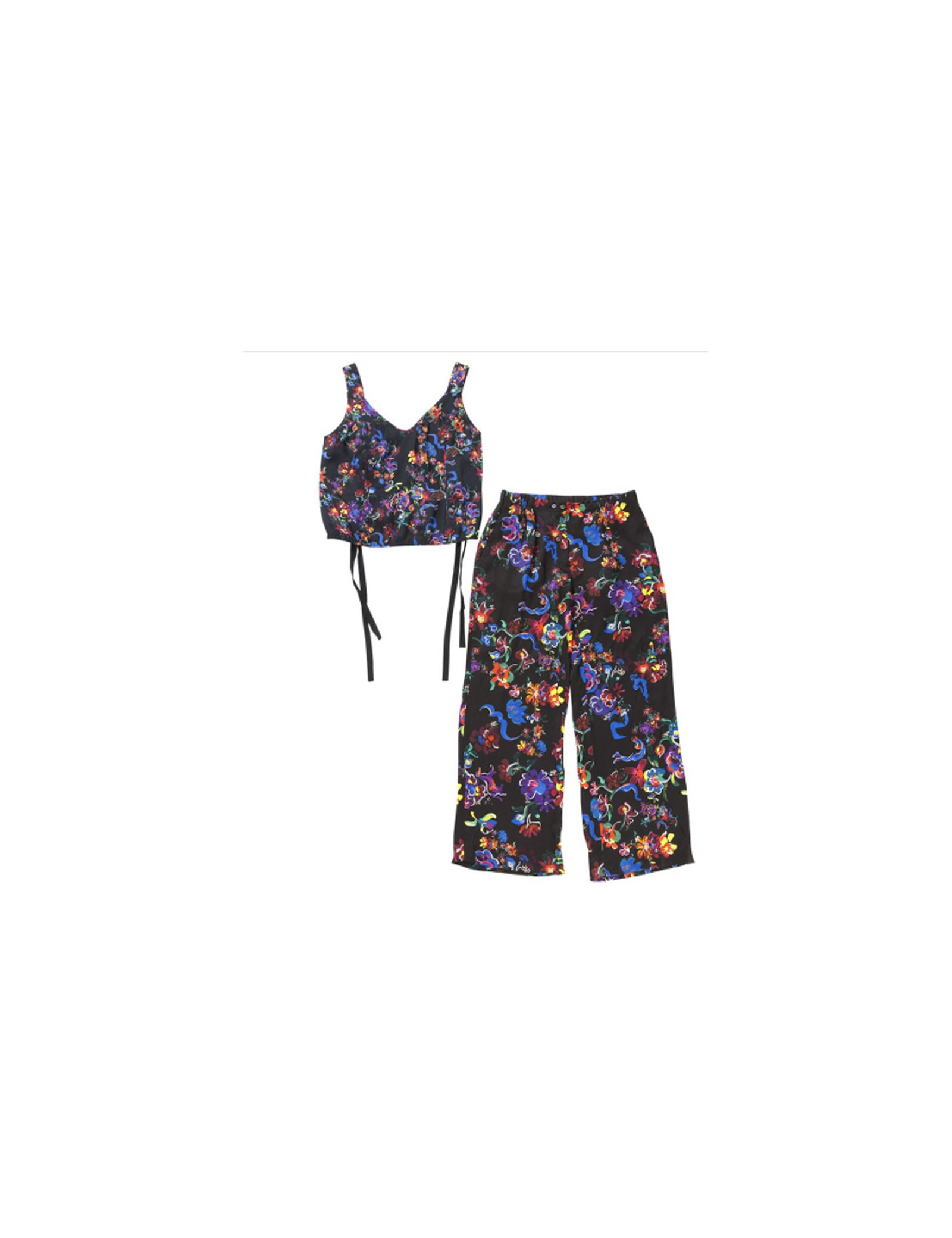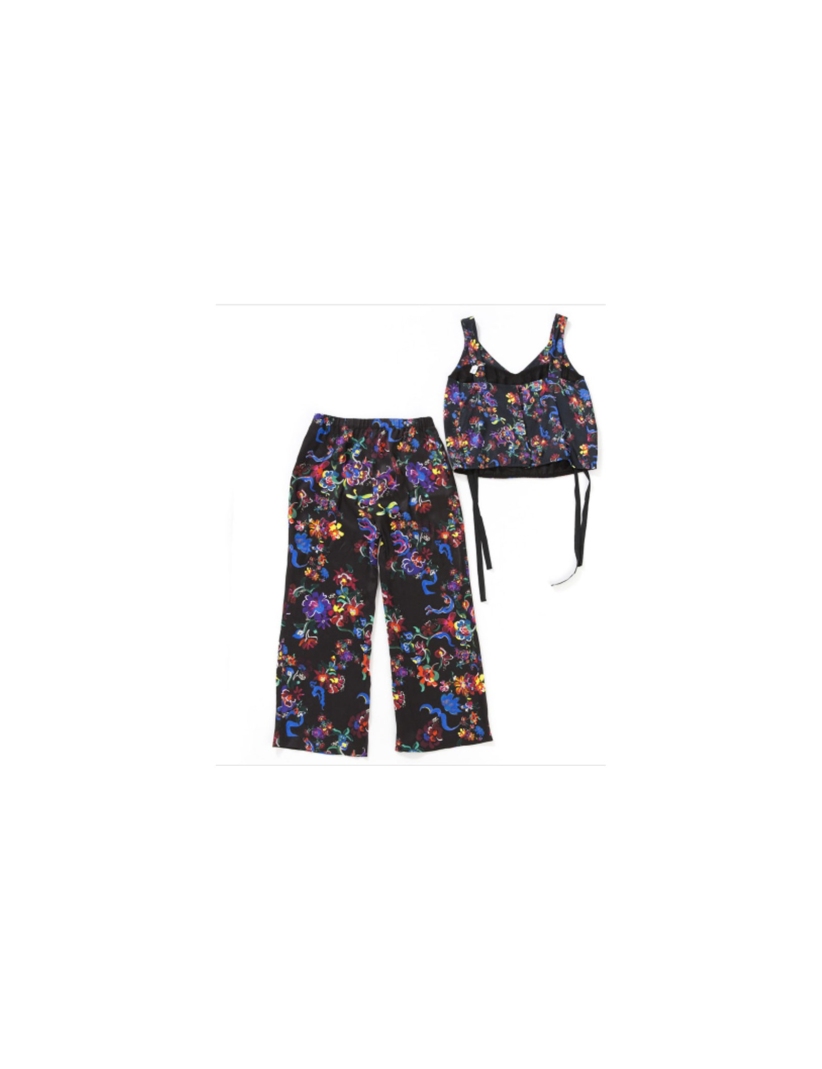 Ensemble Maison Martin Margiela composé d'un top à bretelles (fermeture à crochets dans le dos) et d'un pantalon imprimé floral.