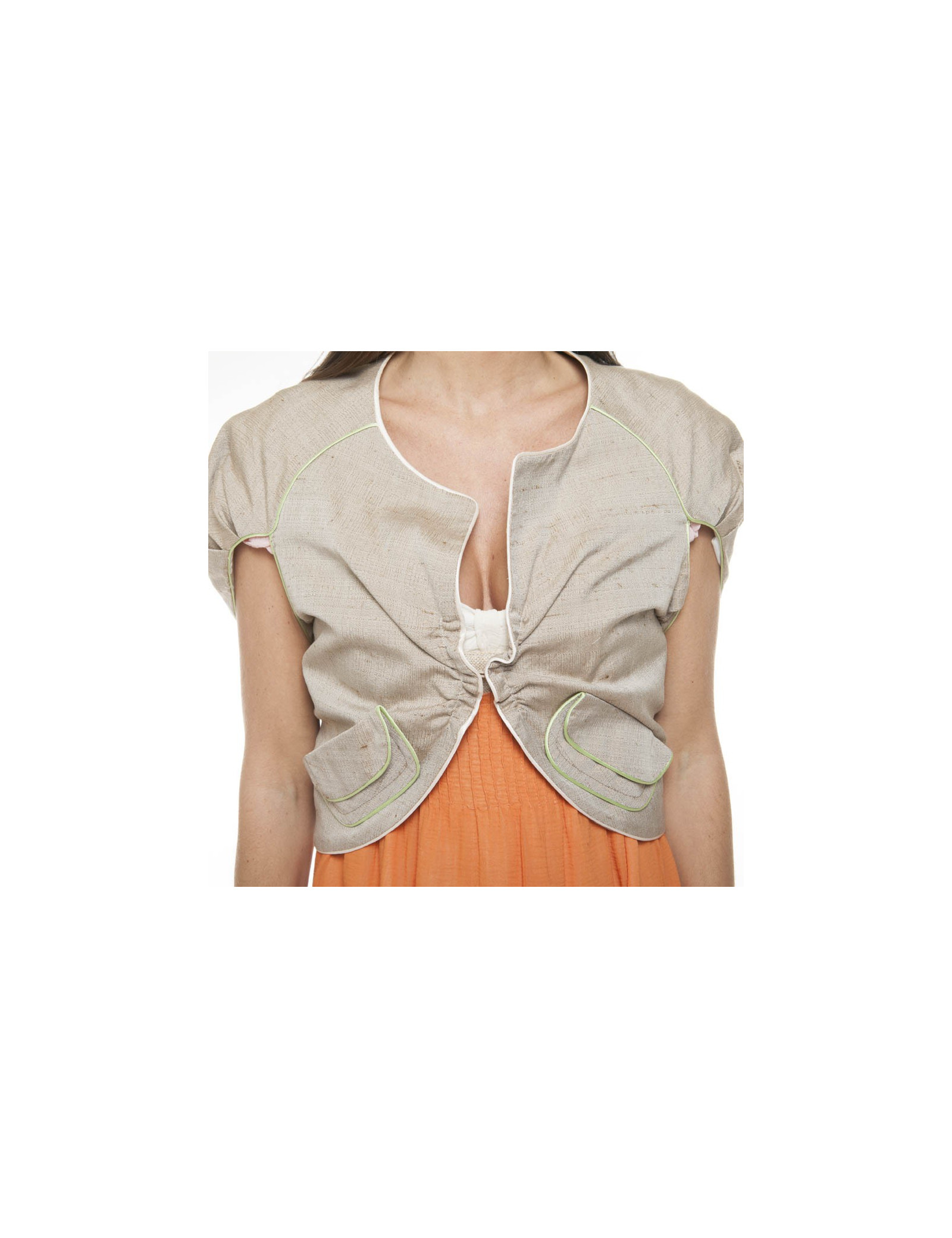 Ensemble Maurizio PECORARO, taille 36 (étiquette), robe avec doublure en coton et gilet court, en coton et soie (étiquette de matière).