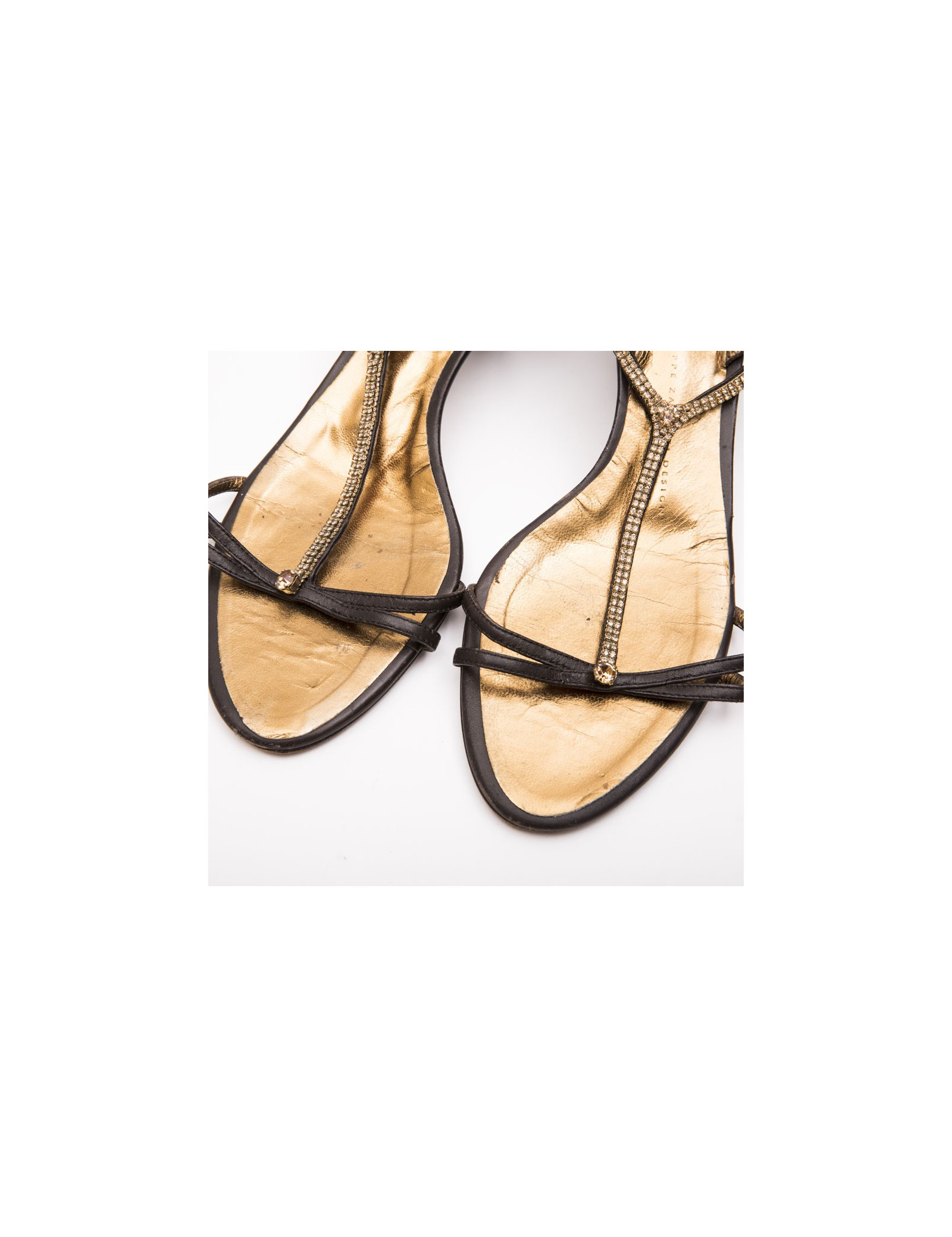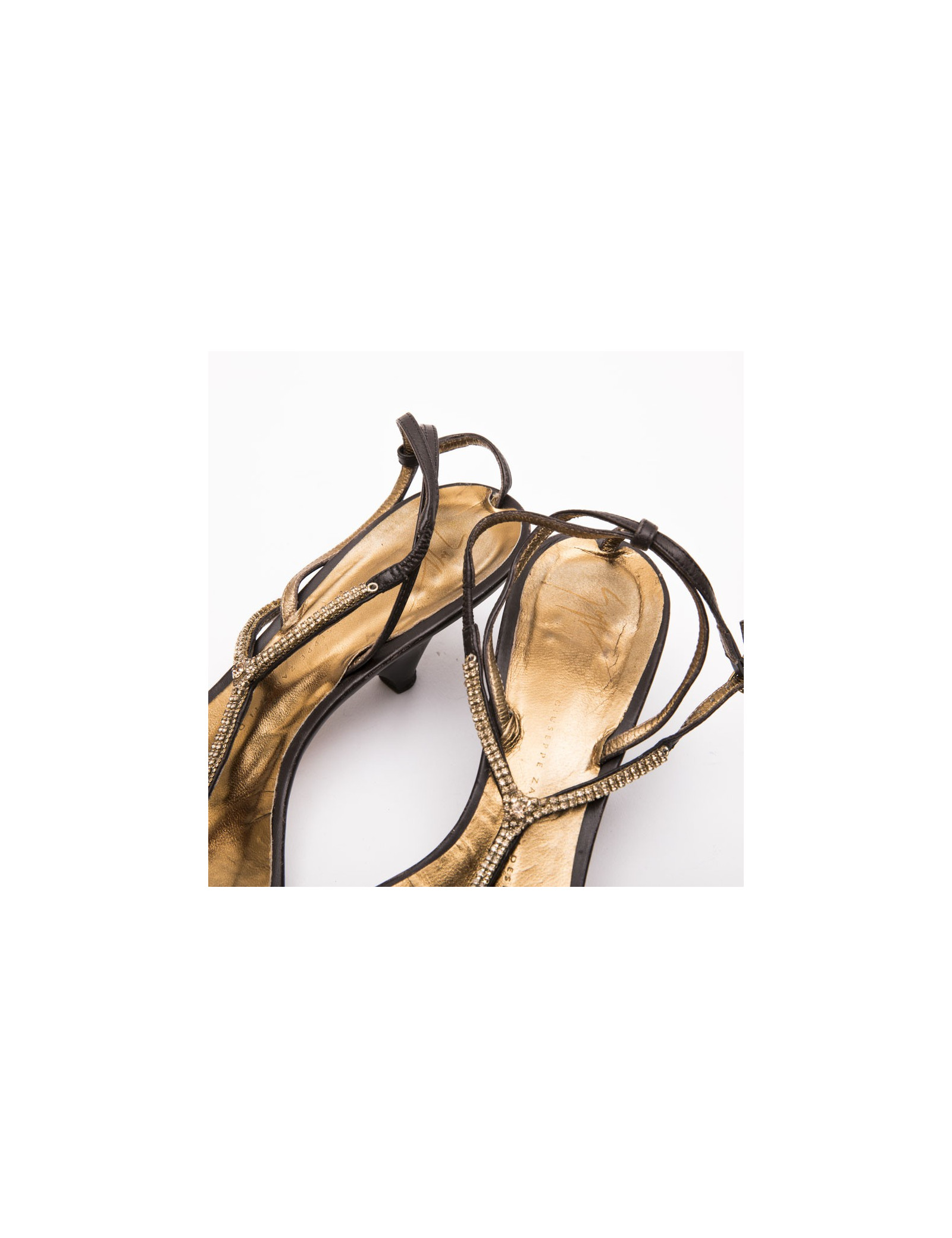 Sandales à talons T 39.5 GIUSEPPE ZANOTTI en cuir et strass dorés. Semelles extérieures en cuir véritable. Made in Italy
