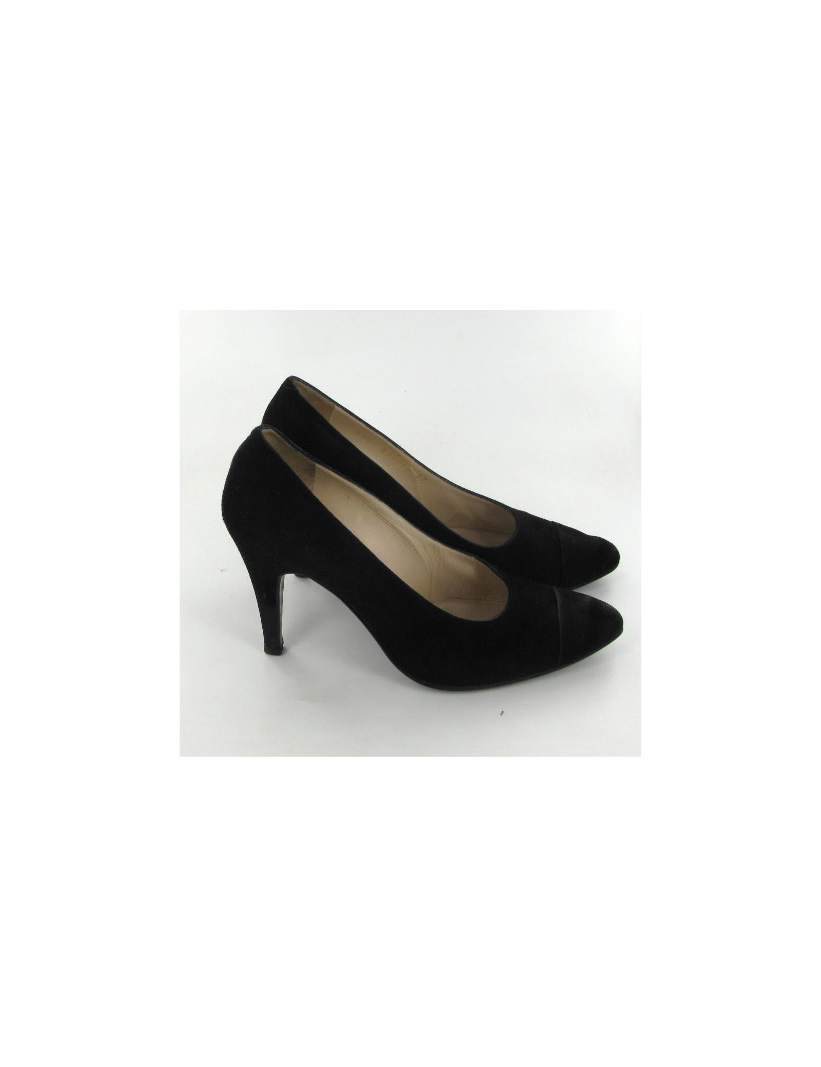 Escarpins CHANEL T 37 en daim noir. La semelle intérieure et extérieure est en cuir. état vintage.