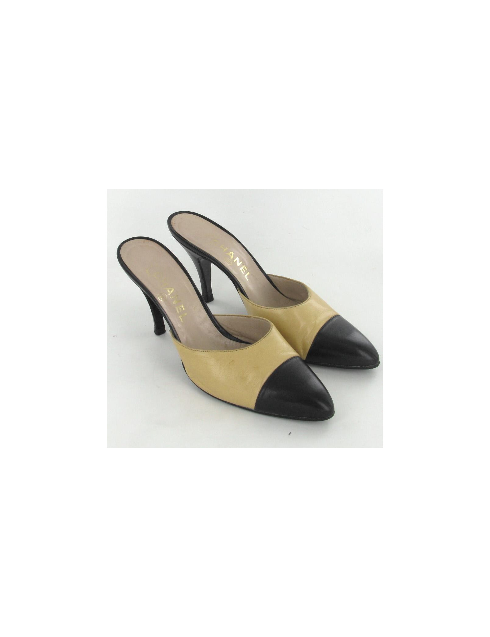 Mules T39.5 CHANEL cuir bicolore beige et noir