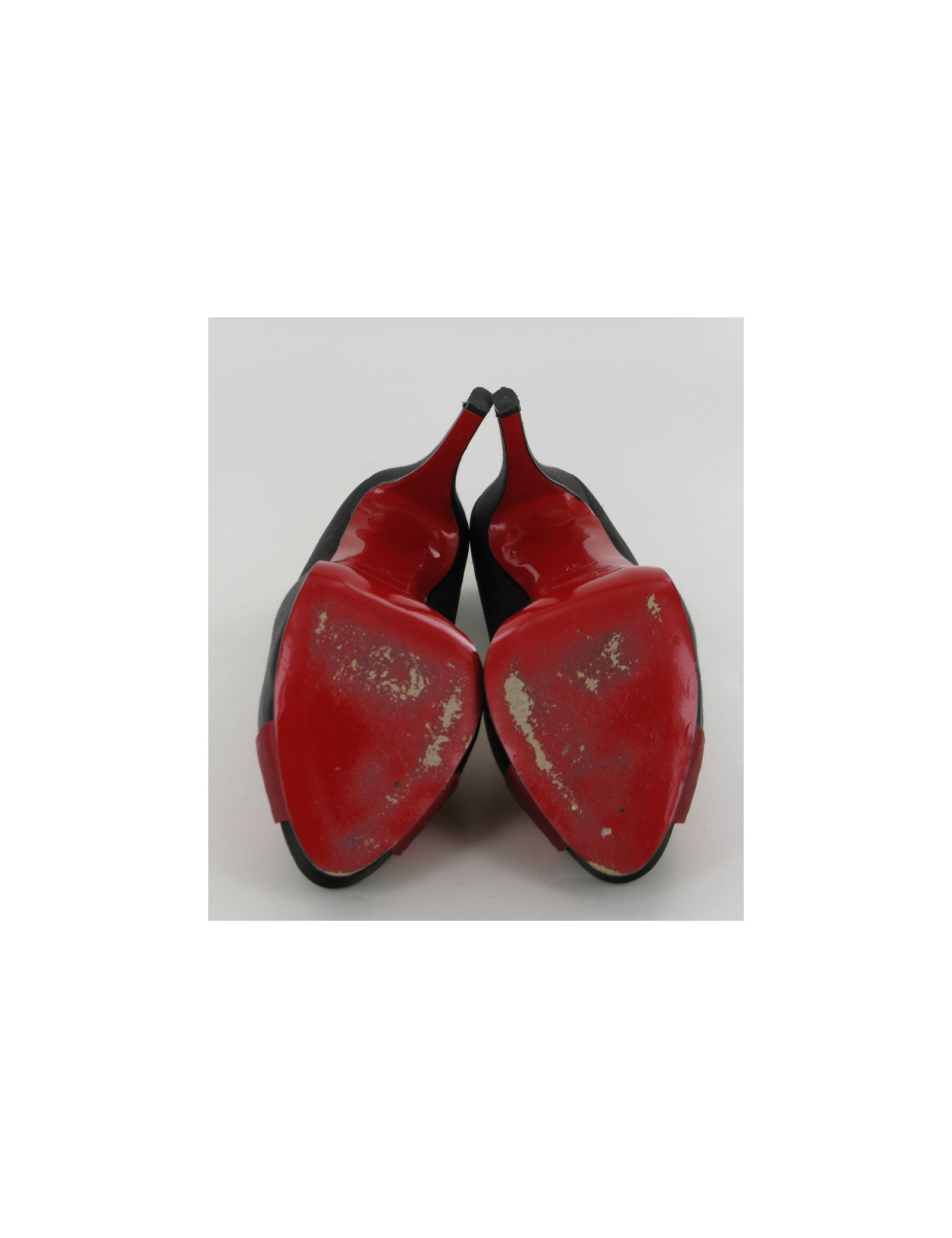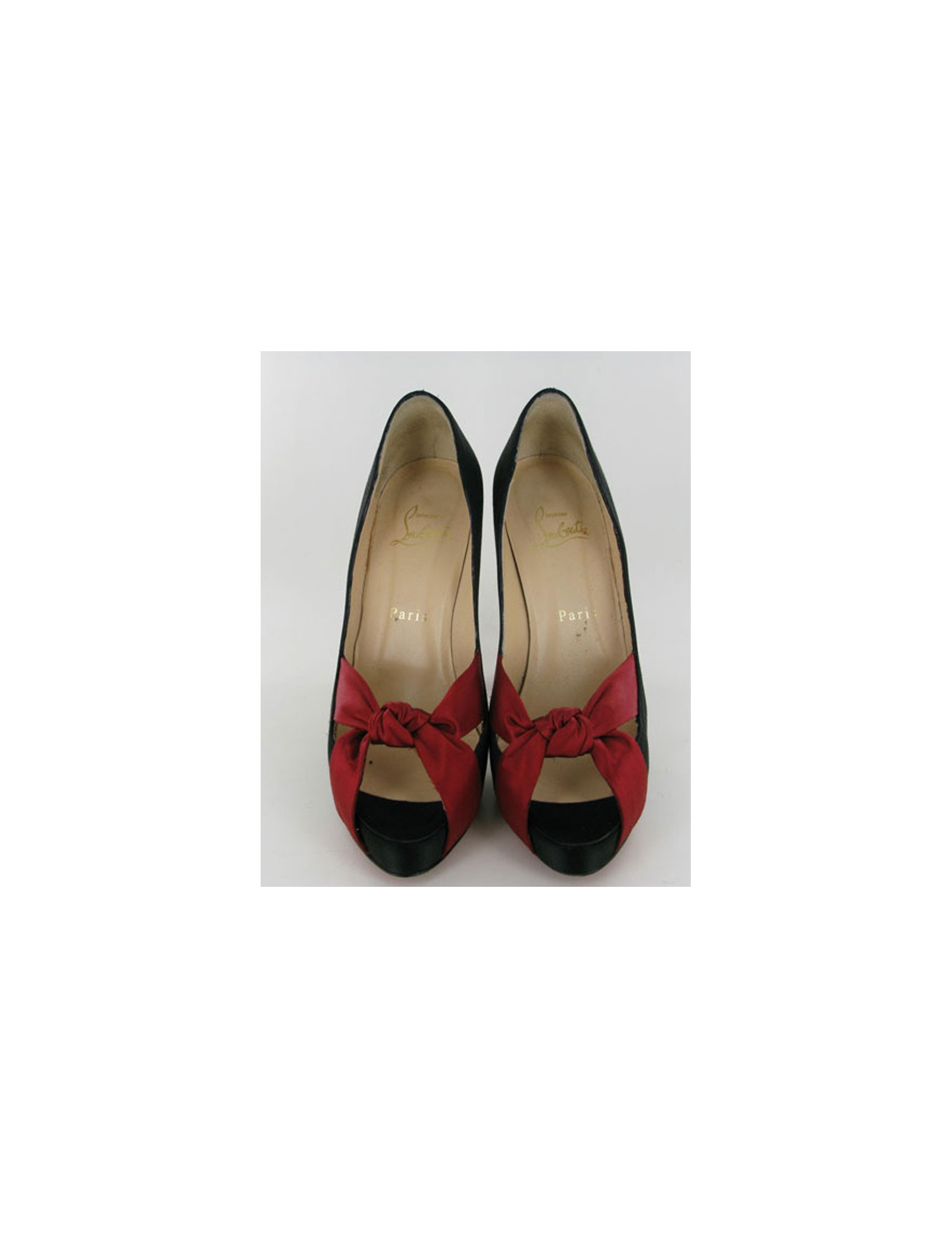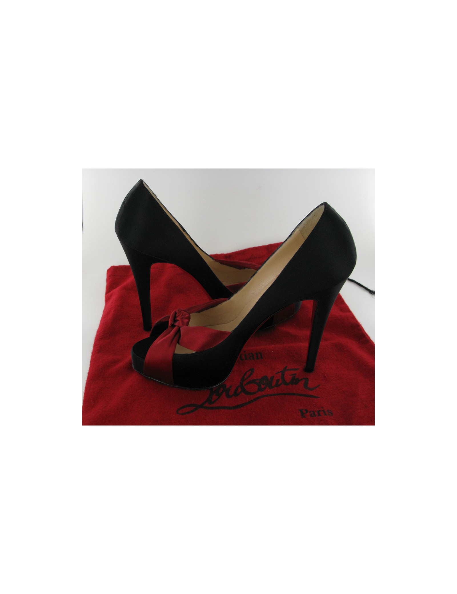 Escarpins LOUBOUTIN T37 satin noir et rouge