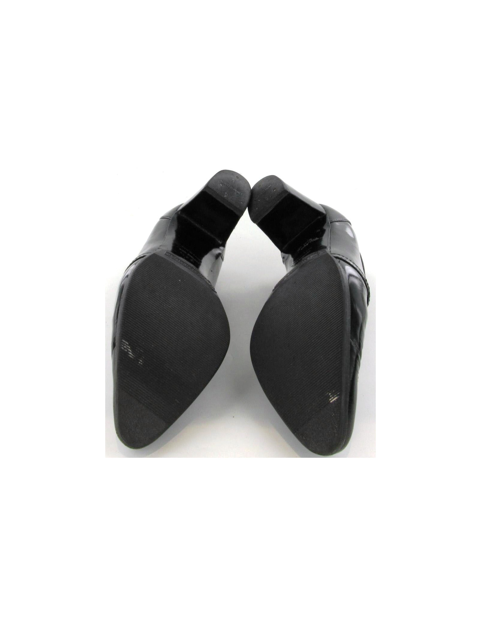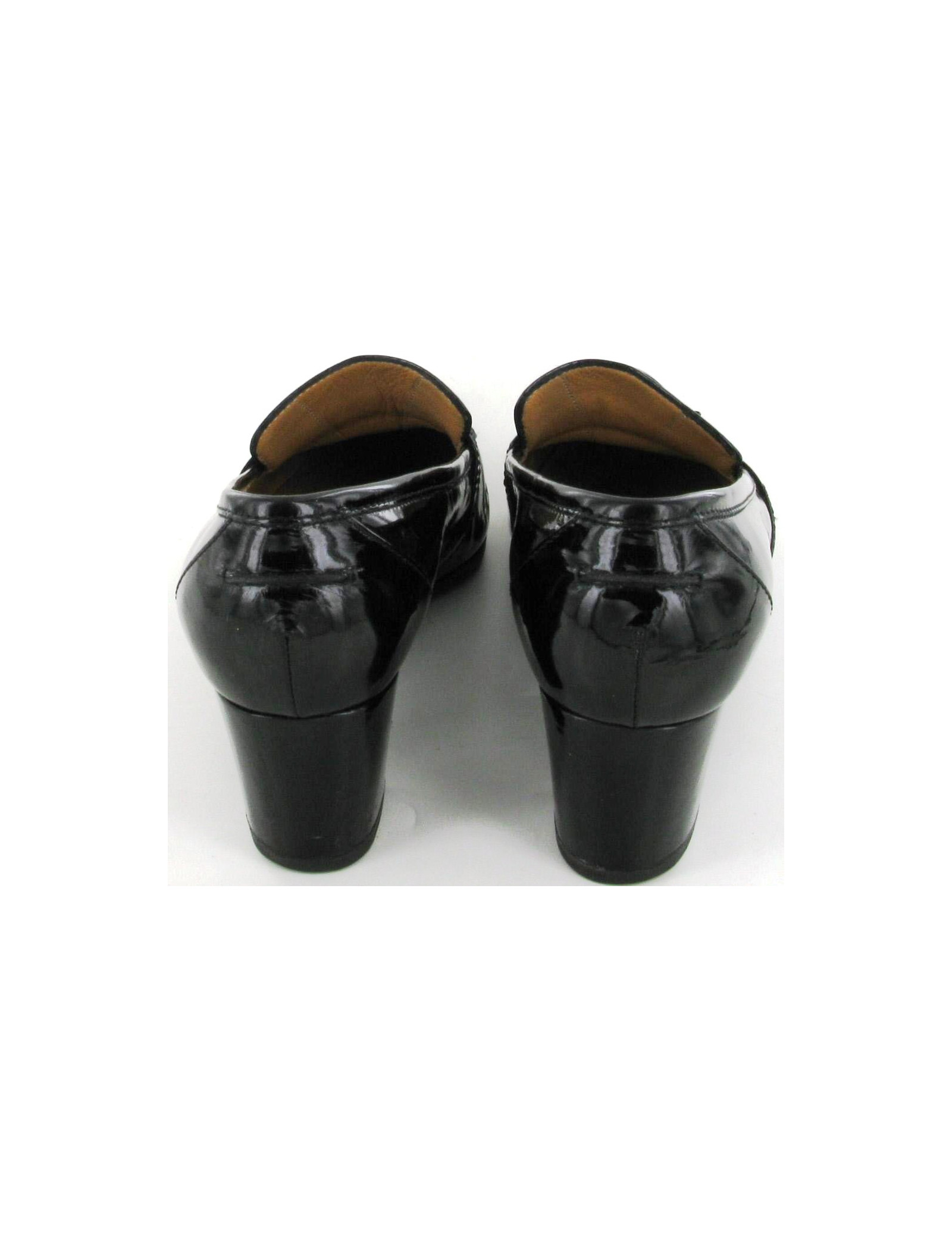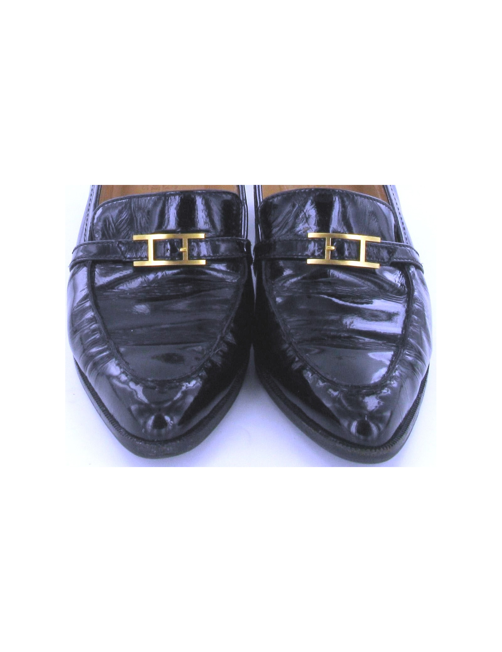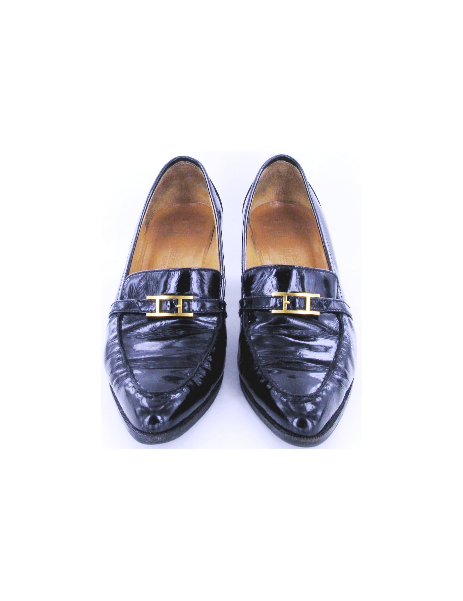 Escarpins HERMES en cuir de veau verni noir, boucle Hapi T 36.5.