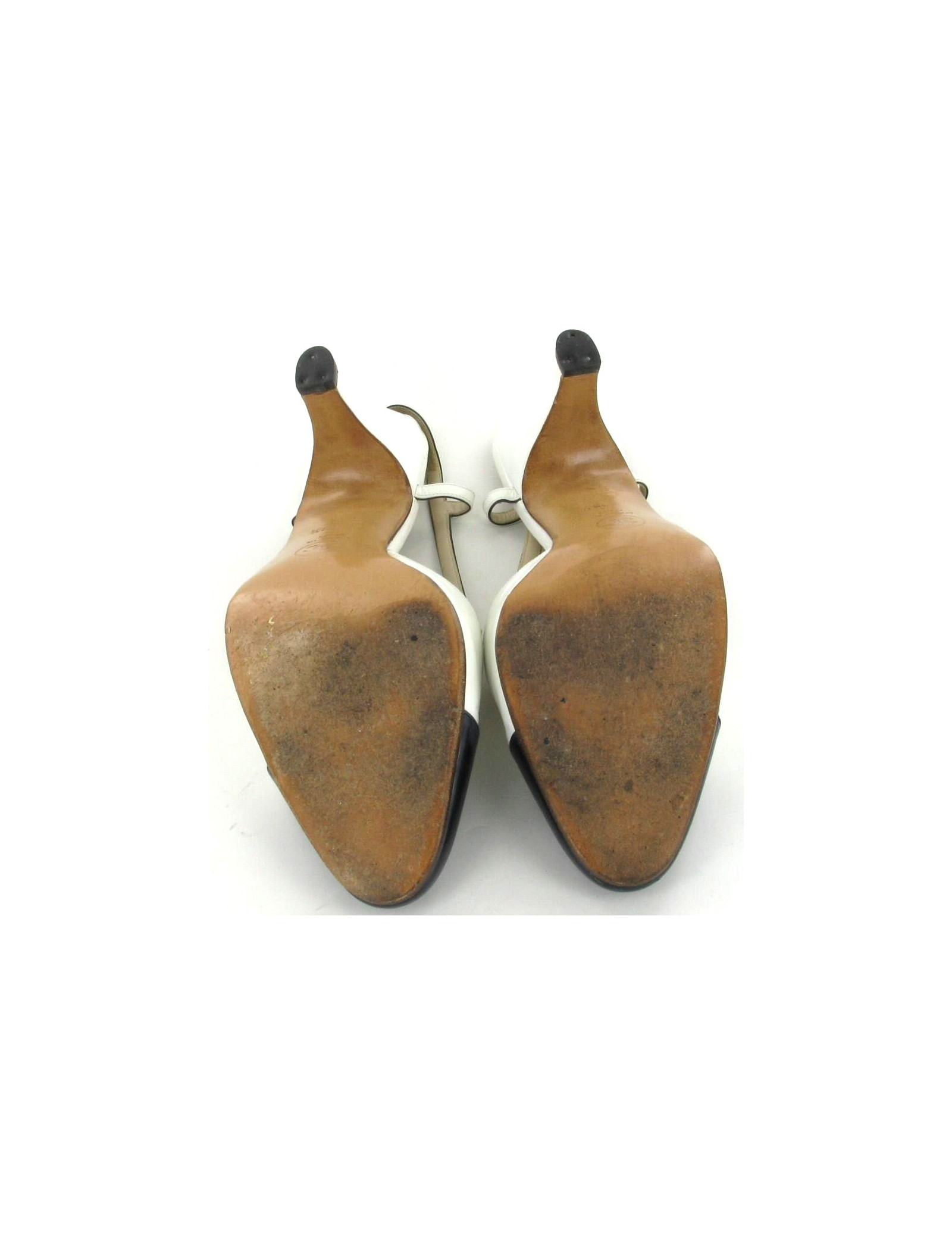 Escarpins CHANEL en cuir blanc et bleu marine T 38,5
