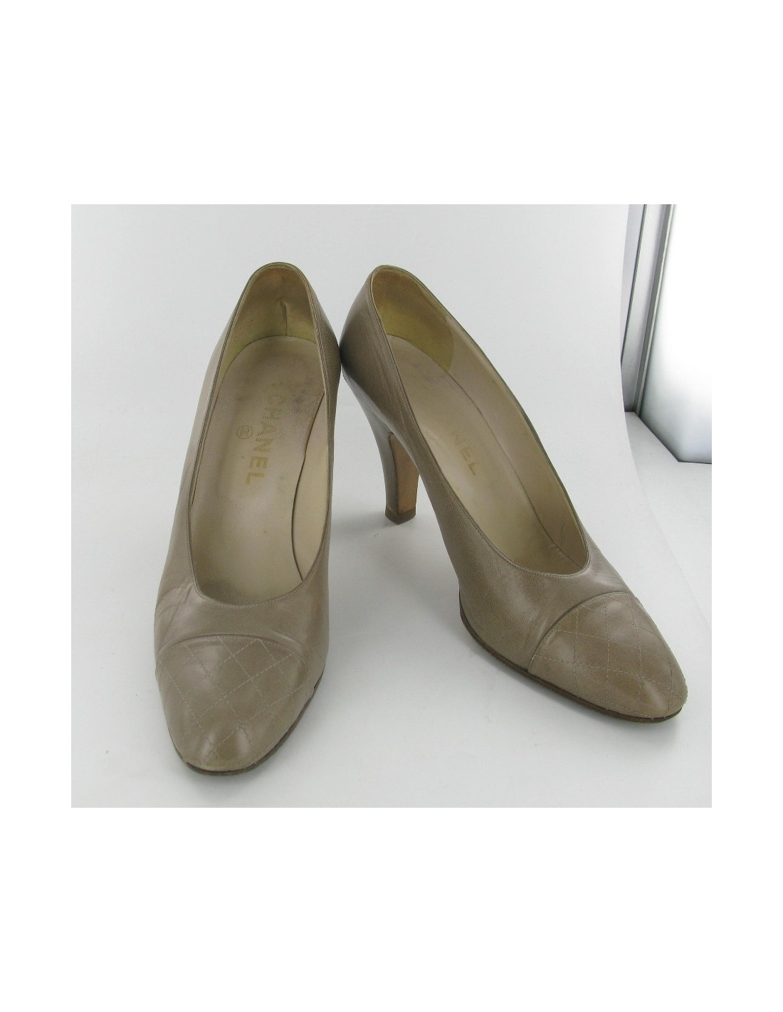 Magnifiques escarpins en cuir taupe T38 Chanel.