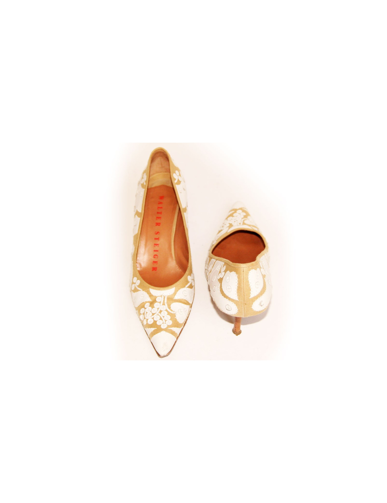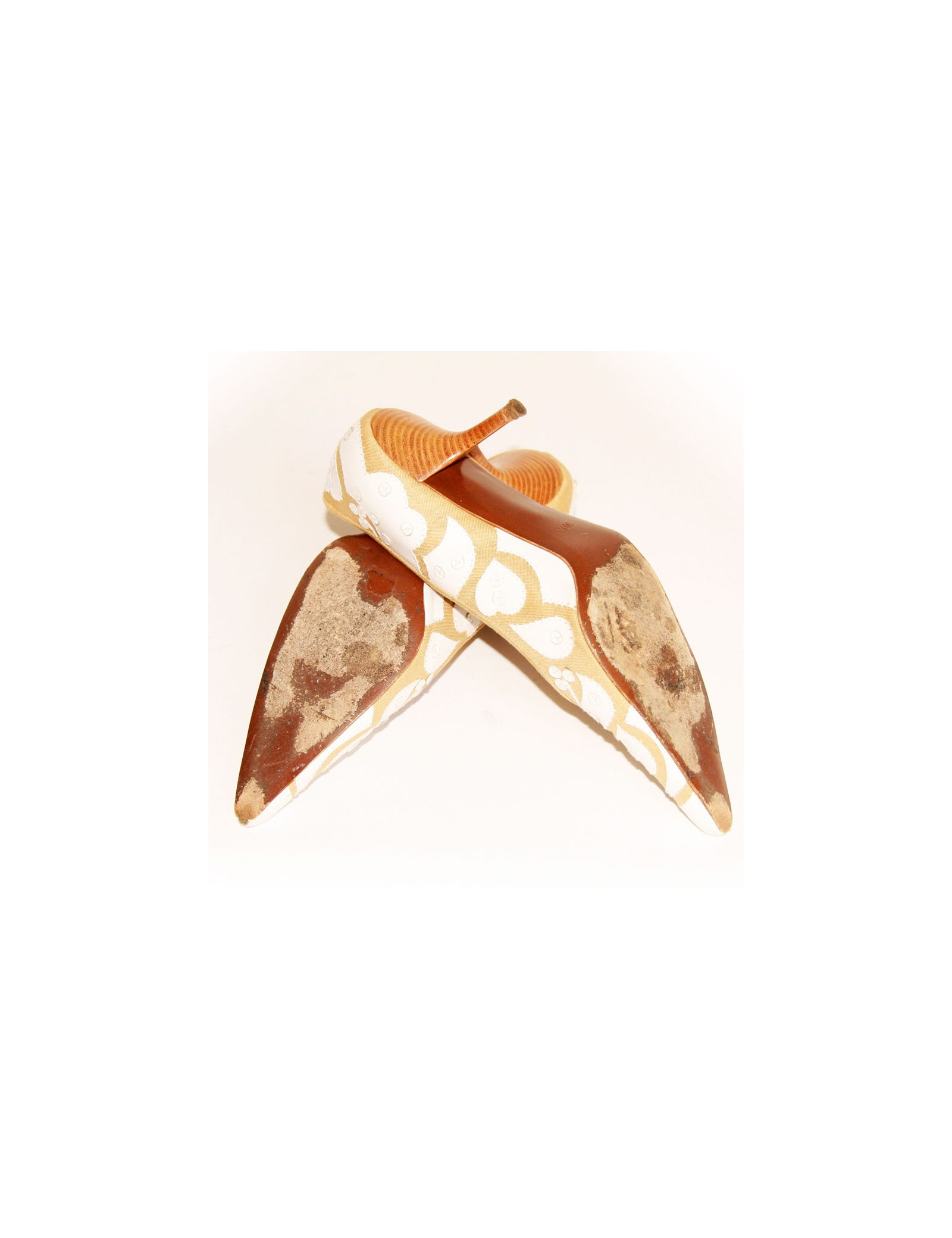 Escarpins WALTER STEIGER cuir et raphia marron et blanche