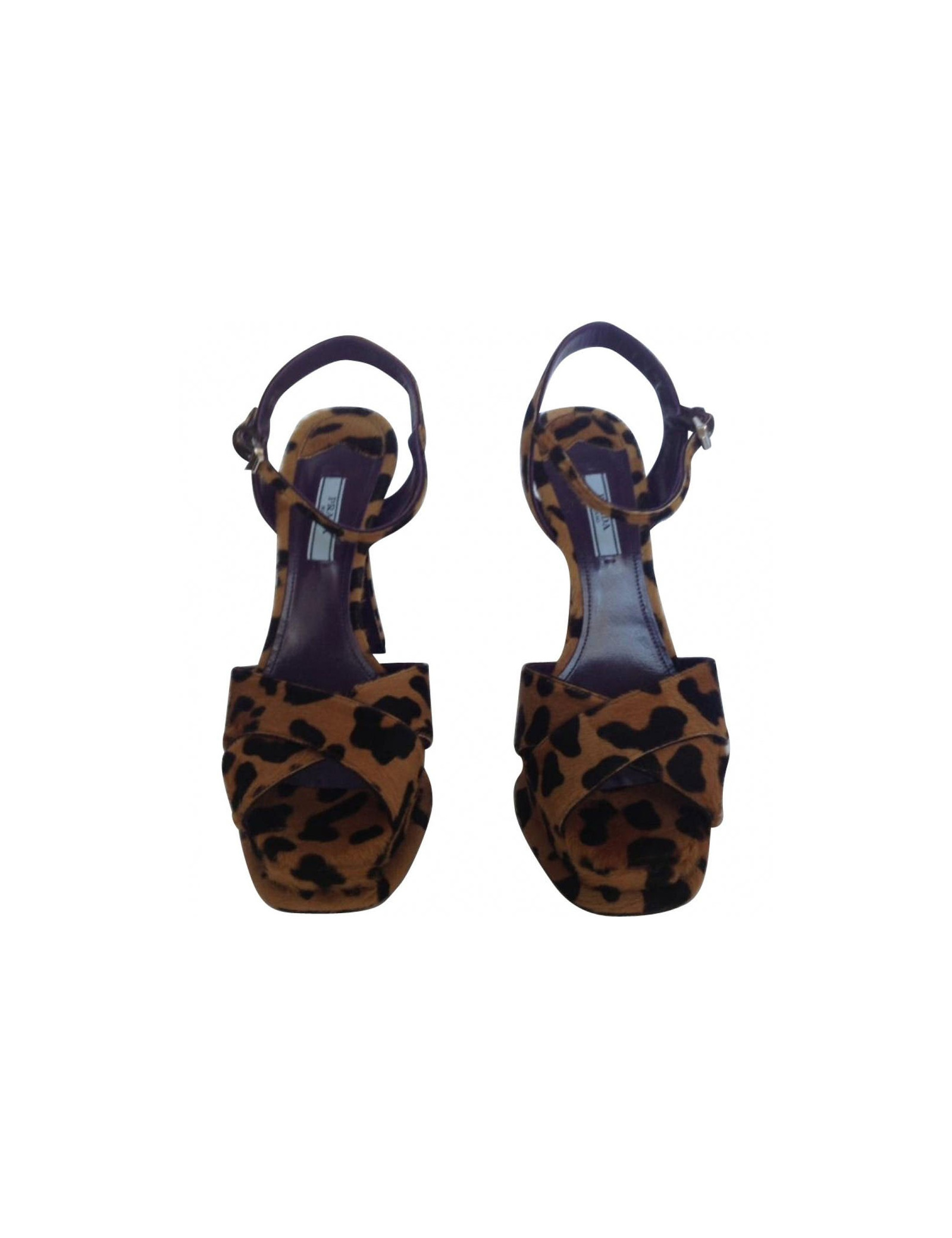 Très tendance ! Sandales hautes en poulain motif léopard Prada T 39,5.