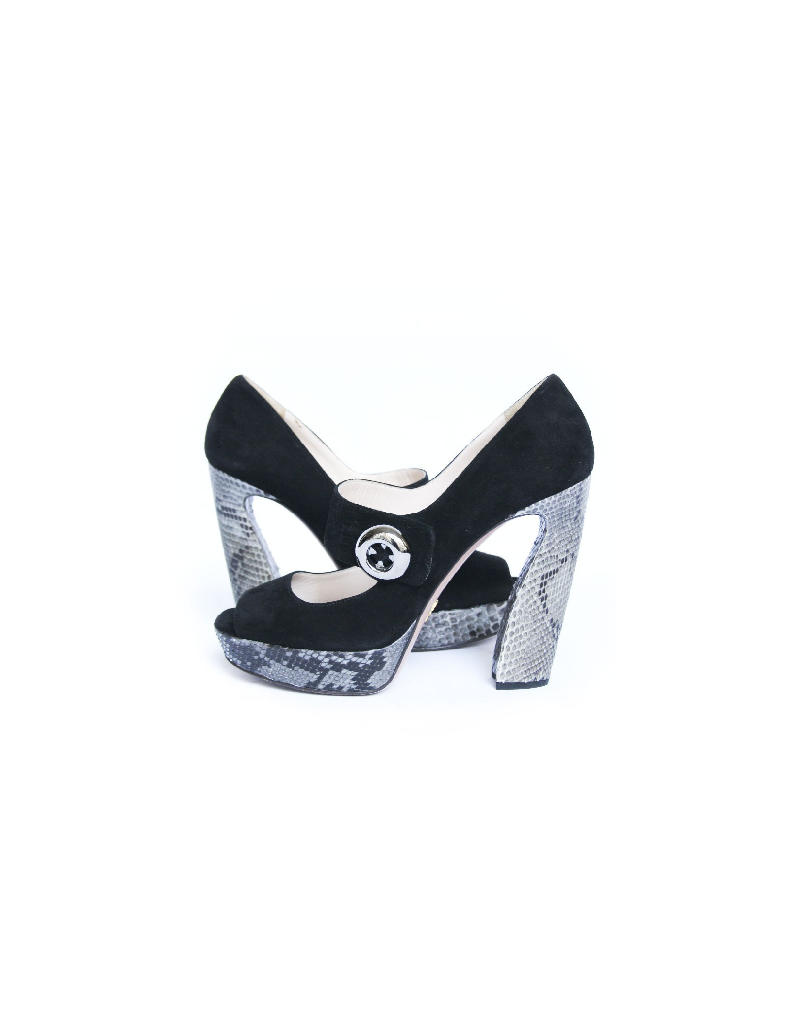 Escarpins PRADA veau velours noir et python gris T40