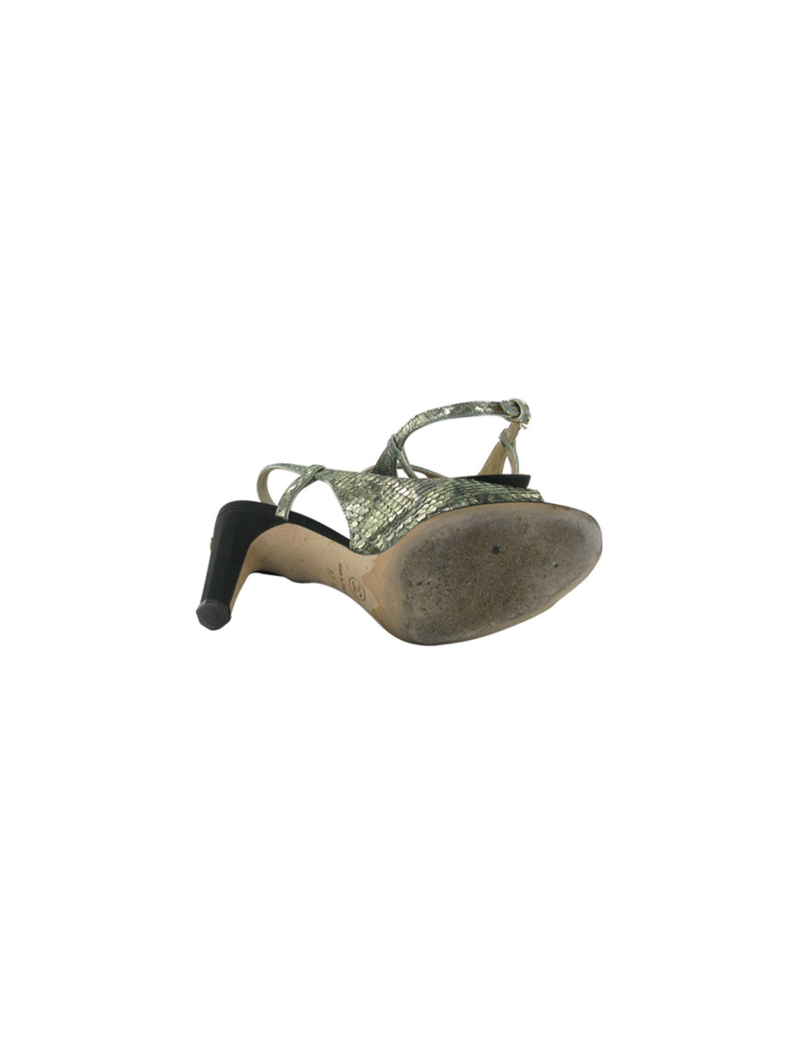 Sandales T 37 CHANEL en tissus facon python vert doré