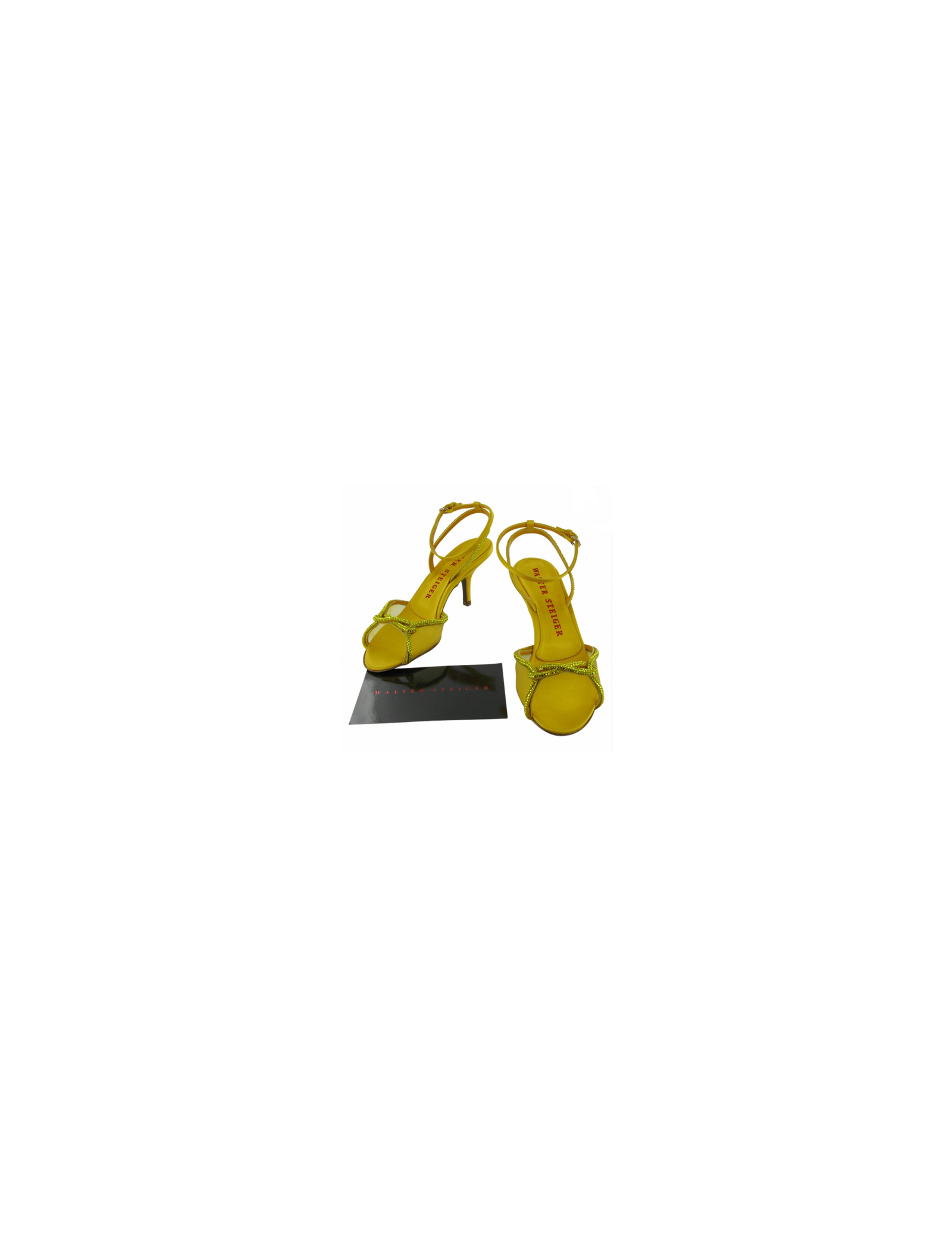 Sandales hautes Walter Steiger T36 satin jaune & strass émeraude