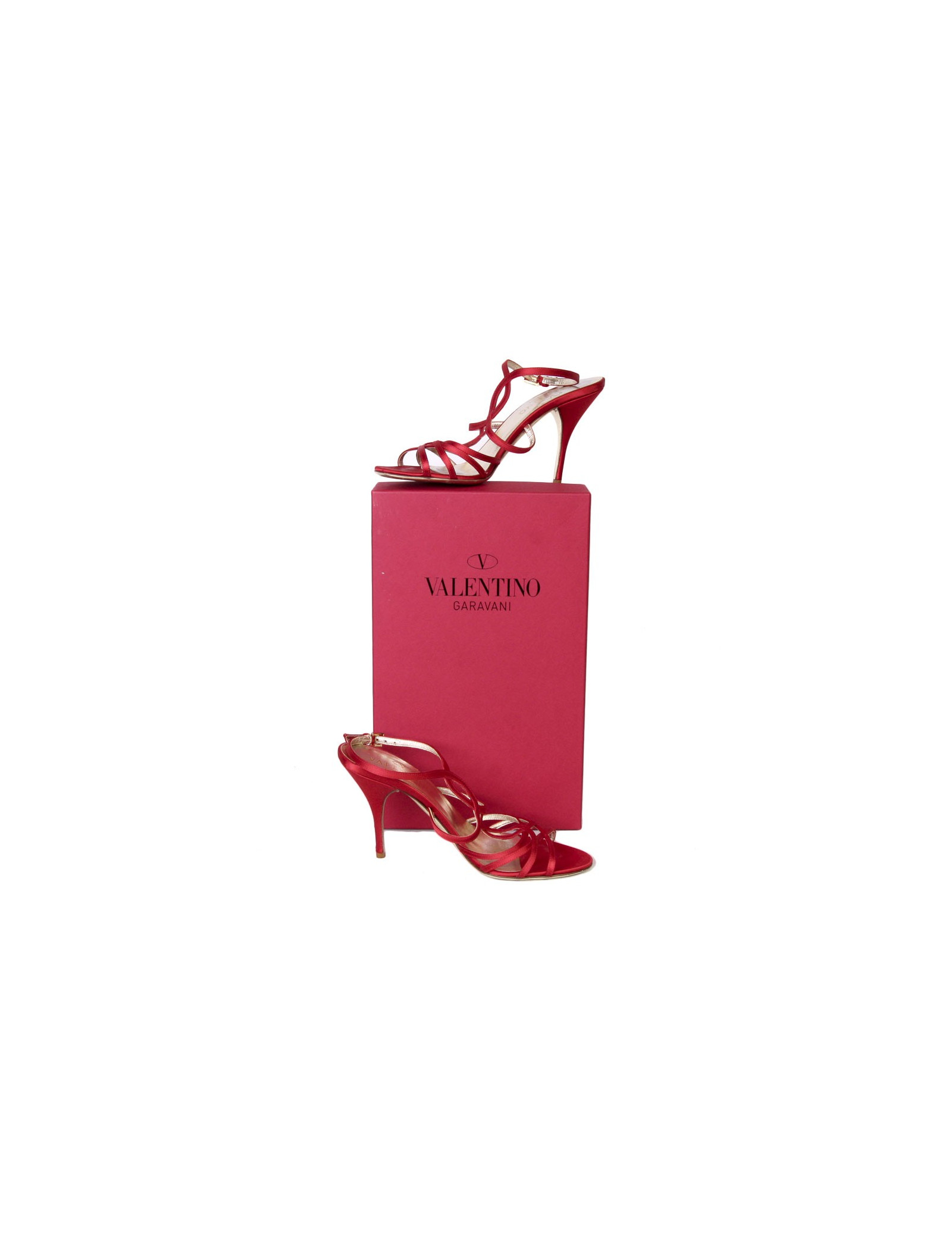 Très élégante paire d'escarpins Valentino en satin de soie de couleur rouge. Taille 37,5. Idéale pour une soirée. Elle saura habillée toutes vos plus jolies robes. En excellent état.