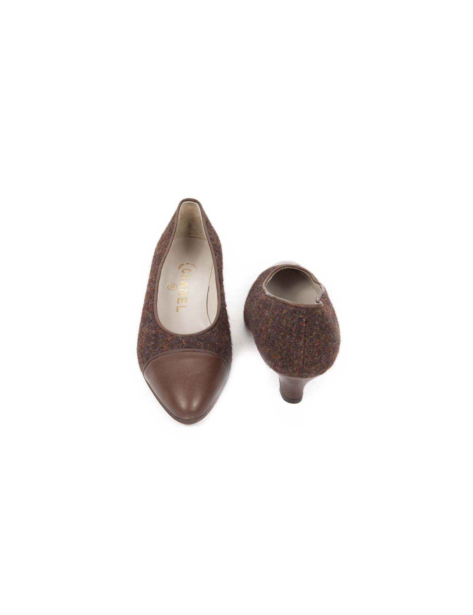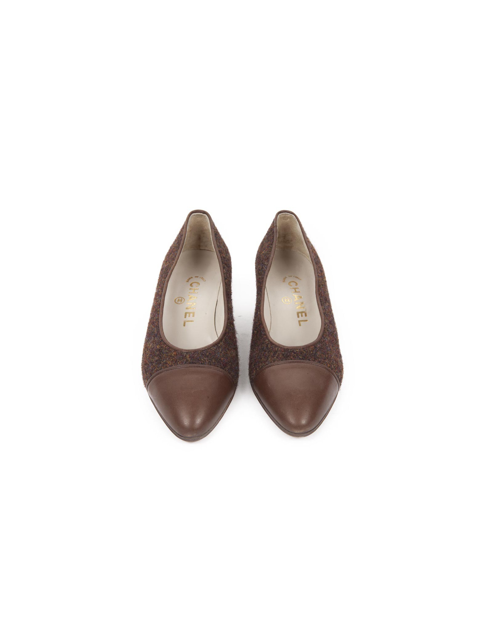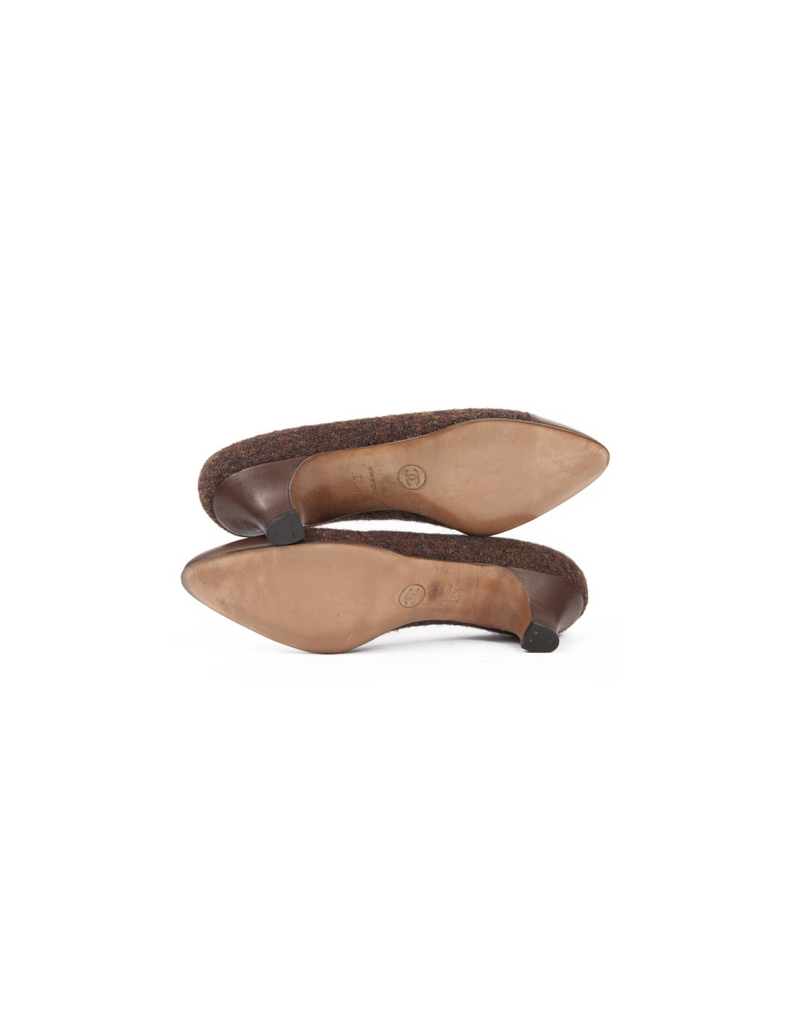 Vendu ESCARPINS-COMPENSÉS Escarpins CHANEL T39 veau velours noir et bout argenté CHANEL 20836 580,00 € Jolis escarpins Chanel, taille 39, en veau velours noir et pointe en cuir argenté. Etat neuf. dimensions : hauteur du talon 9.5 cm, longueur de la semelle intérieure 25 cm. livrés dans leur dustbag Chanel Voir