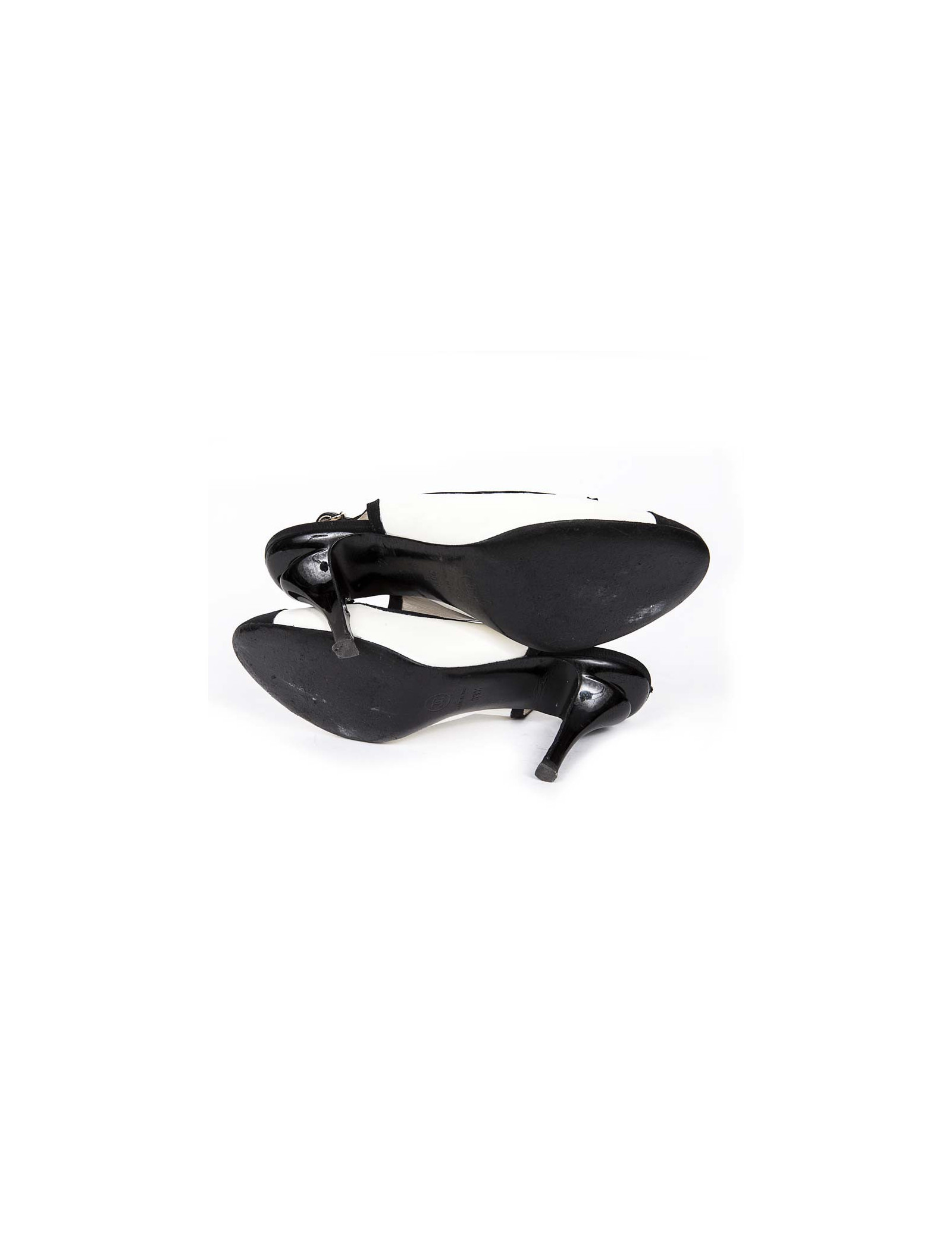 Sandales hautes CHANEL T39,5 cuir bicolore noir et blanc