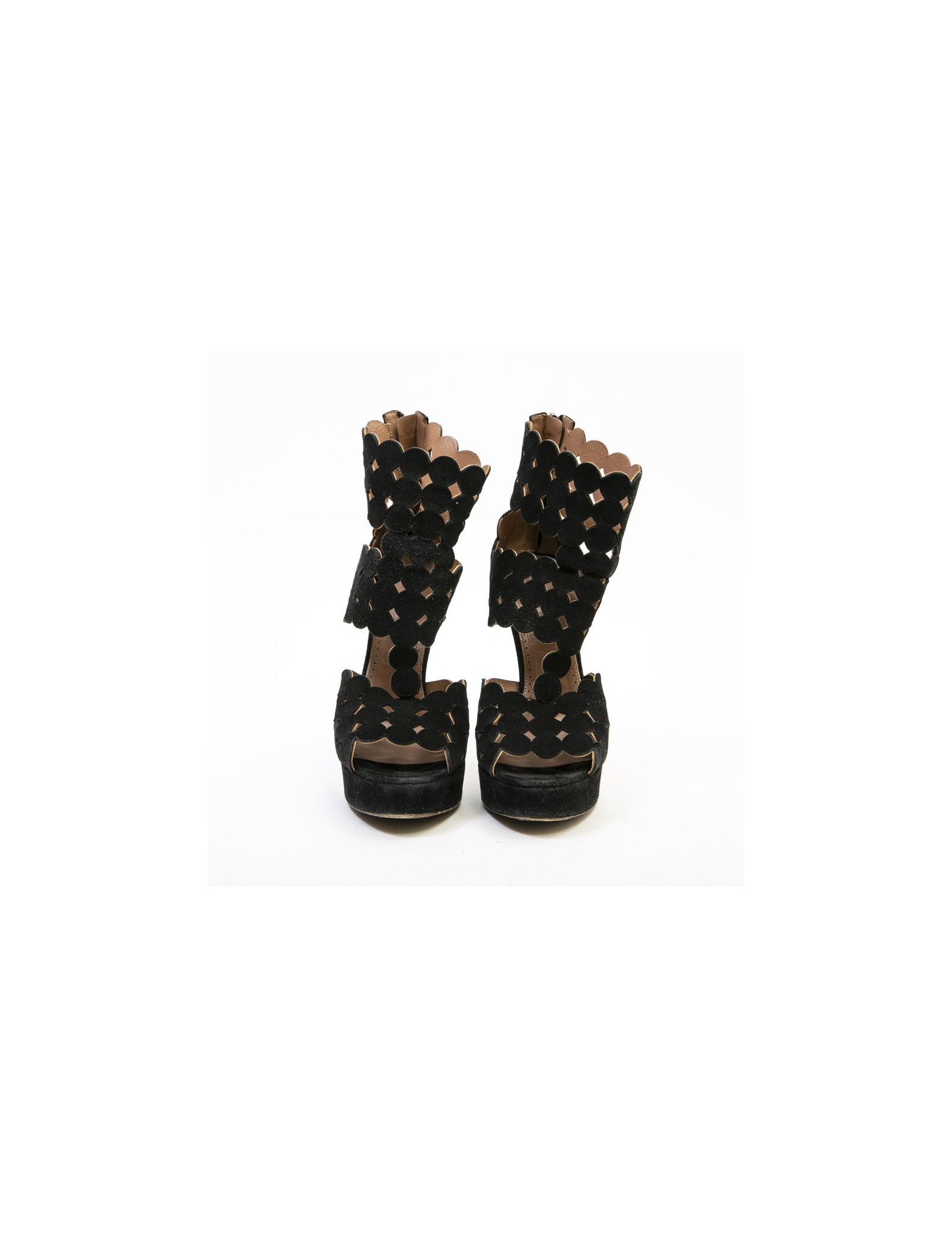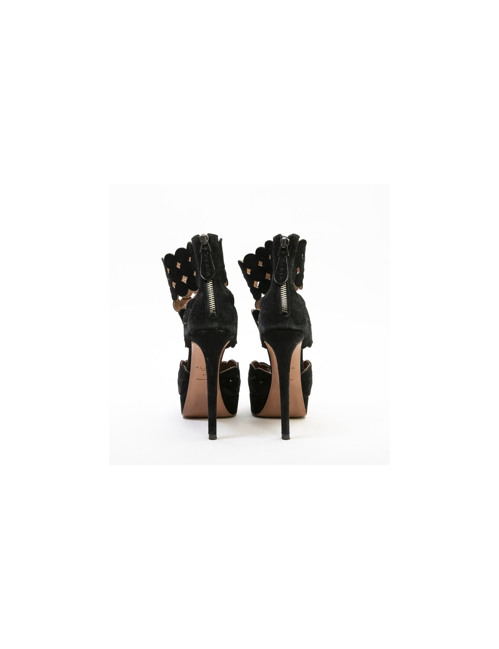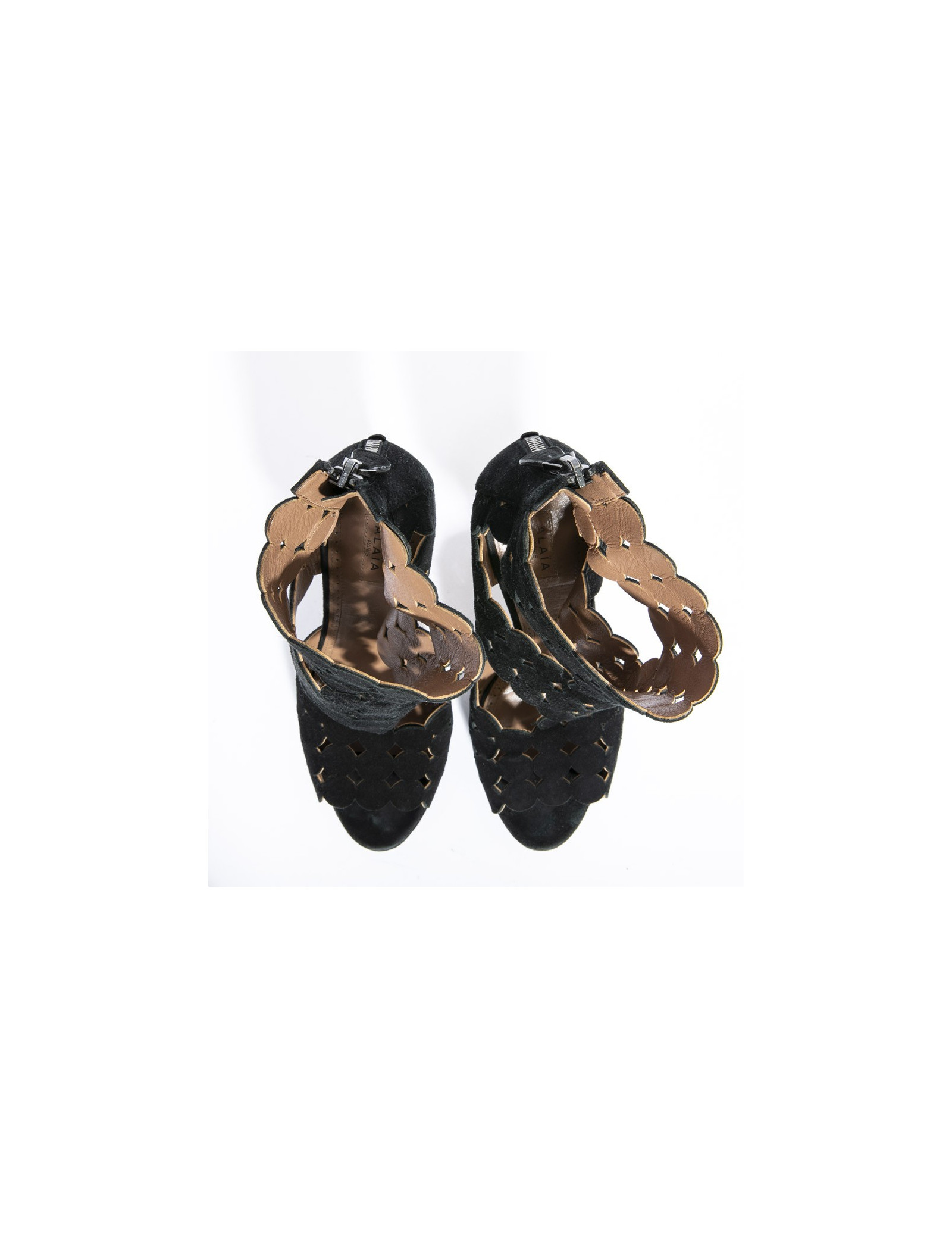 Sandales à talons Azzedine ALAIA en daim noir ajouré, taille 37
