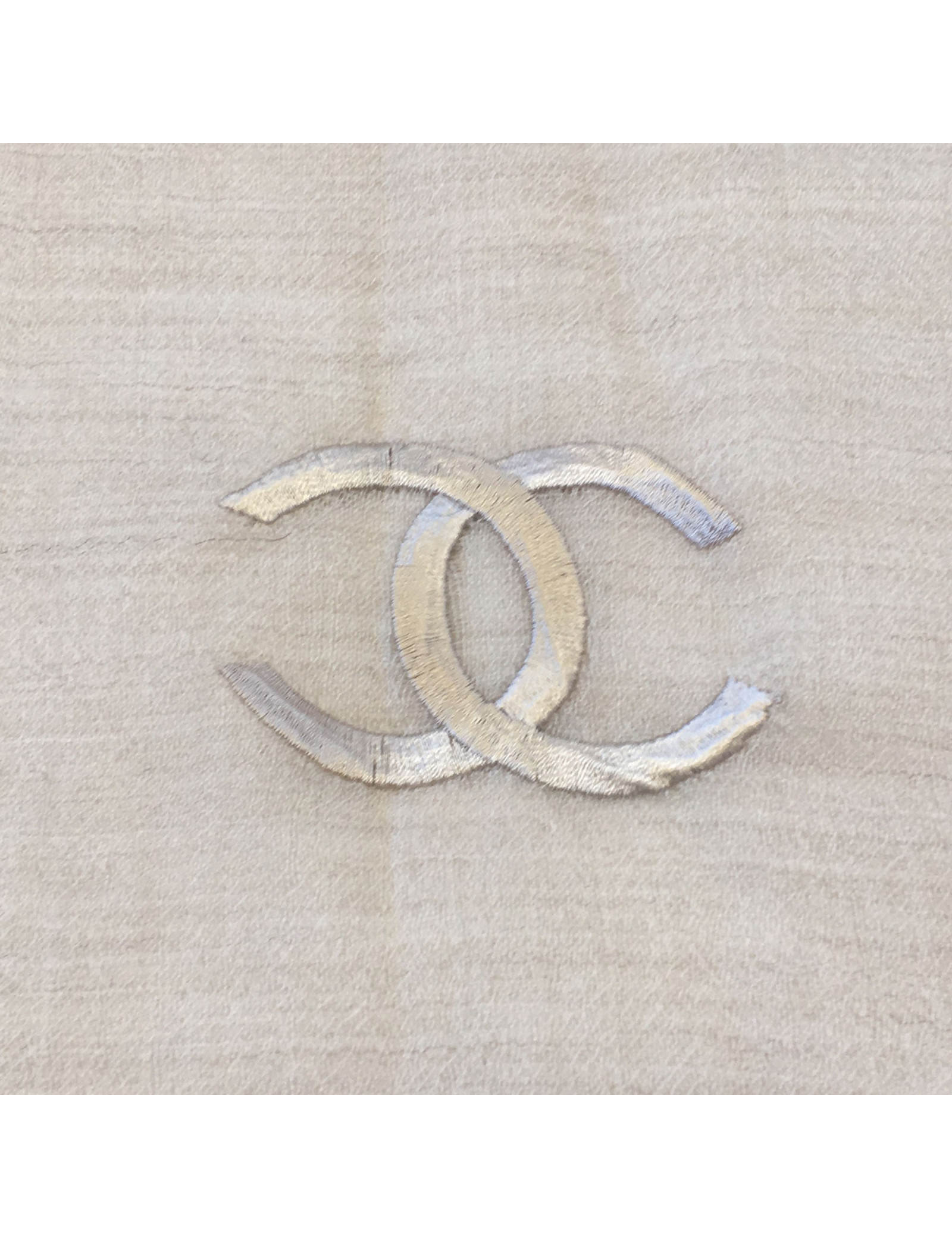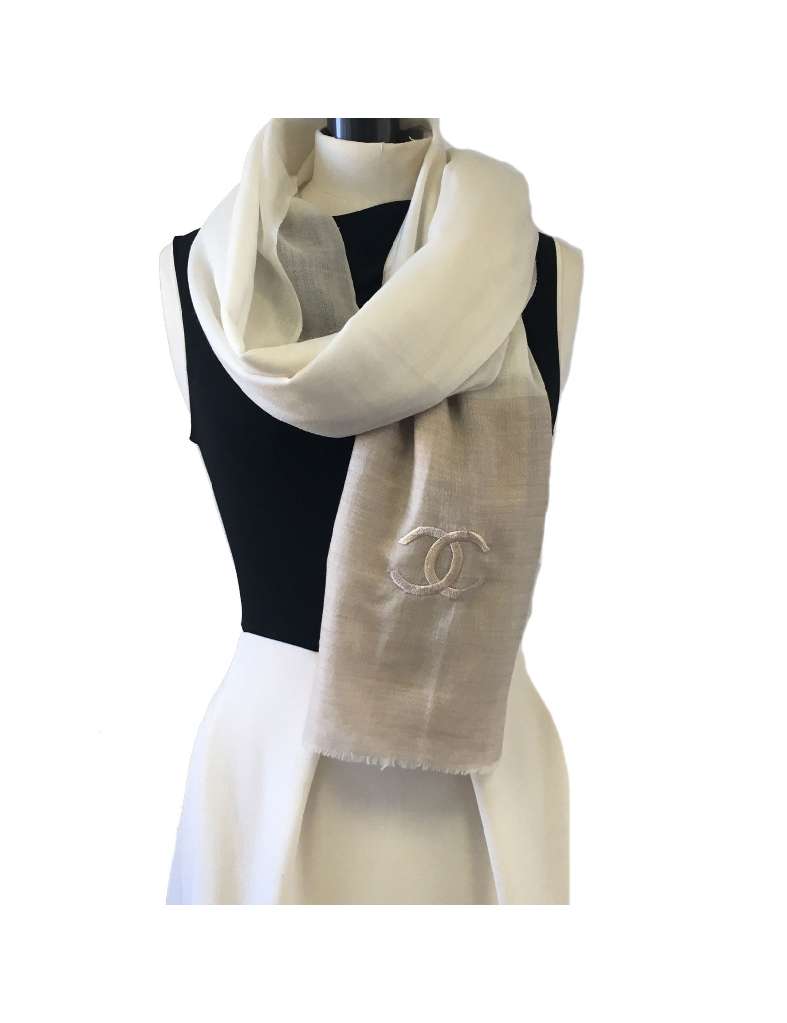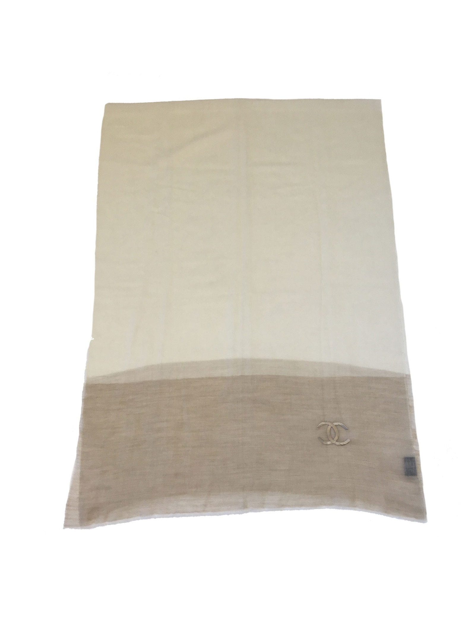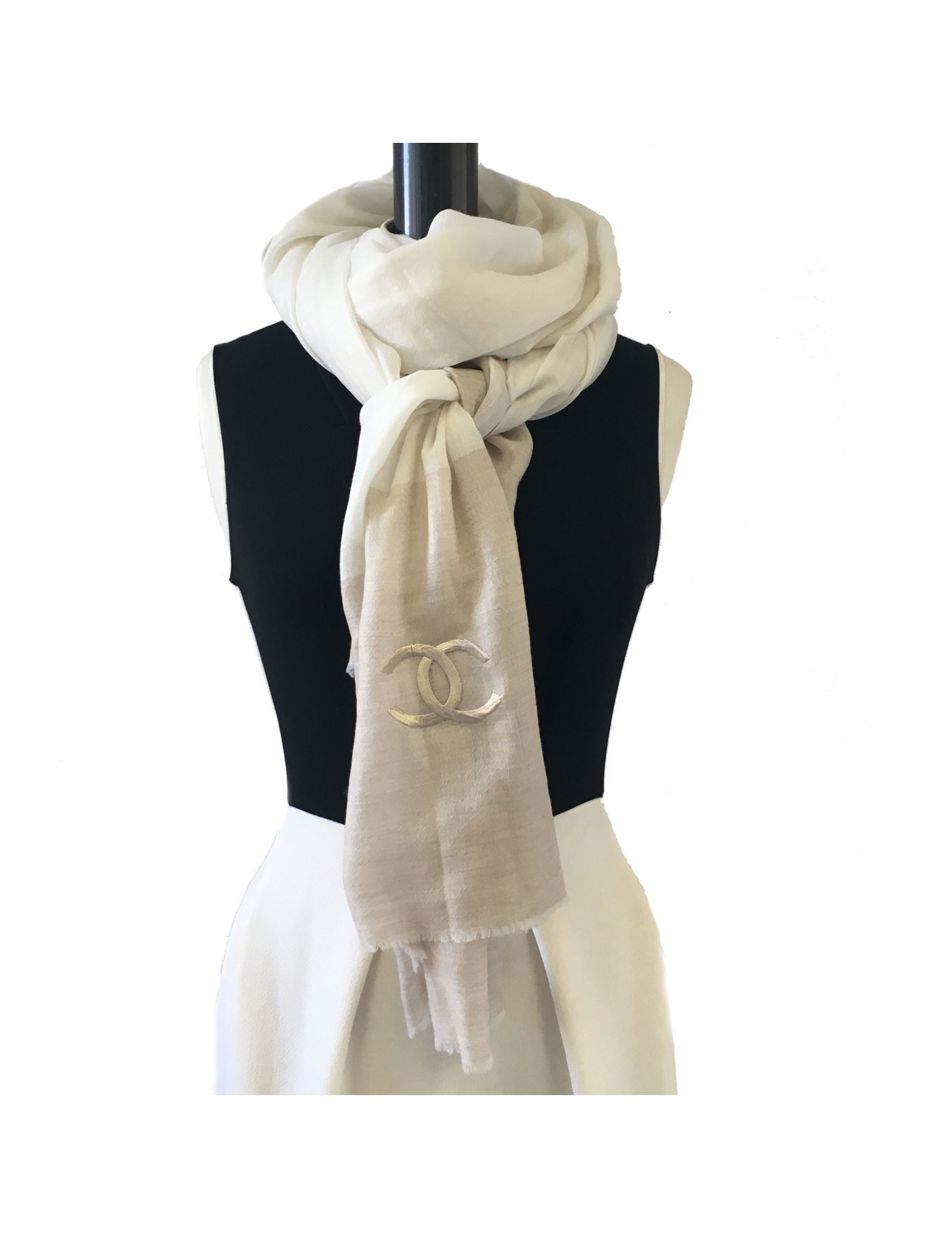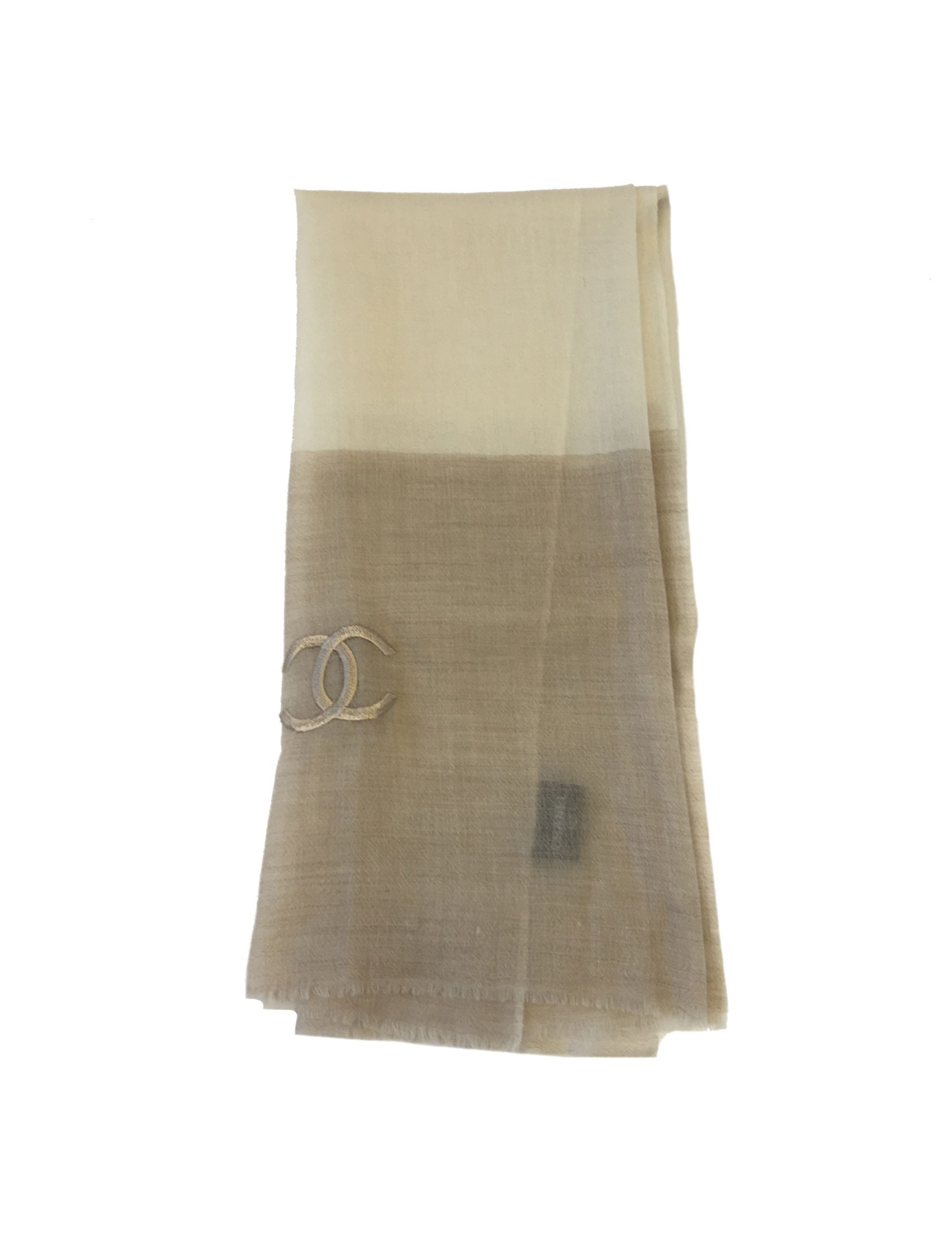 Châle CHANEL en cachemire écru et beige foncé