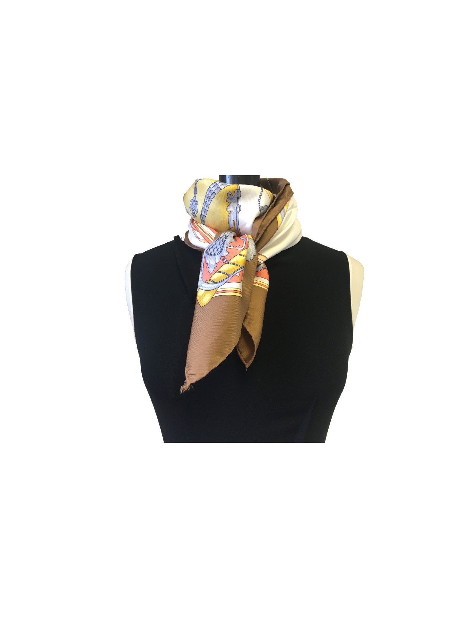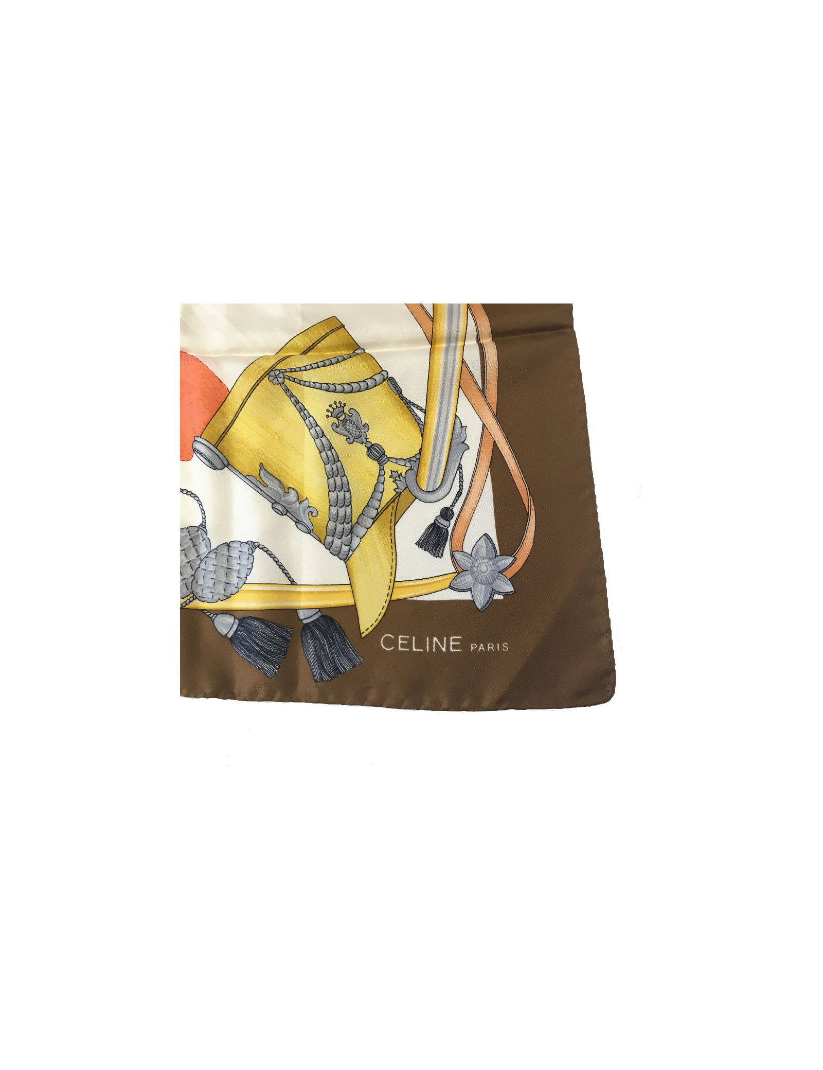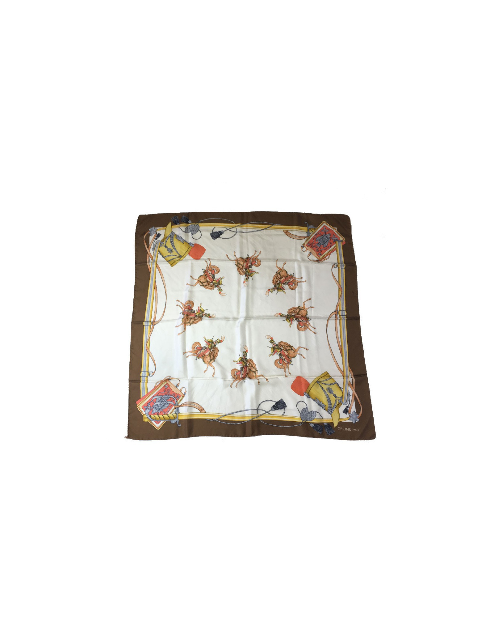 Carré CELINE en soie marron et blanche