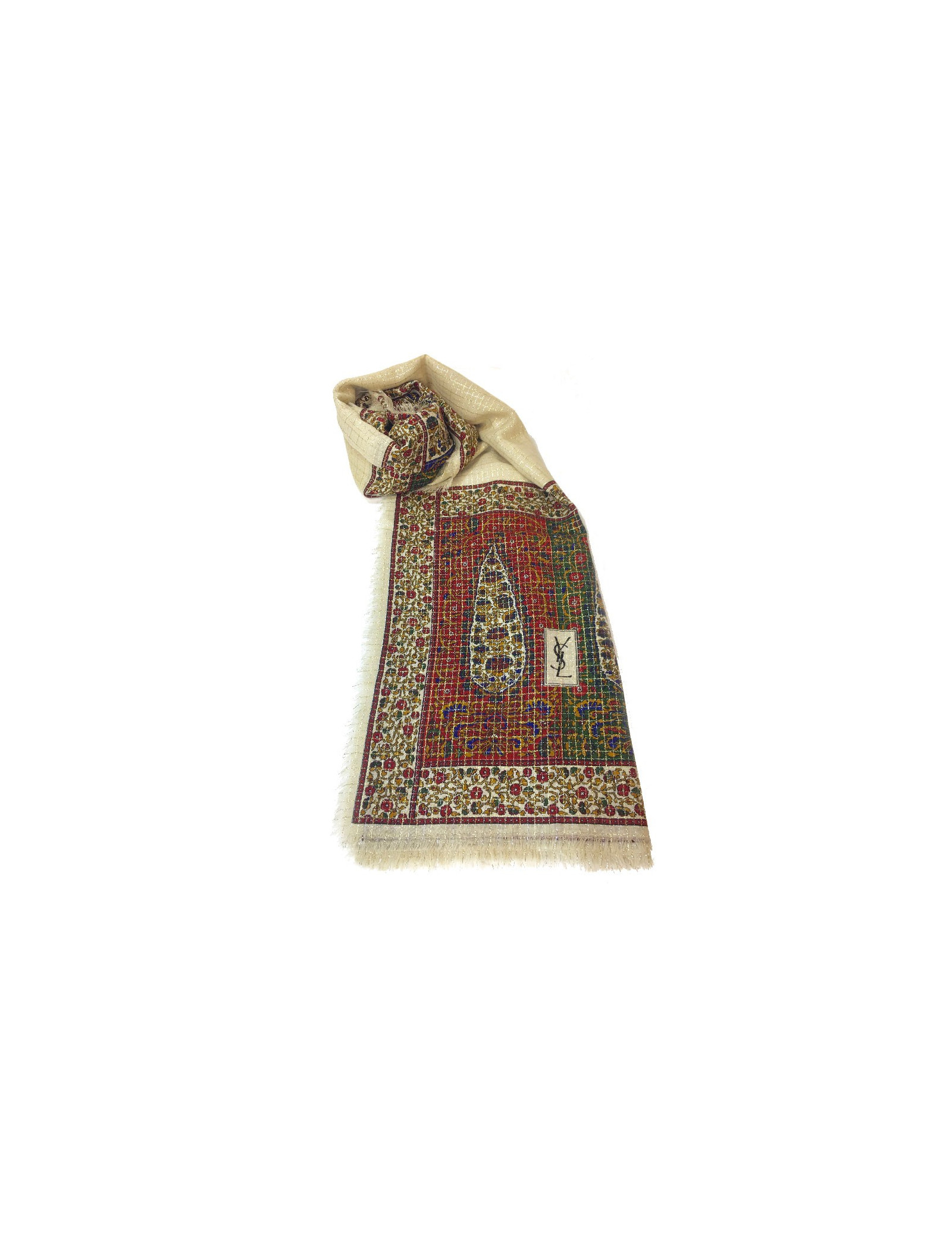 Châle Yves Saint Laurent vintage multicolore avec fils argentés et dorés