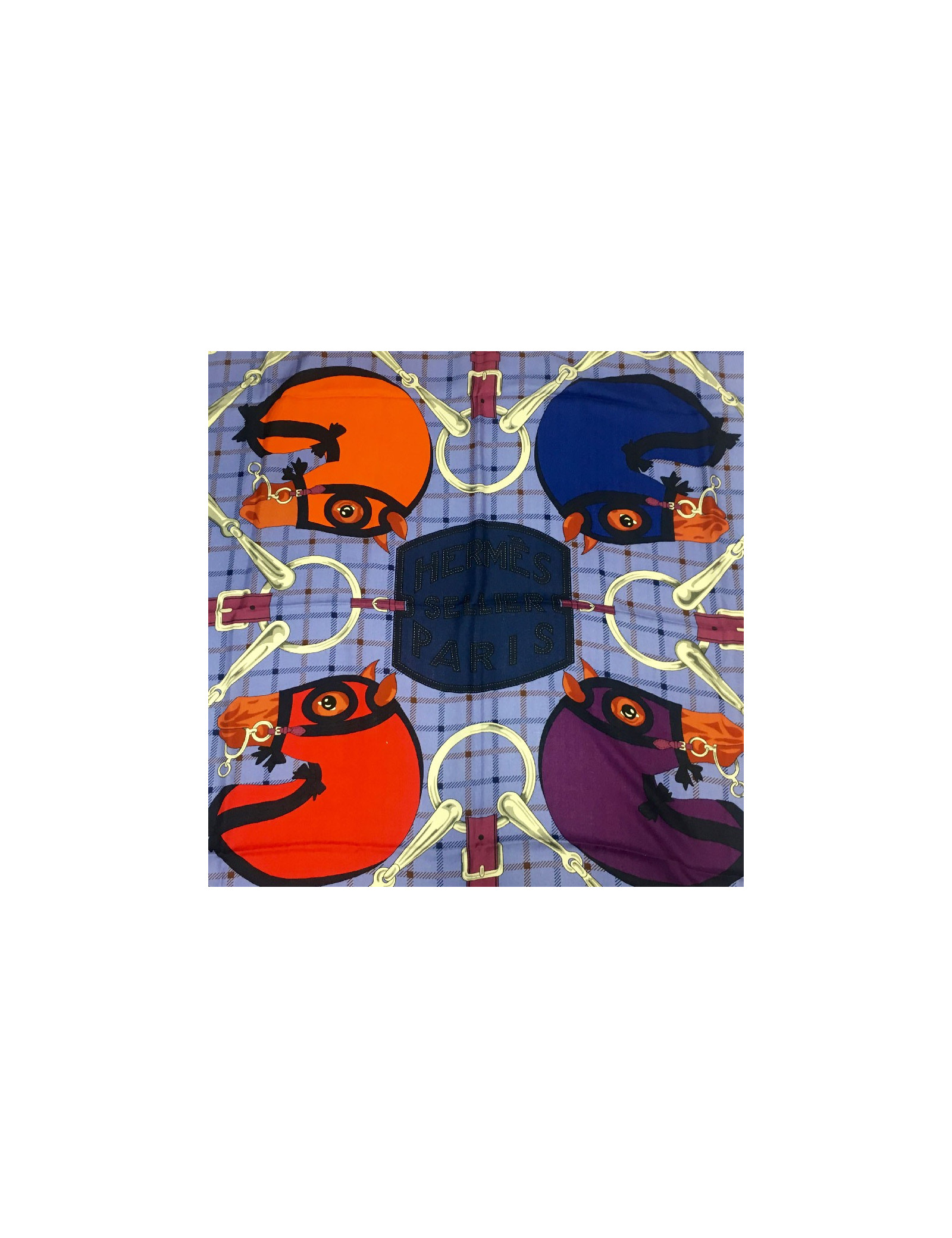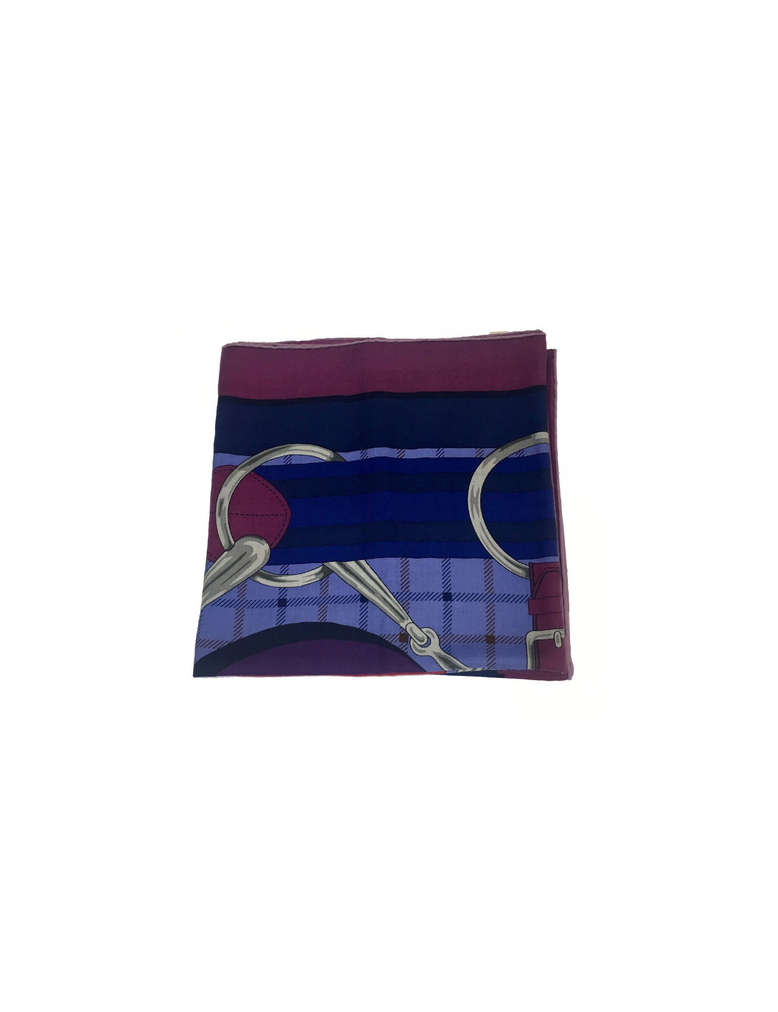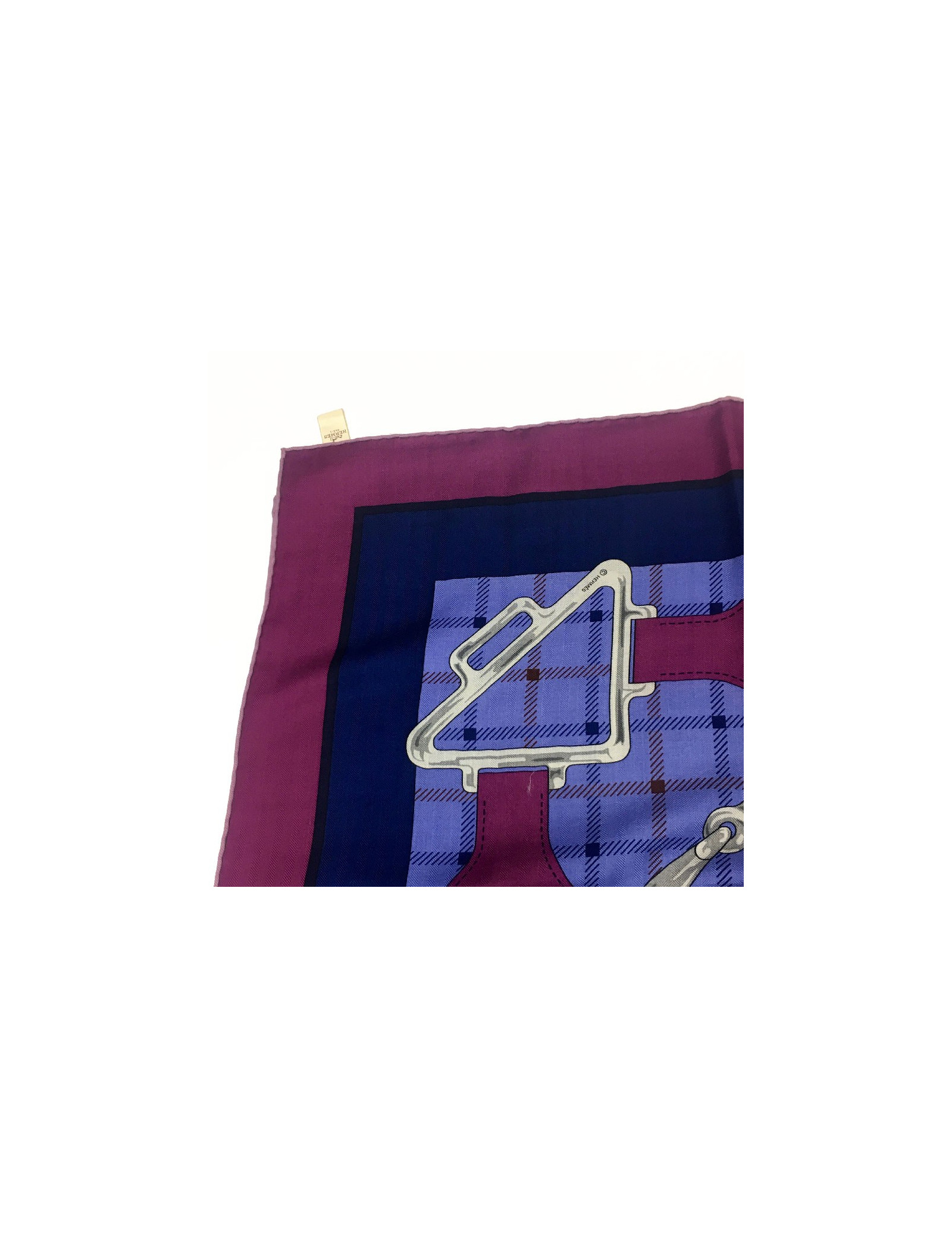 Châle Hermès "Tatersale" prune, mauve et orange en cachemire et soie