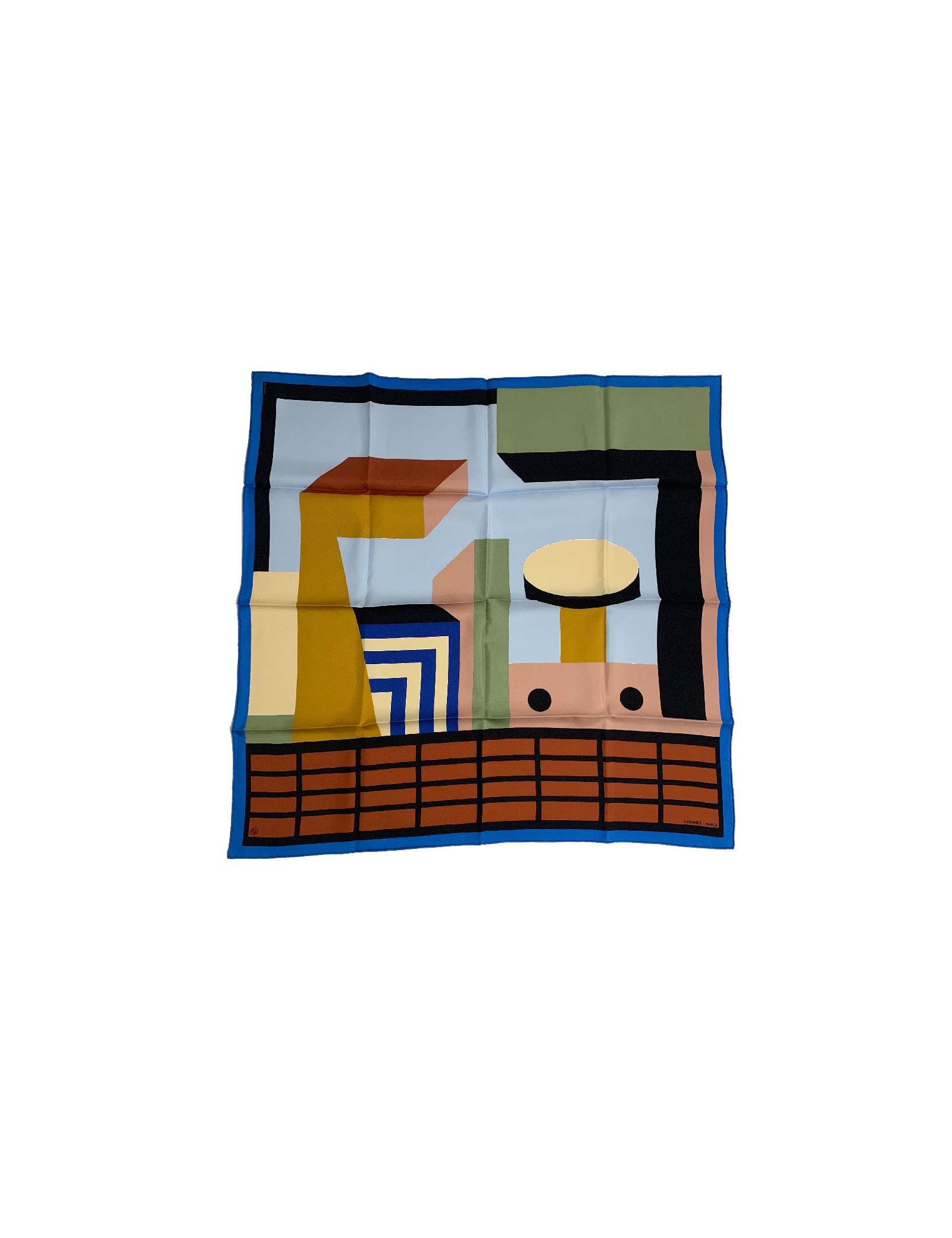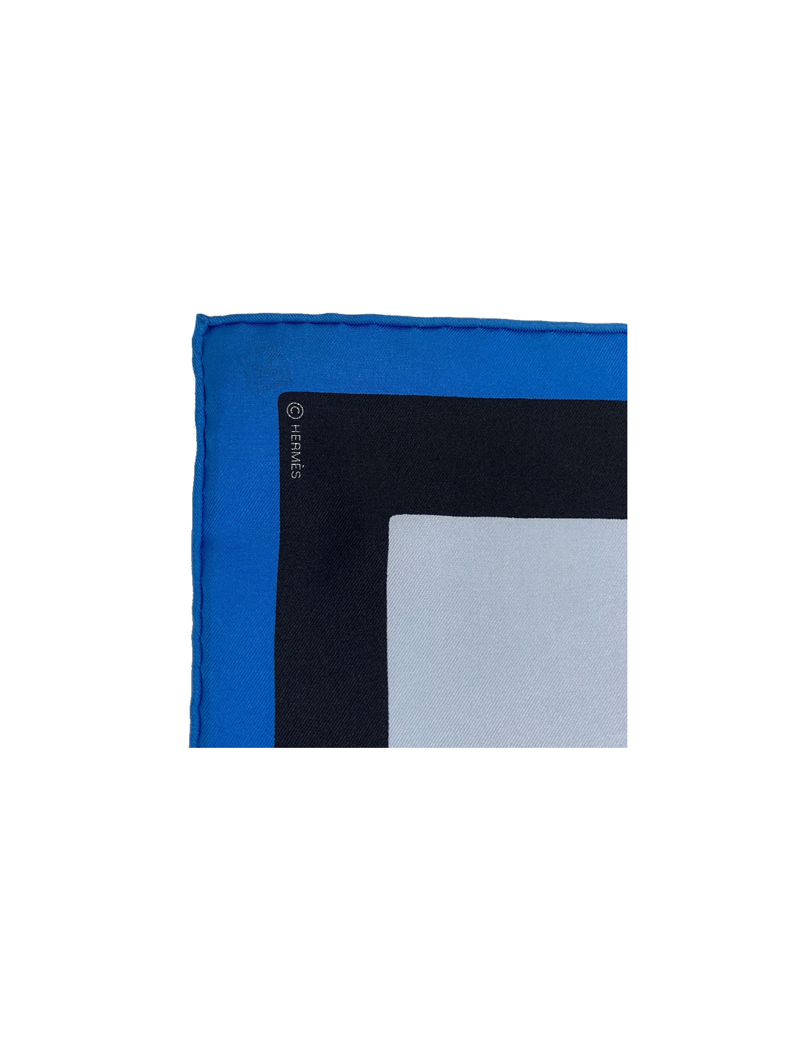 Carré HERMES Zeta de Nathalie Du Pasquier bleu ciel en soie