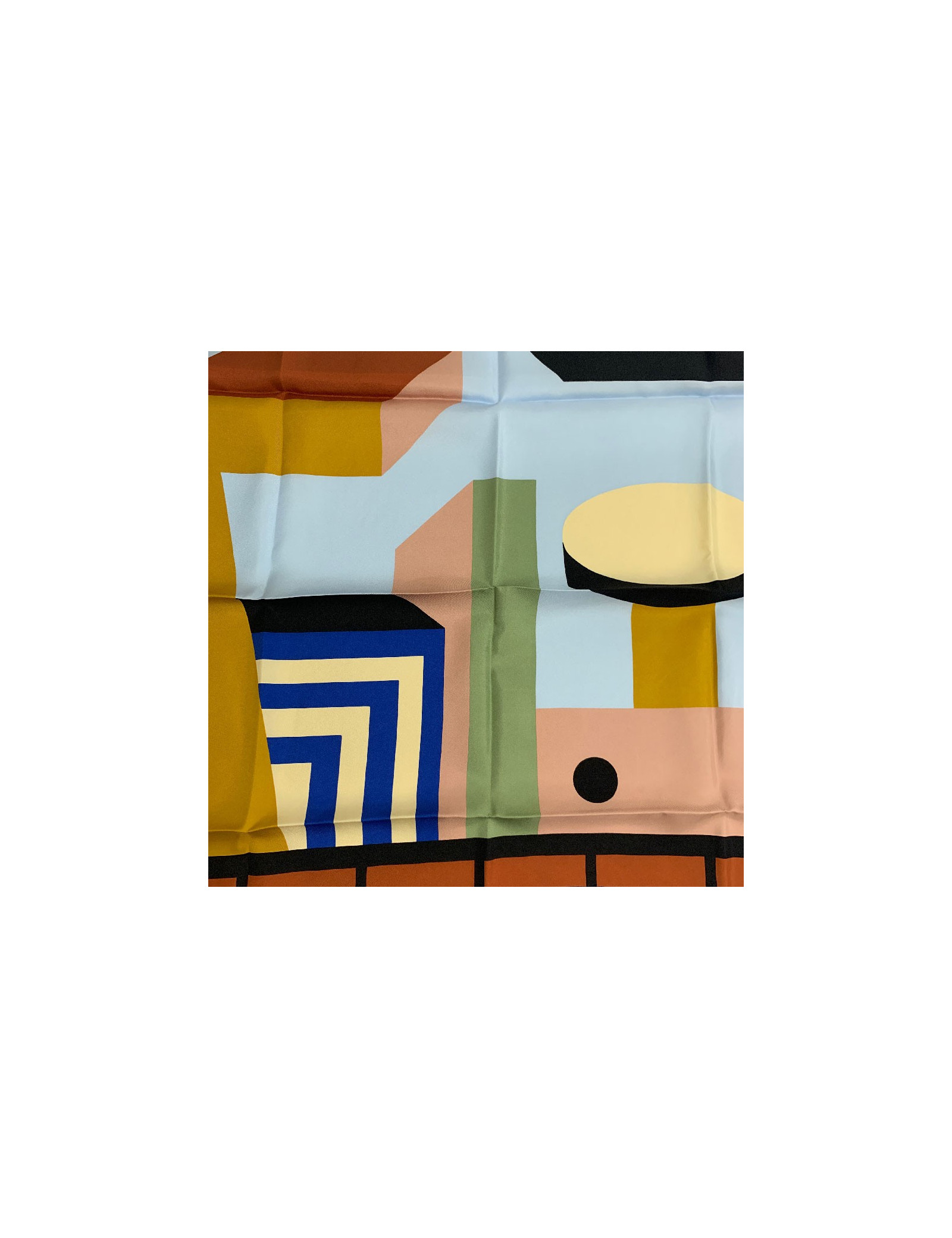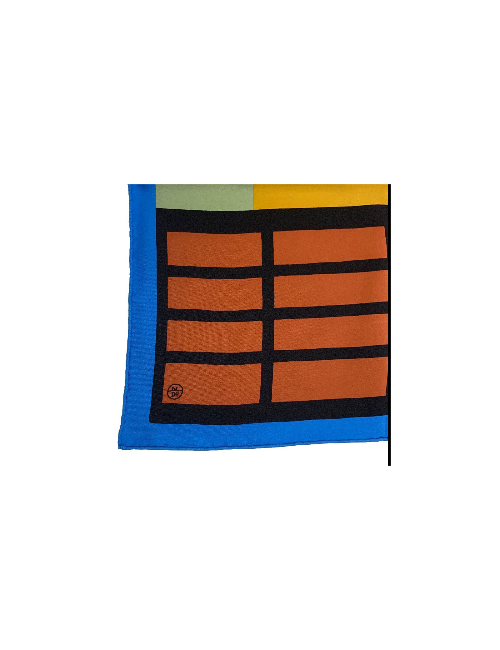 Du pep's avec ce magnifique foulard Zeta de la maison Hermès dans des teintes chaudes (ciel, noir, vert). Les motifs sont géométriques et graphiques. Vous pouvez le porter autour du cou, en ceinture, autour de la anse de votre sac pour apporter une superbe touche de couleur. Il est de fabrication française.